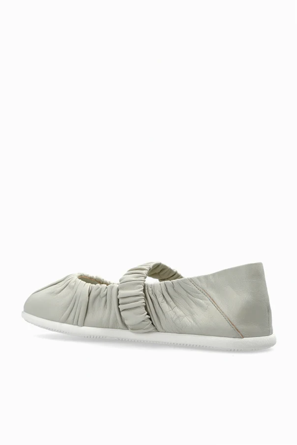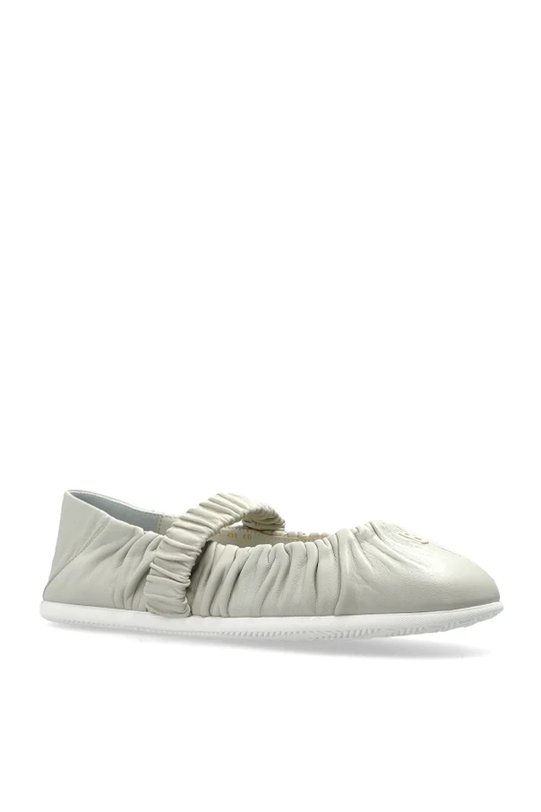 The signature design includes exquisite gathers along the smooth leather upper and a generously ruched strap crossing the midfoot—delivering both heightened style and supreme fit. Accented by a delicately embossed “B” logo at the vamp and an interior logo detail, every element accentuates the shoe’s authentic exclusivity.