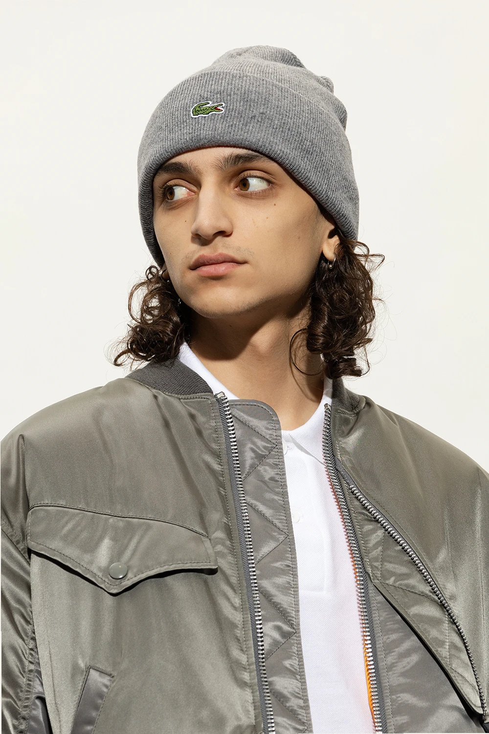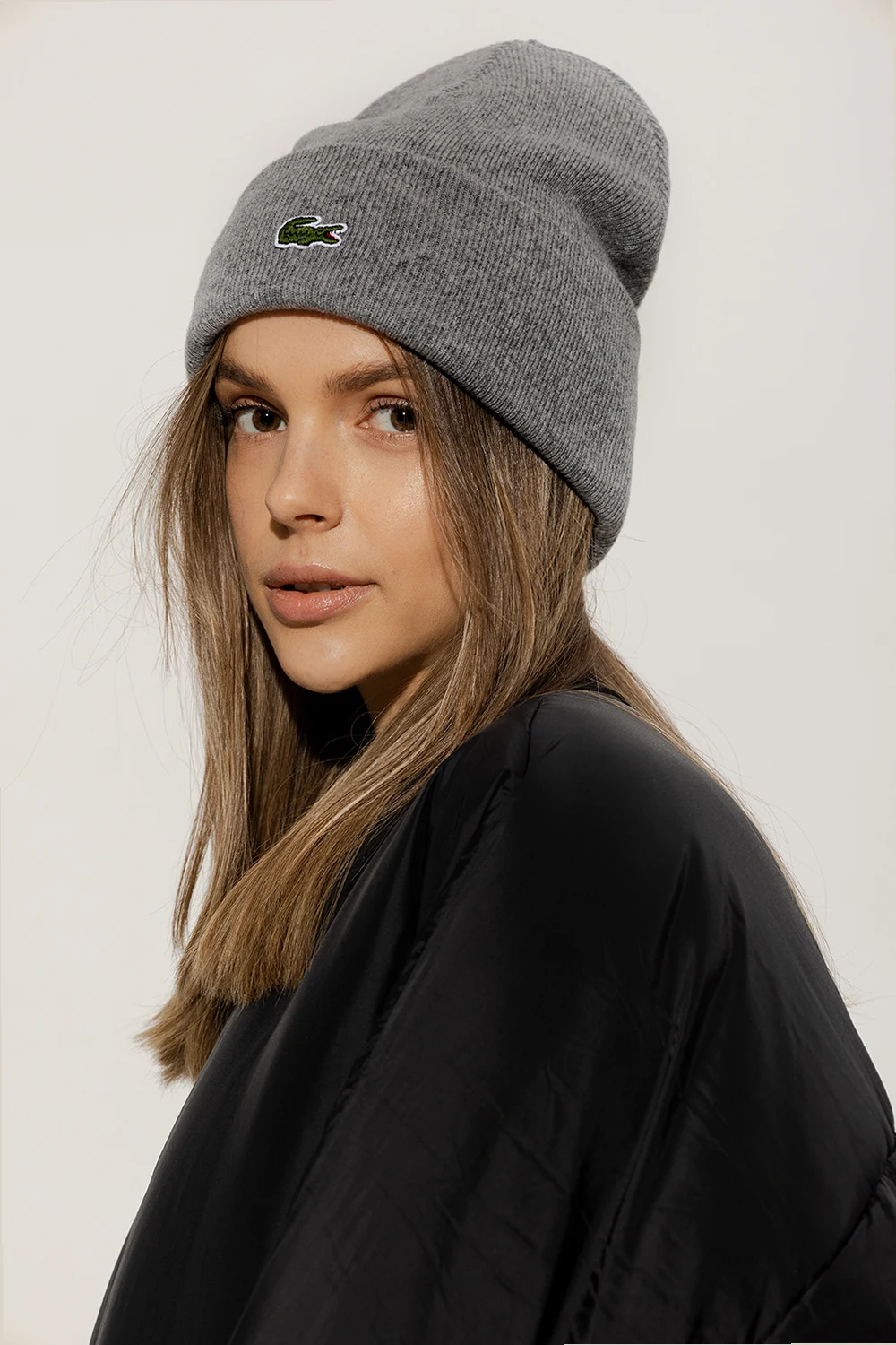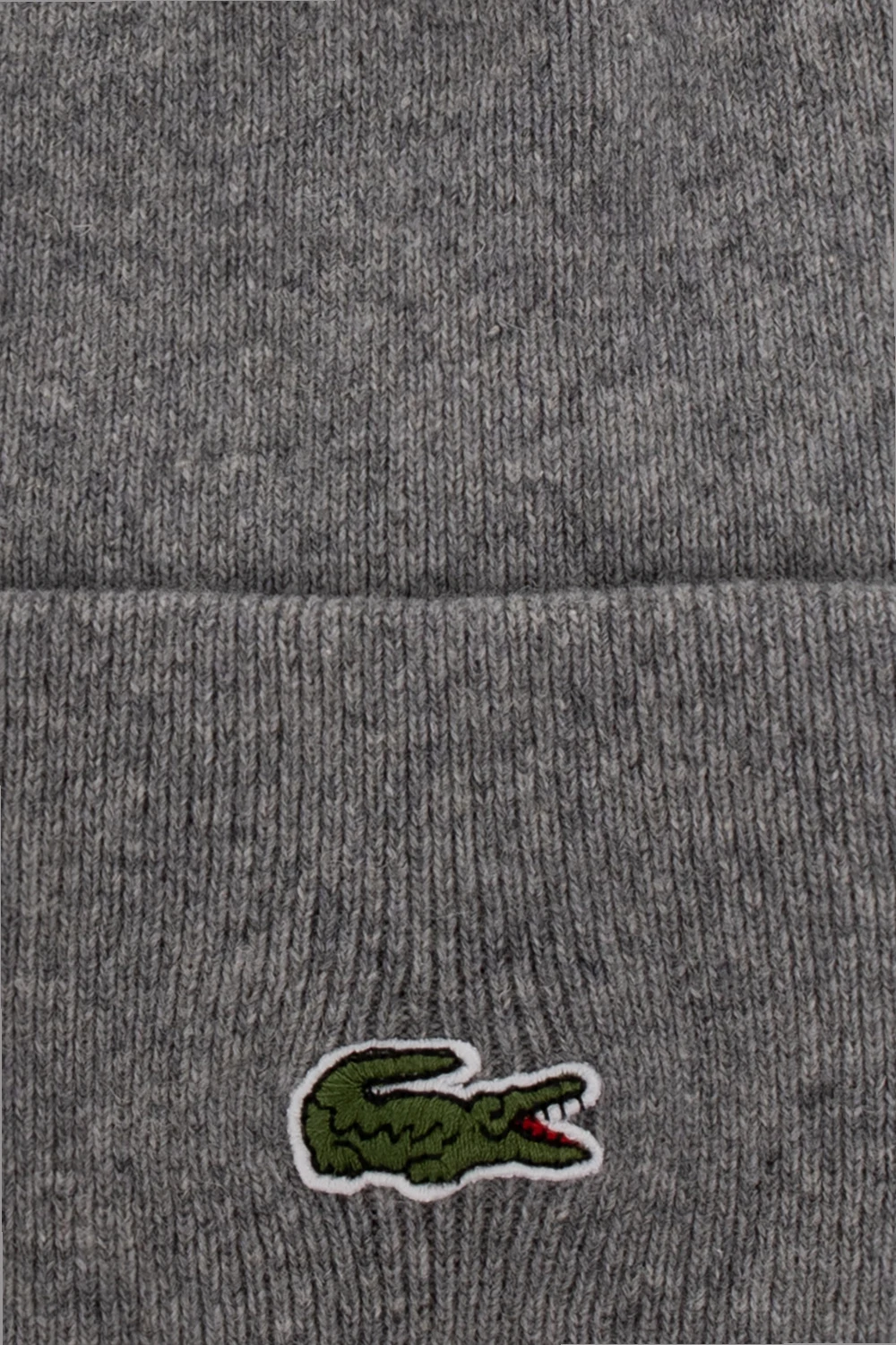 Grey beanie from Lacoste. Crafted from wool, this item is decorated with a logo patch.