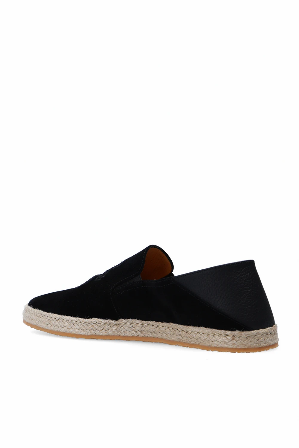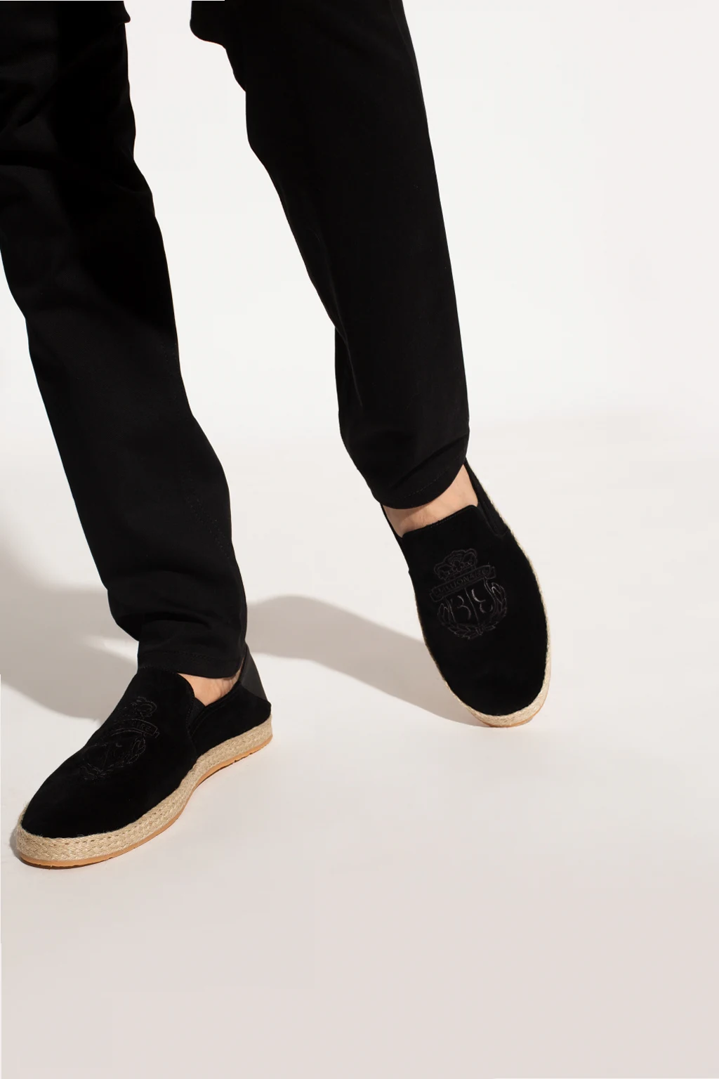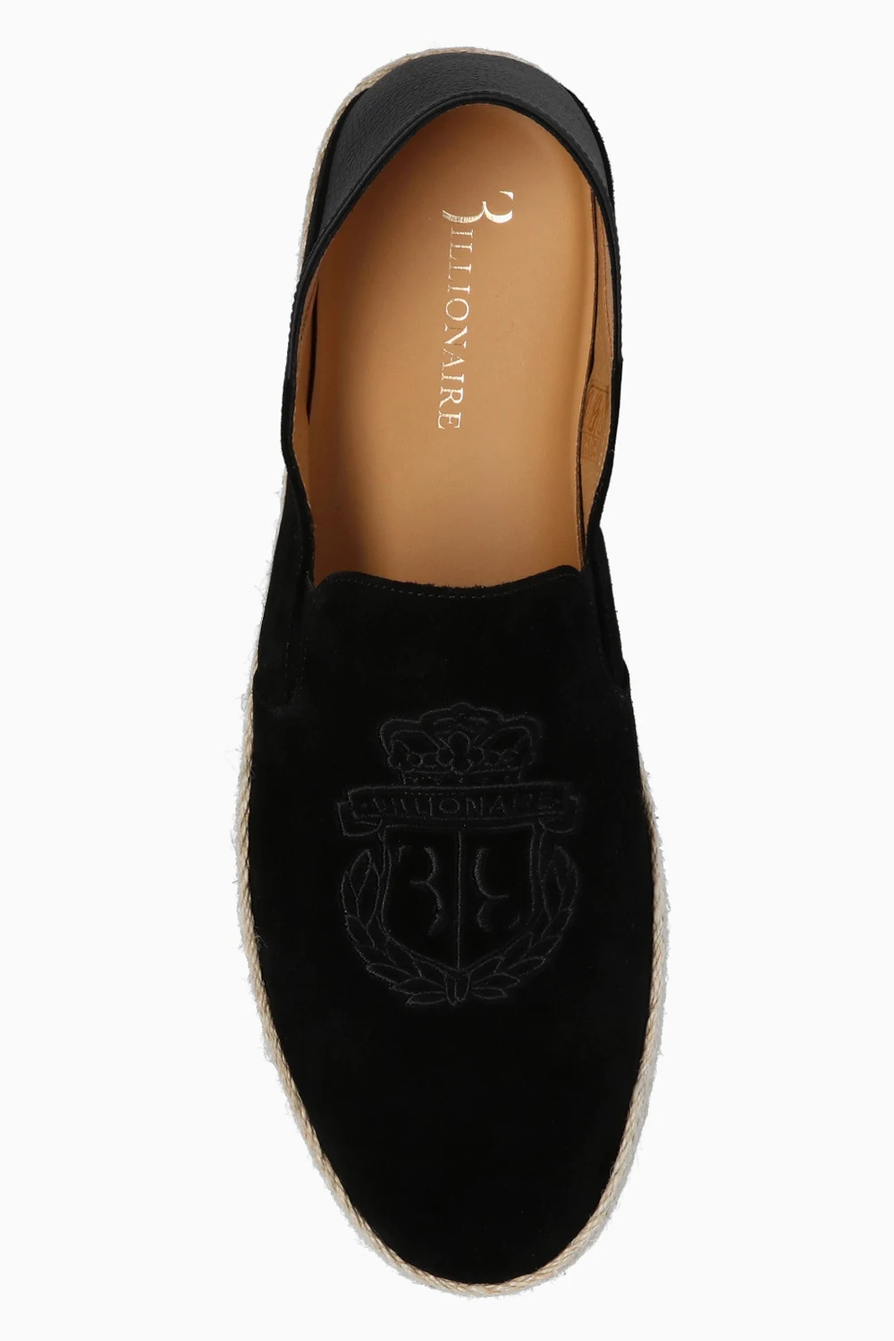 Black and beige espadrilles from Billionaire. Crafted from suede, this pair features a logo embroidery and brown rubber sole.