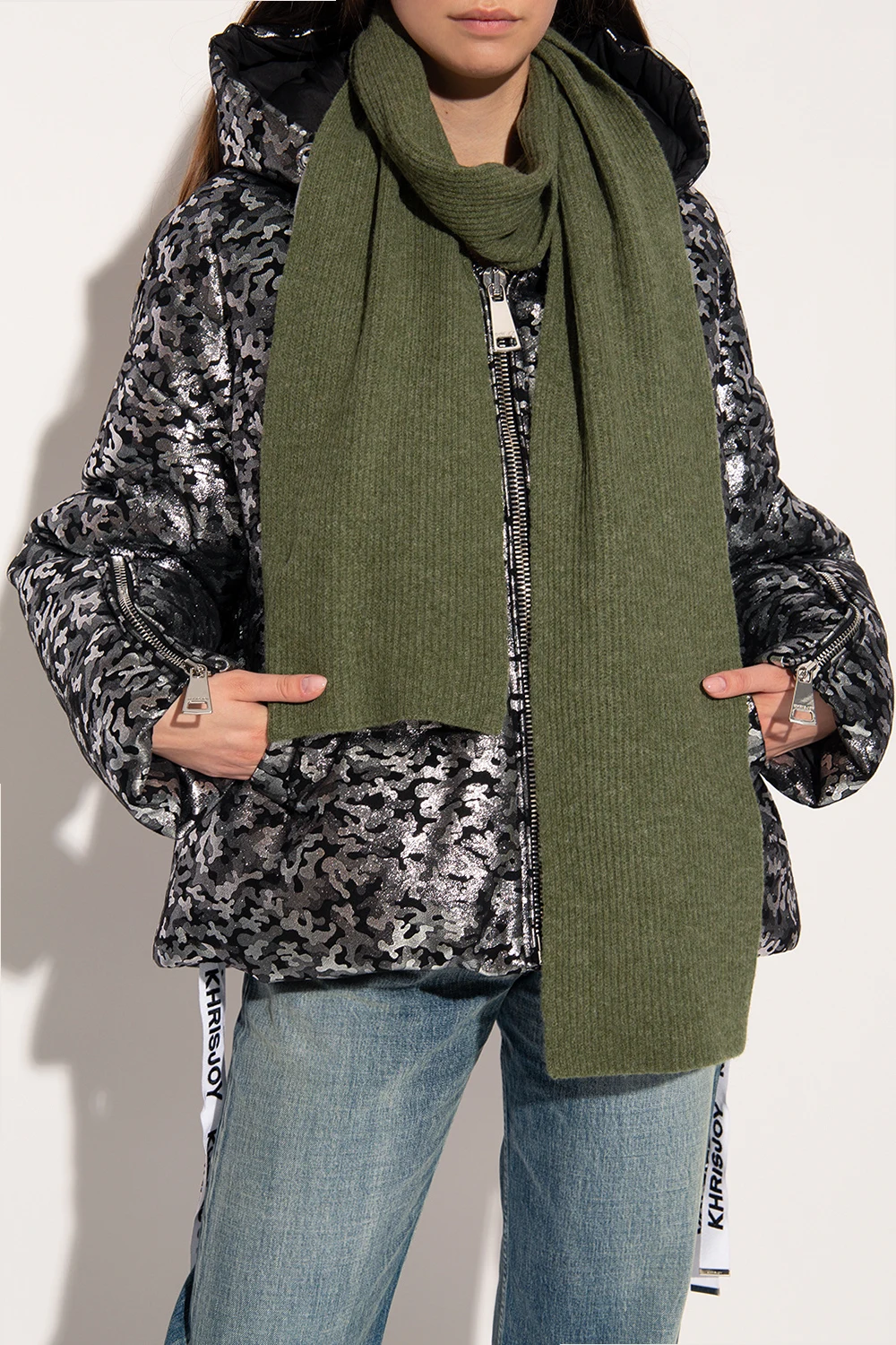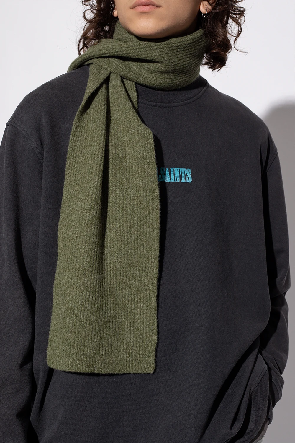 Green scarf from Samsoe Samsoe. Crafted from wool, this item features ribbed detailing.