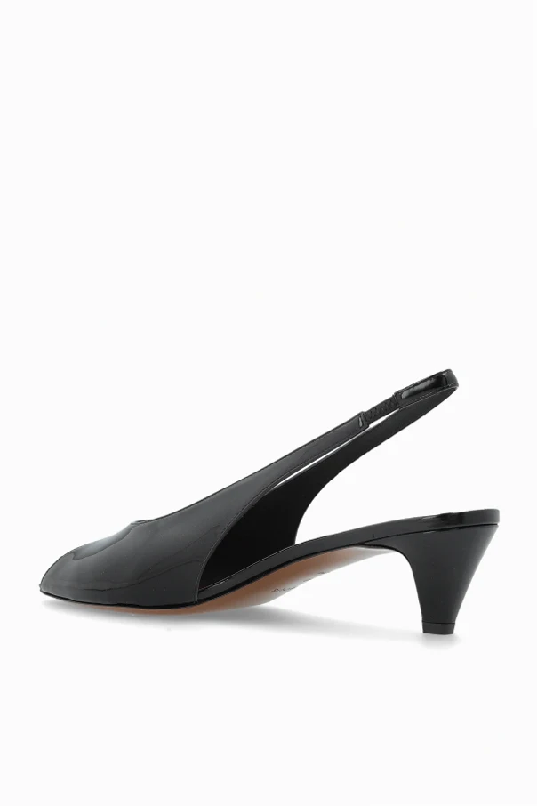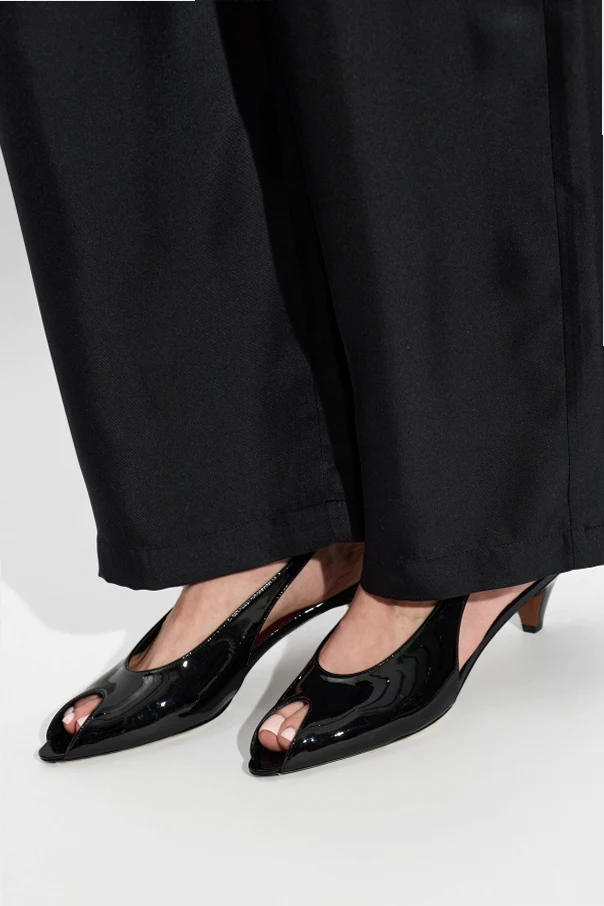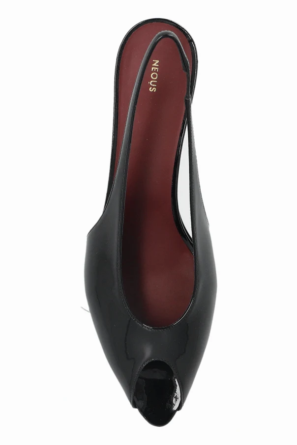 Introducing the Hamal 40 Heeled Sandals by NEOUS , an exquisite embodiment of contemporary sophistication and understated glamour. These sandals, crafted from lustrous patent leather in a classic black hue, captivate with their sleek, streamlined silhouette and delicately elongated peep toe. The open back is elegantly secured with a slender slingback strap, ensuring both style and a tailored fit. The subtly tapered kitten heel —set at approximately 40 mm—offers effortless poise and day-to-night comfort. Inside, a striking contrast is revealed by the deep burgundy lining, enhancing their luxurious allure. Every detail is meticulously designed, from the softened edges to the refined interior shaping, resulting in an accessory as refined as it is wearable. Why choose this product? Premium patent leather construction for a polished finish Timeless black color, effortlessly versatile for any ensemble Graceful silhouette with minimalist elegance Stable kitten heel provides exceptional comfort and sophistication Distinctive burgundy lining adds a unique touch of exclusivity Expert craftsmanship by renowned designer NEOUS