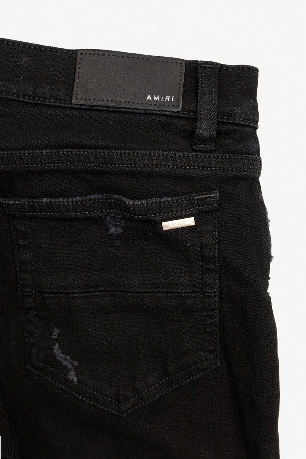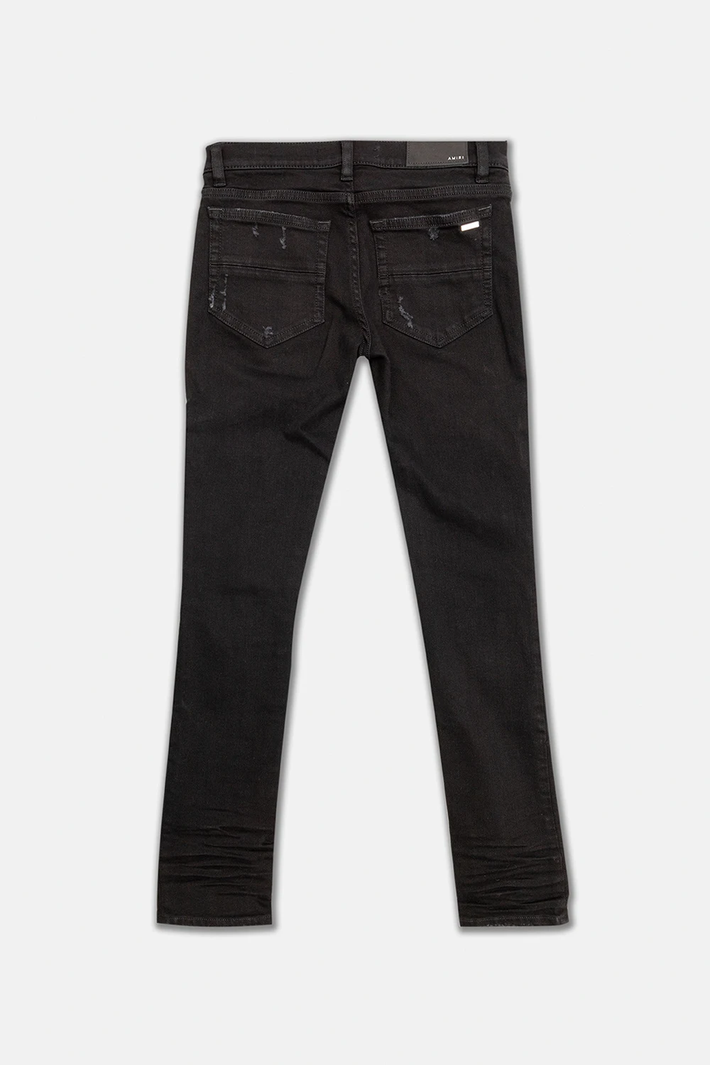 Black jeans from Amiri Kids. Falling with slightly tapered legs, this pair features a zip fly with a button, classic five pockets, distressed detailing and a logo appliqué at the back.