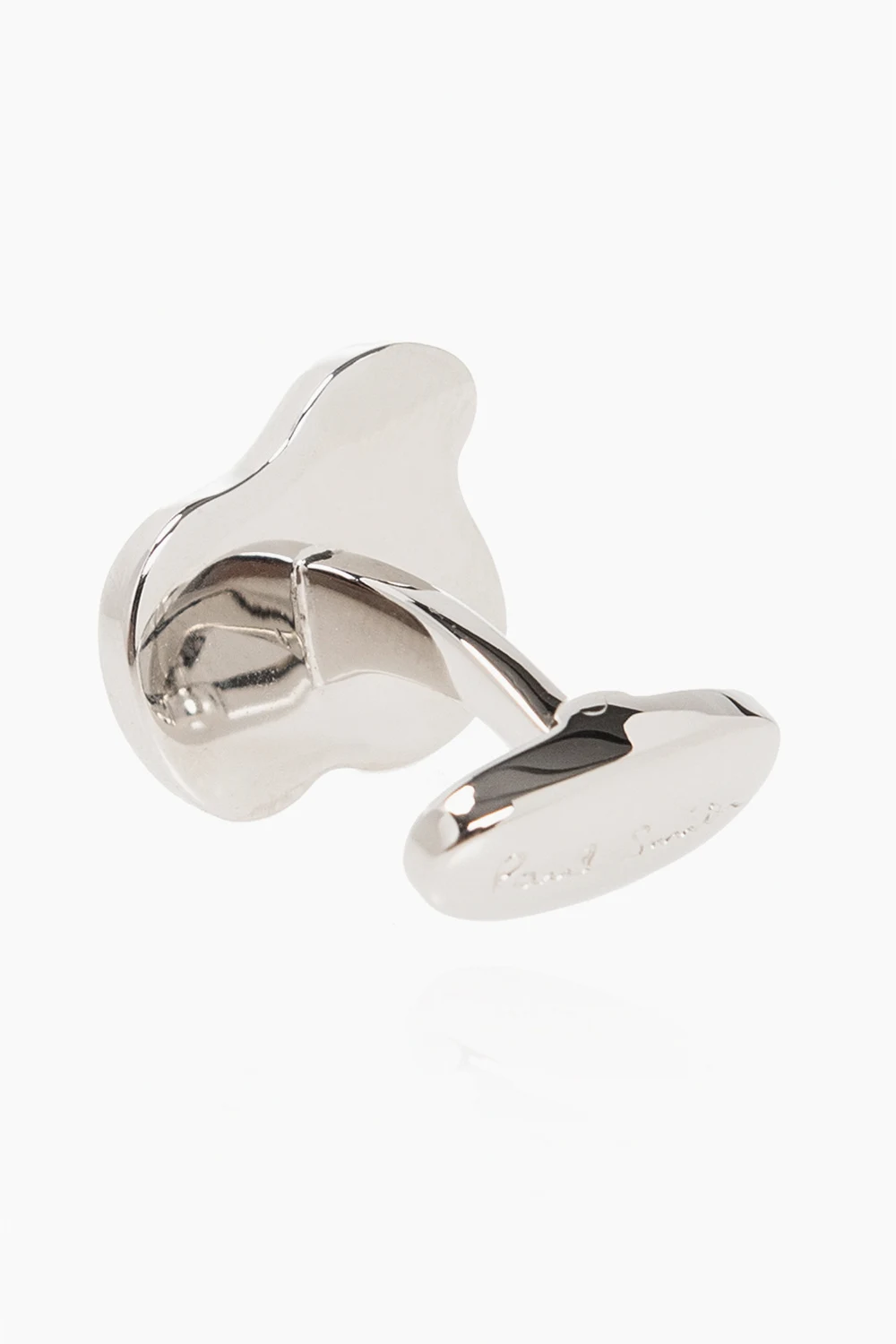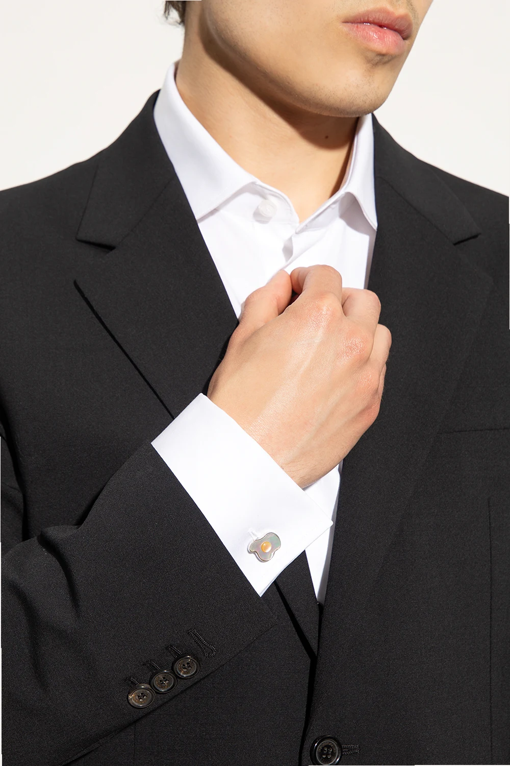 Silver-tone egg cufflinks from Paul Smith. This design features beige stone, embossed logo and mother-of-pearl trims.