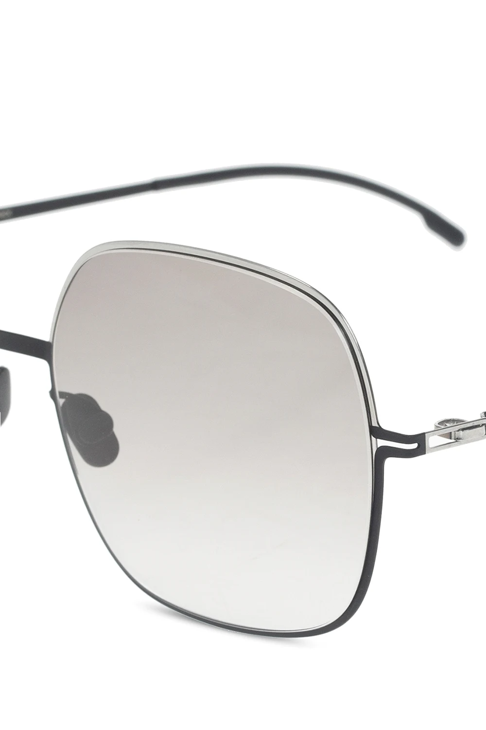 Silver-tone and black ‘Magda’ sunglasses from Mykita. Crafted from stainless steel and acetate, this pair features square fringes, black temples with patented spiral hinges, black silicone tips and nose pads as well as certified gradient lenses in grey with 100% UVA & UVB protection. Handcrafted in Berlin.