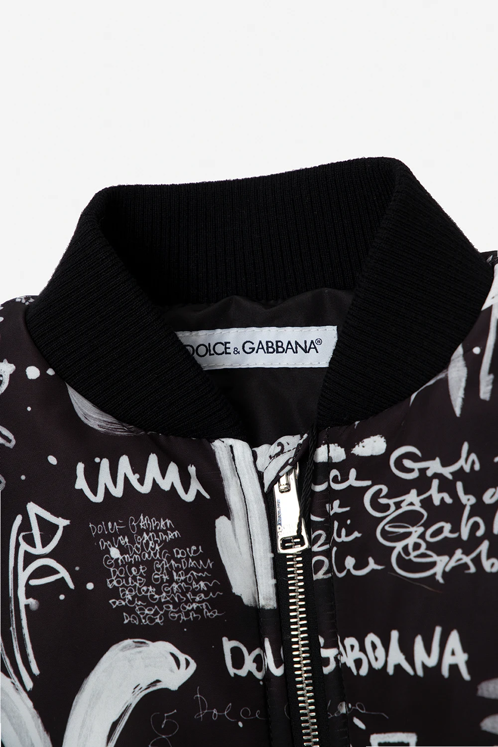 White and black jacket from Dolce & Gabbana Kids. Fastened with a zip, this garment features a logo pattern, two flap pockets and ribbed trims at the stand collar, hem and cuffs.