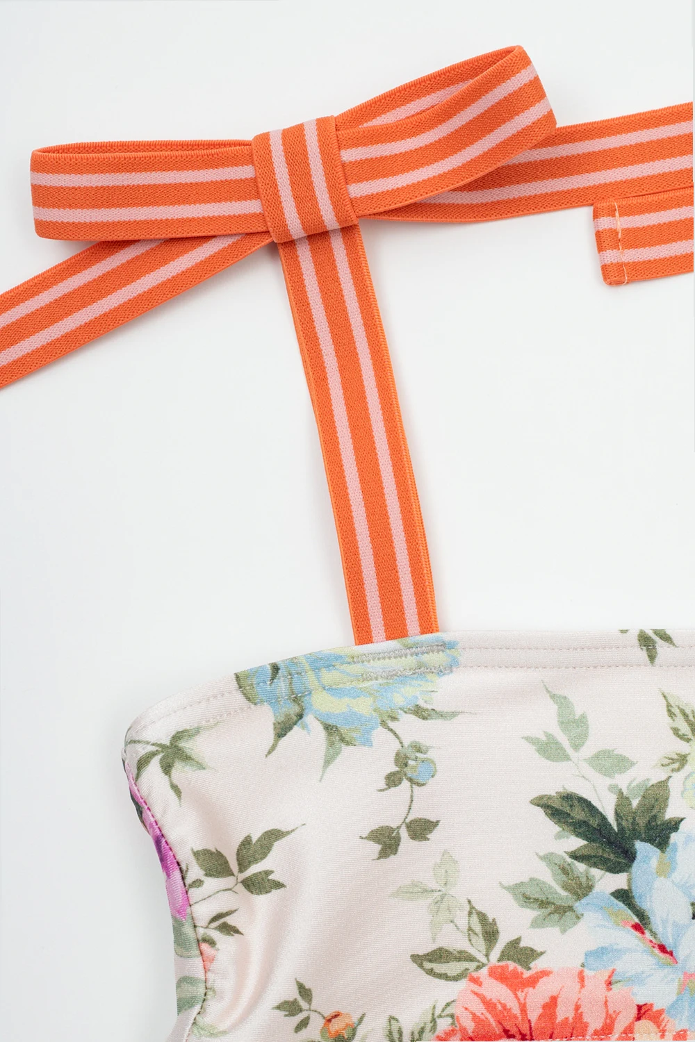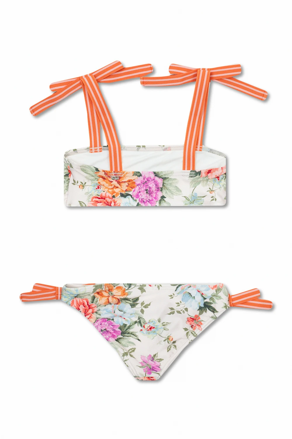 Multicolored bikini from Zimmermann Kids. Decorated with a floral print, this set includes a top with a ruffle well as briefs with an elastic waistband and ruffles on the sides.