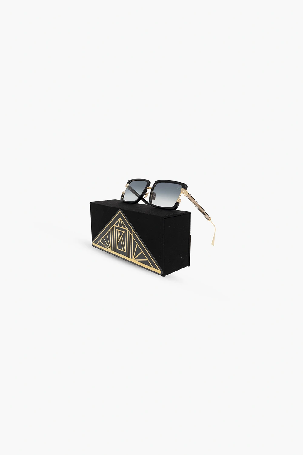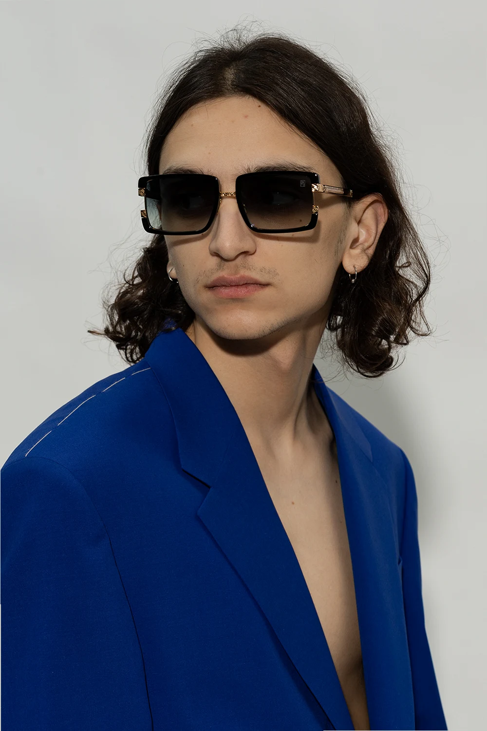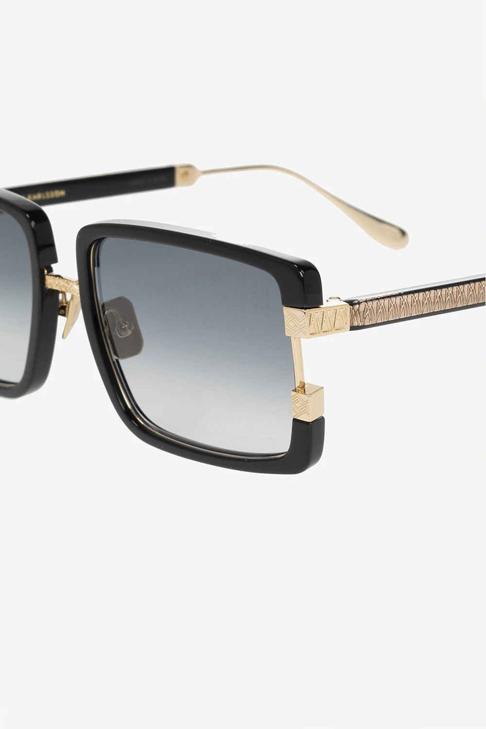 Black and gold-tone ‘Too Handsome’ sunglasses from Anna Karin Karlsson. Handmade in Japan from titanium, this model is plated with 24k gold and features slightly transparent square frames with a gradient effect, a single bridge, adjustable nose pads with a logo, engraved detailing, branded temples and blue gradient lenses with anti-reflective coating and 100% UV protection. This limited edition design is produced in only 70 pieces worldwide. Individually numbered on the temples. Case included.