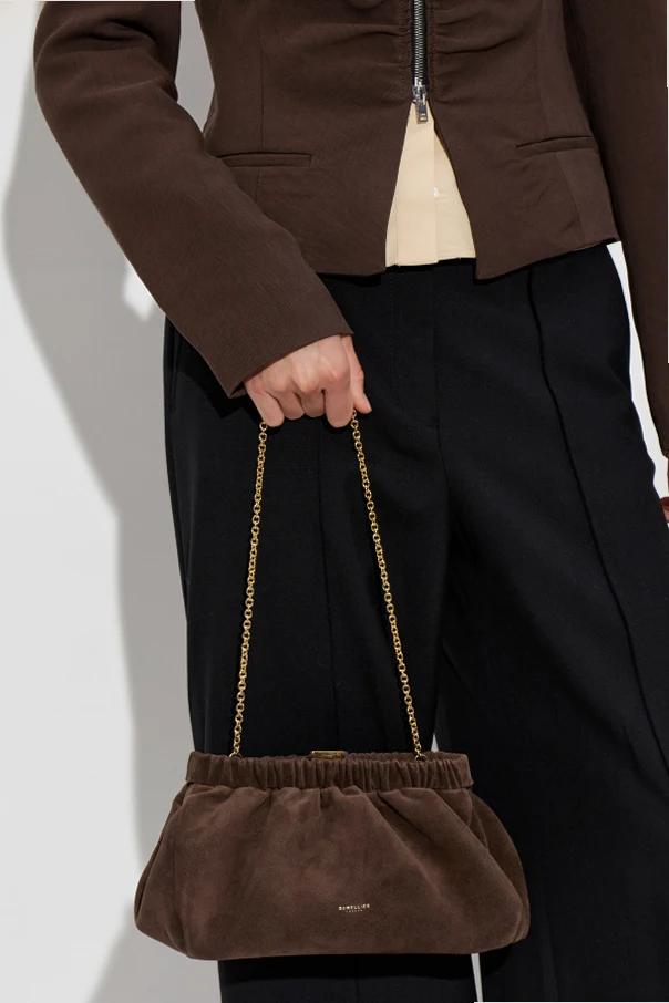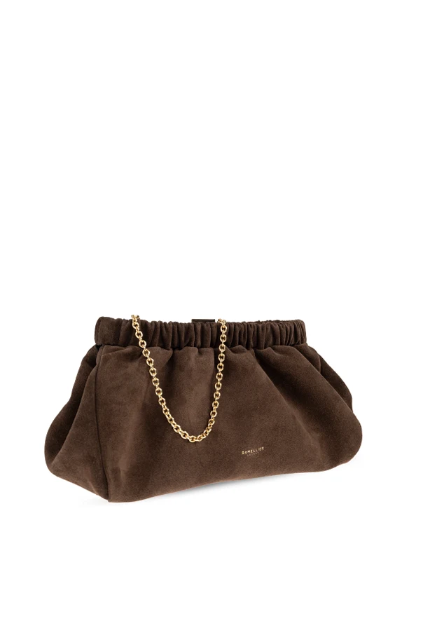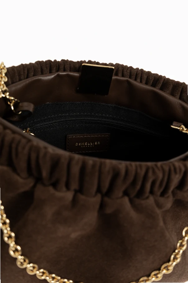 The Miami Shoulder Bag by DeMellier epitomizes understated sophistication. Crafted from sumptuous, soft cowhide suede, its generous trapezoidal silhouette is enhanced by beautifully ruched detailing at the top, a signature motif that imbues unmistakable refinement. The matte, velvety finish radiates subtle elegance, while the bag’s minimalist design—free from extraneous embellishments—ensures timeless versatility. The structured, pleated frame closes securely with a sleek clip fastening, elegantly crowned by a gleaming gold shoulder chain that elevates the bag’s luxurious character. The interior, lined with pure cotton, offers a tactile contrast and a sense of everyday indulgence. A discreet gold DEMELLIER LONDON logo on the lower front affirms its exclusive pedigree and exquisite craftsmanship. Why choose this product? Lush, soft suede exterior for enduring luxury Distinctive ruched detail accentuates uniqueness Iconic gold designer logo for a refined finish Elegant gold chain strap for sophisticated versatility Pure cotton lining for a premium touch inside and out