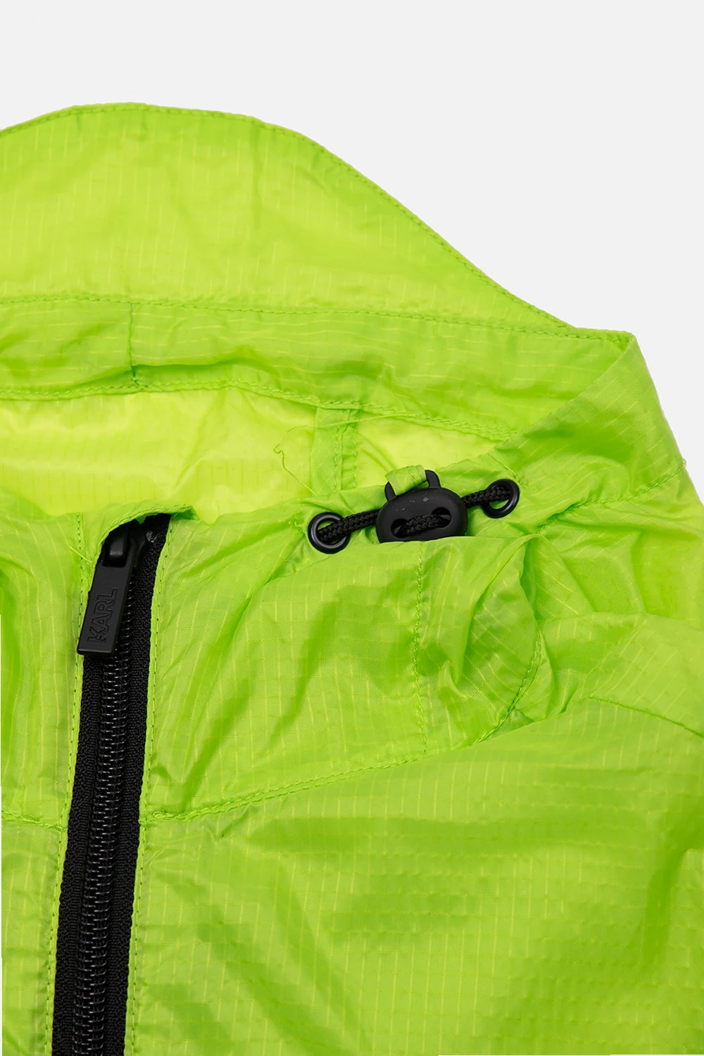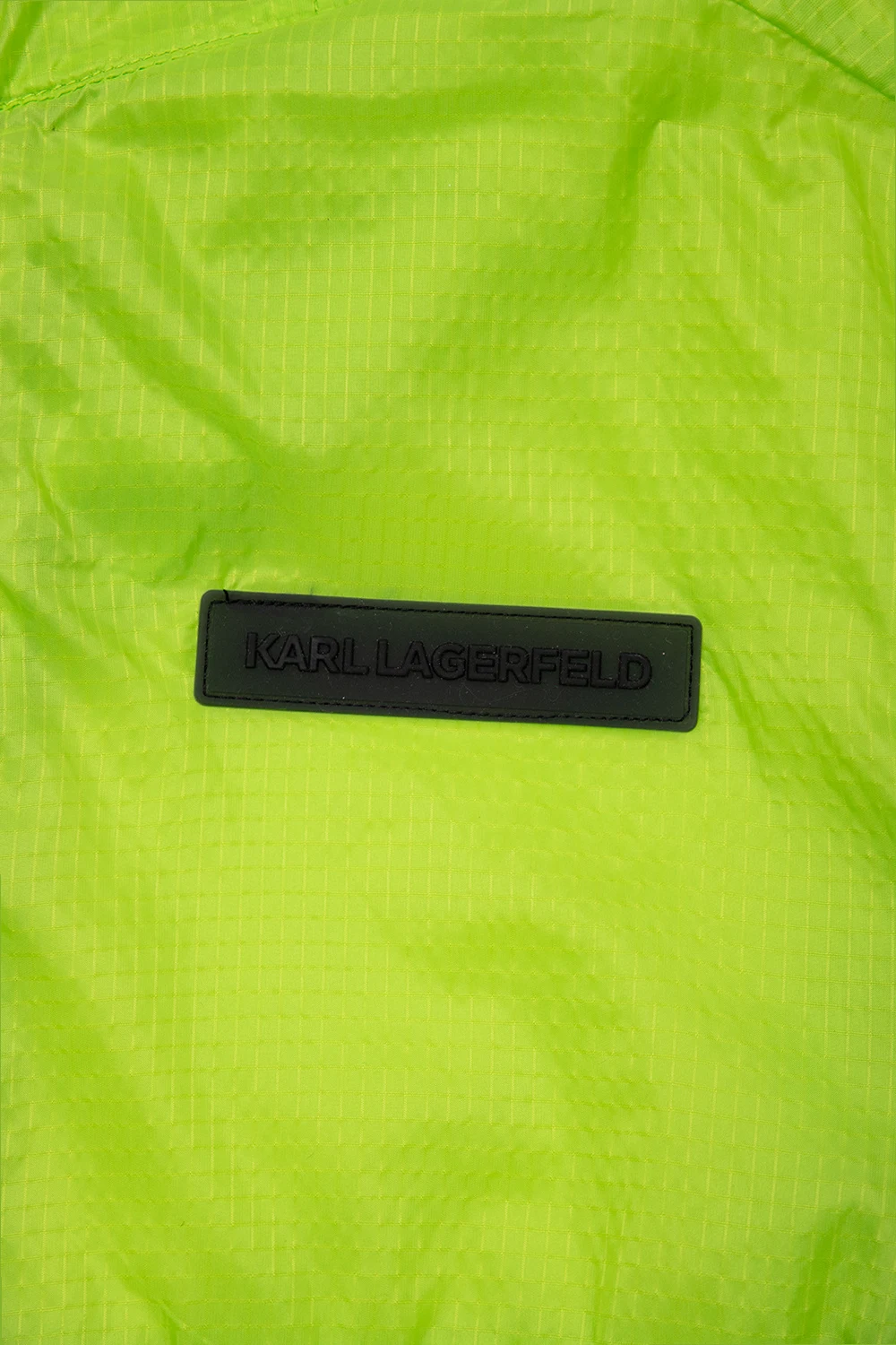 Green jacket from Karl Lagerfeld Kids. Fastened with a zip, this long sleeve design features a logo patch, drawstring hood and two slip pockets.