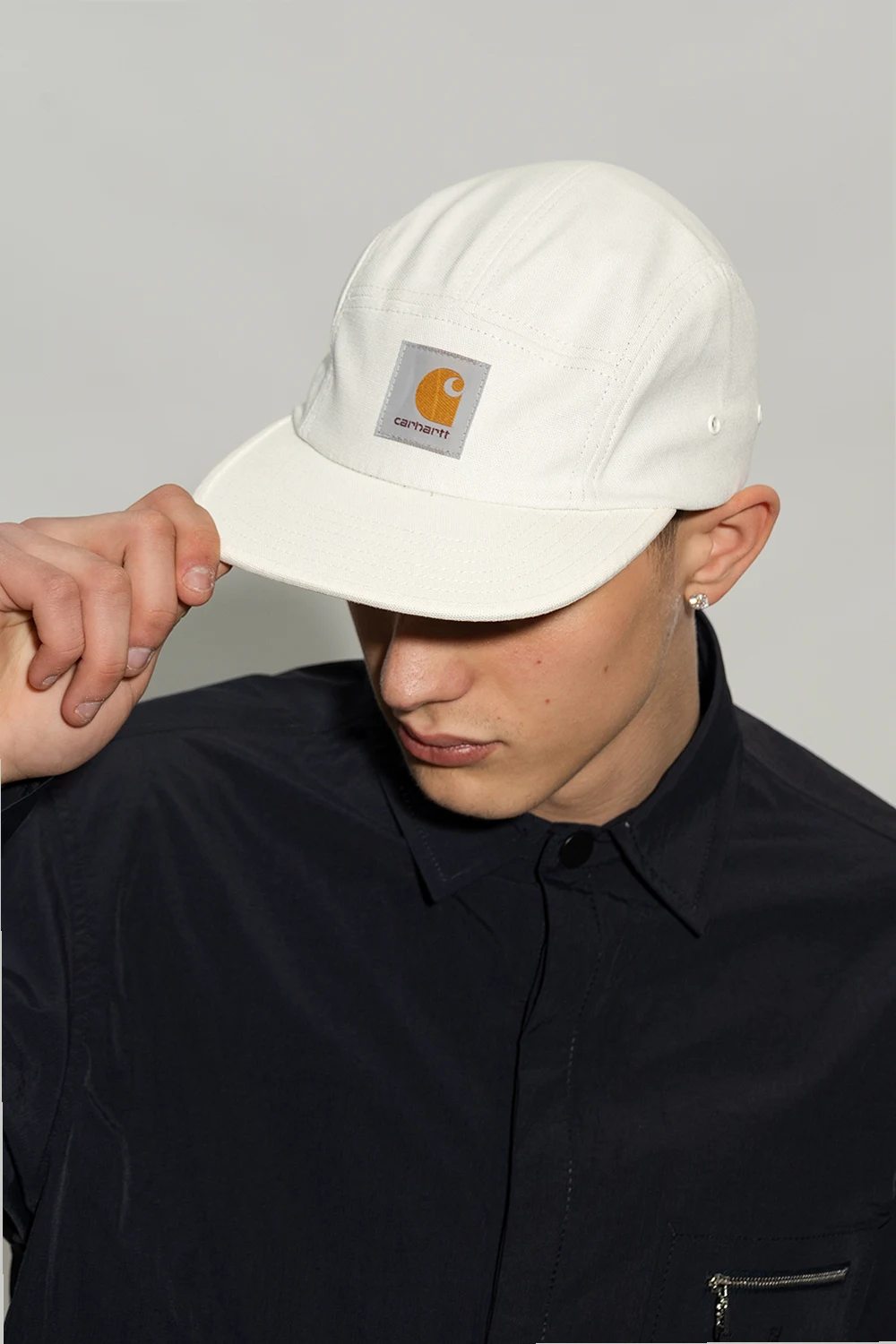 White ‘Backley’ baseball cap from Carhartt WIP. Made of cotton, this item adjusts via a back strap and features a logo patch on the front.