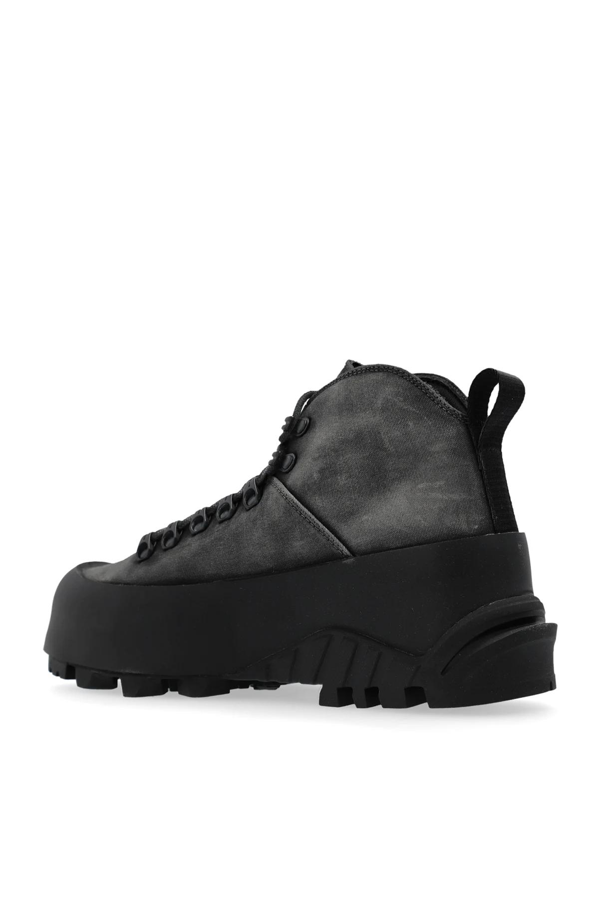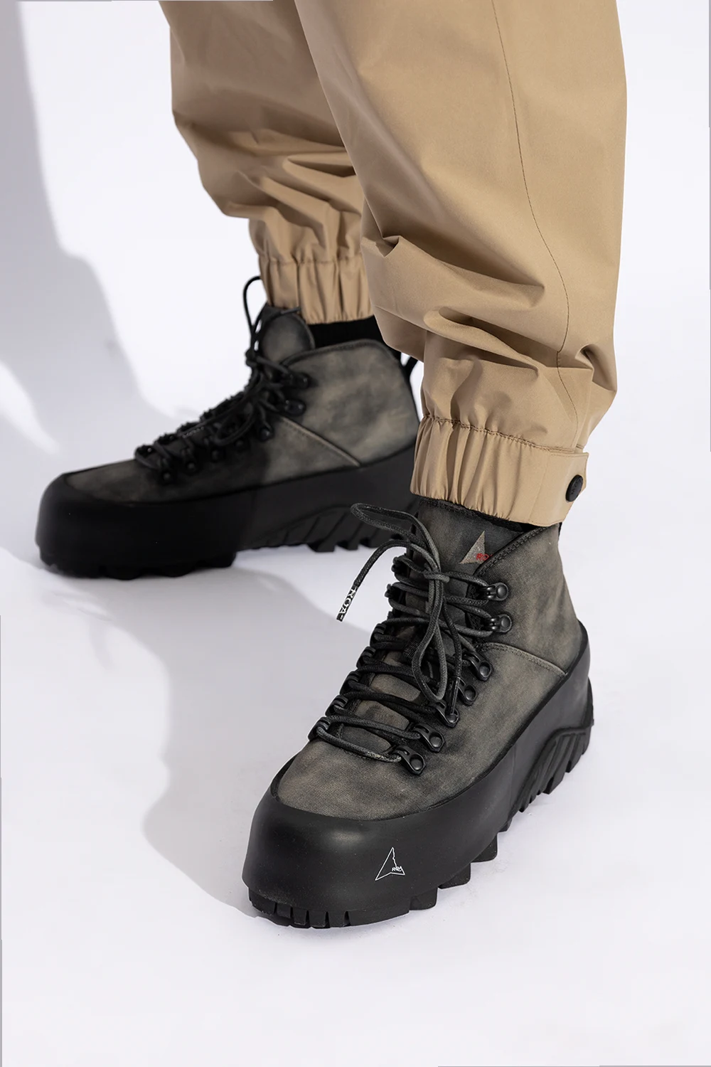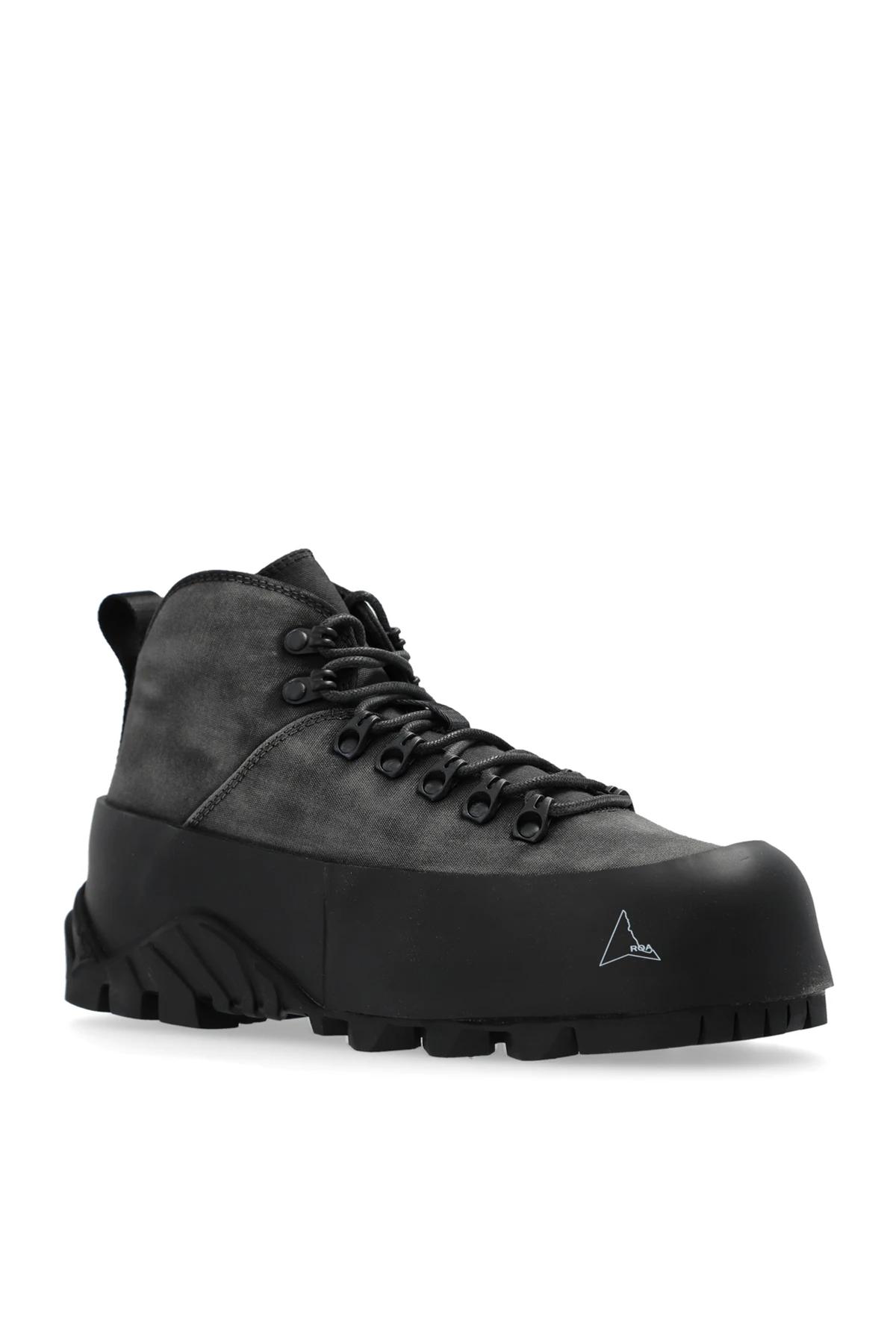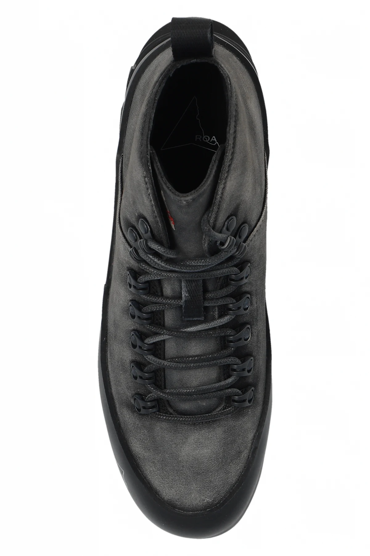 Grey and black ‘CVO’ hiking boots from ROA. The nylon uppers are treated with a hand-made wax then reinforced with extended rubber welts and grounded on Vibram® XS TREK soles with a toothed tread for optimal grip. They’re lined with smooth satin and fasten with durable speed hooks.