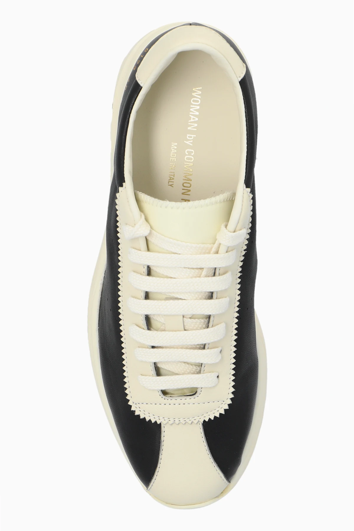 Introducing the Track Euro sneakers from the illustrious Common Projects collection. Designed by the renowned duo Flavio Girolami and Prathan Poopat, these sneakers epitomize the exquisite craftsmanship and minimalist design for which the brand is celebrated. These exclusive Track Euro sneakers feature a classic low-profile silhouette, distinguished by a meticulously constructed thick outsole, ensuring unparalleled comfort and cushioning. The dominant black hue of the high-quality leather upper is elegantly contrasted by white accents on the toe, heel, tongue, and laces, creating a harmonious aesthetic. The use of premium leather for the outer layer, coupled with a durable rubber sole, ensures exceptional grip and longevity. A signature golden inscription near the heel adds a touch of sophistication, while the inner lining proudly states, "WOMAN by COMMON PROJECTS MADE IN ITALY," underscoring the product's prestigious origins. Why Choose This Product? Exquisite craftsmanship and minimalist design. Superior comfort with a well-cushioned, thick outsole. High-quality leather upper with elegant white accents. Durable rubber sole for excellent traction and durability. Signature golden inscription for a touch of sophistication. Prestigious "Made in Italy" label.
