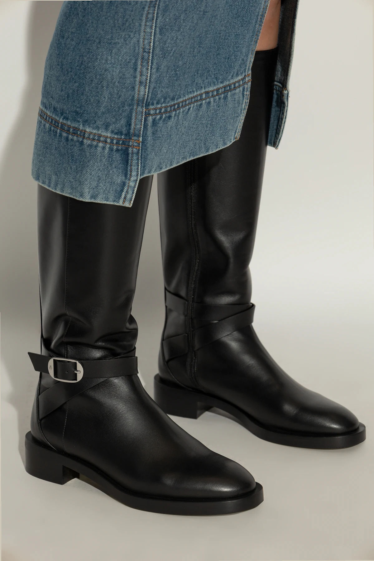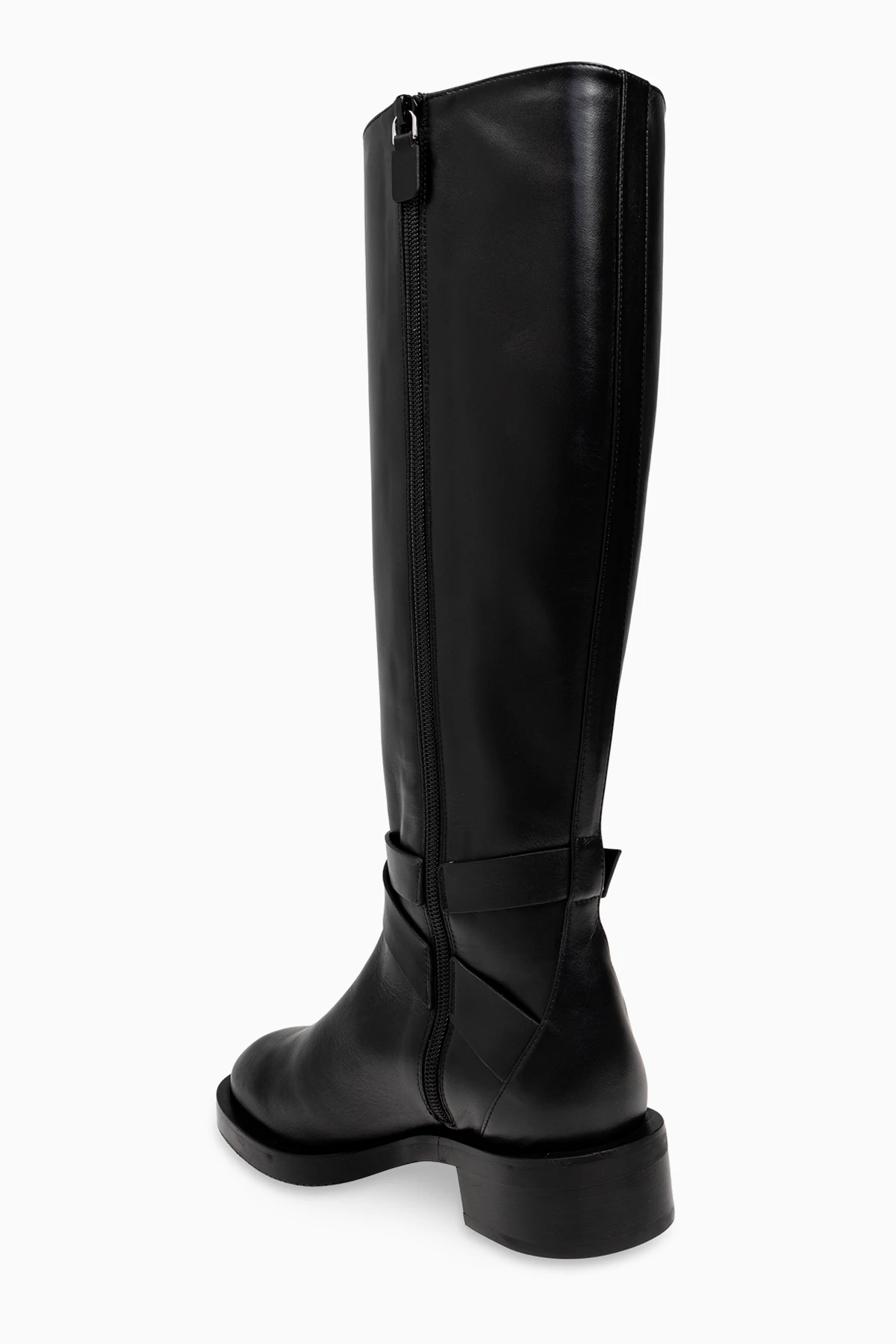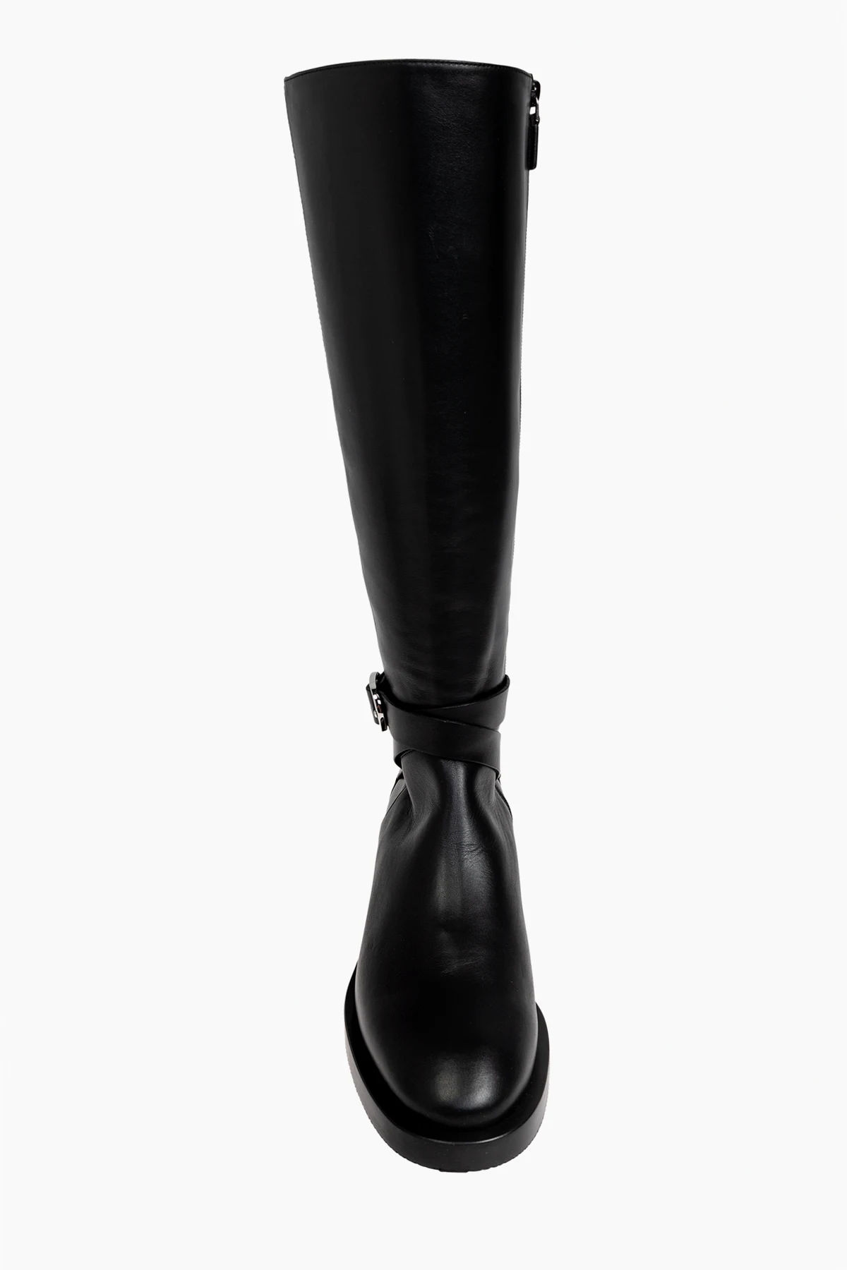 Introducing the Bella Boots, a quintessential creation from the illustrious designer Stuart Weitzman. These women's mid-heel ankle boots epitomize sophisticated elegance and timeless charm. Crafted from premium black leather, the Bella Boots exude an air of luxurious opulence. The high shaft, reaching just below the knee, and rounded toe design offer a classic silhouette that seamlessly blends with any ensemble. Adorned with silver-toned buckled straps at the ankle, these boots not only enhance your style quotient but also add a touch of refined grace. The rear zipper ensures effortless wearability, making them as practical as they are stylish. Inside, these boots promise unparalleled comfort, thanks to the meticulously lined interior. The sturdy sole and mid-height heel provide stability and ease, making them perfect for everyday wear or more formal occasions. Why Choose This Product? Exquisite design by Stuart Weitzman, a maestro in luxury fashion. High-quality black leather for a sleek, sophisticated look. Comfortable and durable with a stable rubber and leather sole. Elegant silver buckle detailing and convenient rear zipper. Versatile mid-heel height for all-day wearability.