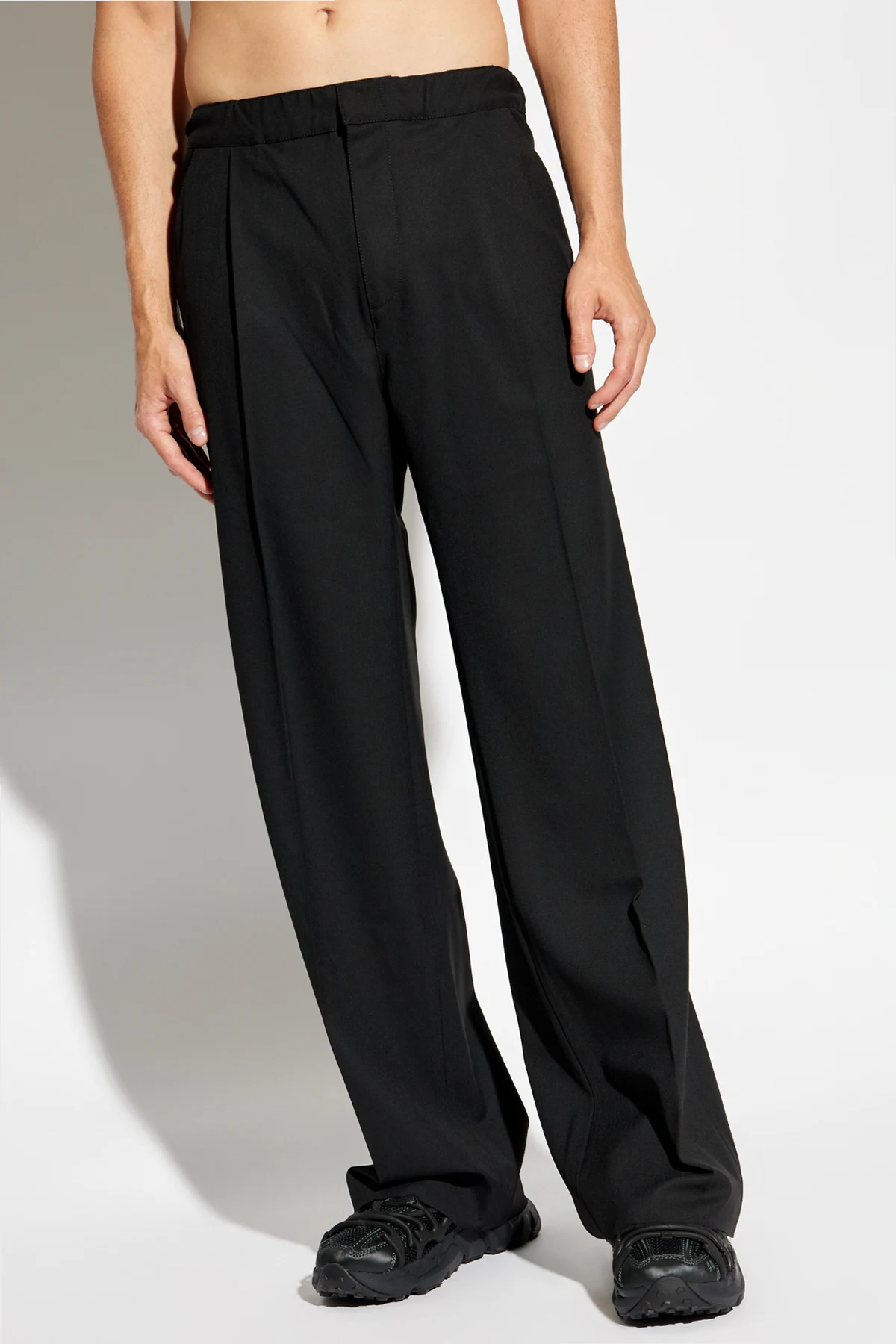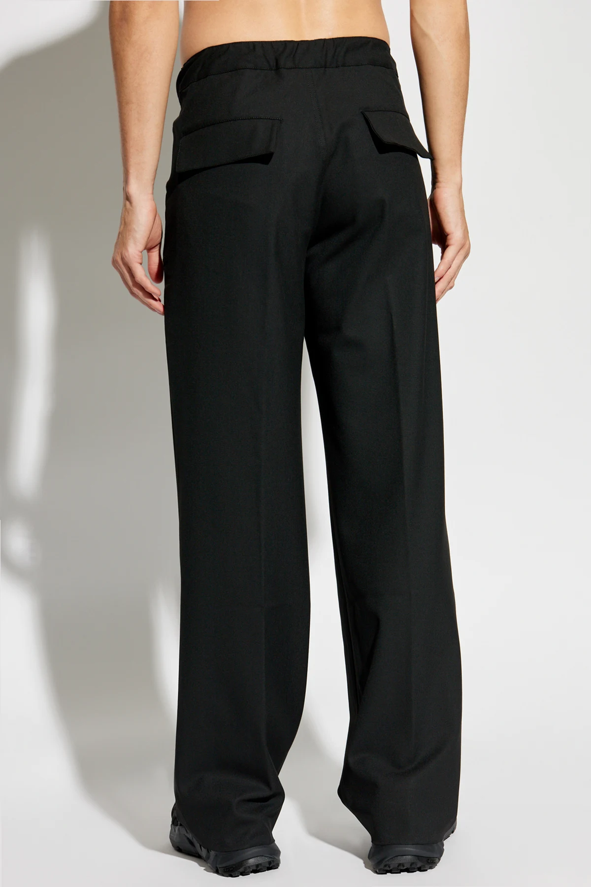 Introducing the quintessence of modern elegance and comfort, the Logo Pants by 44 Label Group. Crafted with a meticulous blend of polyester, viscose, and elastane, these pants offer an exquisite balance of softness and stretch, ensuring both durability and a flattering fit. The black hue, synonymous with versatility, allows for endless styling possibilities, making them an indispensable addition to your sophisticated wardrobe. Their design features a relaxed, straight-leg silhouette that exudes a timeless allure while promising ease of movement. An elastic waistband further enhances comfort, providing an adjustable fit that caters to your body's contours. Distinctly minimalistic, these pants boast a clean, pattern-free texture, accentuated only by a subtle, red logo marking its pedigree. This discreet emblem of the 44 Label Group adds a dash of exclusivity without detracting from the garment's understated elegance. Utility is elegantly embedded in its design with four ingeniously integrated pockets. Two side pockets and two rear pockets offer practical storage solutions, their seamless incorporation maintaining the pants' sleek profile. Precision tailoring is evident in the immaculate finishing of each pocket, a testament to the renowned craftsmanship associated with the designer. The absence of superfluous embellishments or embroidery underscores the sophisticated simplicity of these pants, making them a versatile staple. Whether dressed up with a crisp shirt and blazer or down with a casual tee, they adapt seamlessly to both formal and informal settings. Why Purchase these Logo Pants? High-Quality Material: A blend of polyester, viscose, and elastane ensures durability and comfort. Versatile Design: Black color and minimalist style allow for endless styling opportunities. Functional Elegance: Equipped with four pockets for practicality without compromising style. Signature Detailing: Subtle red logo adds a touch of exclusivity. Exceptional Craftsmanship: Precision tailoring from 44 Label Group, renowned for its quality and attention to detail.