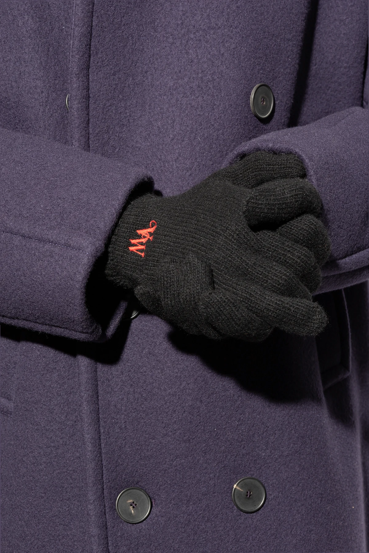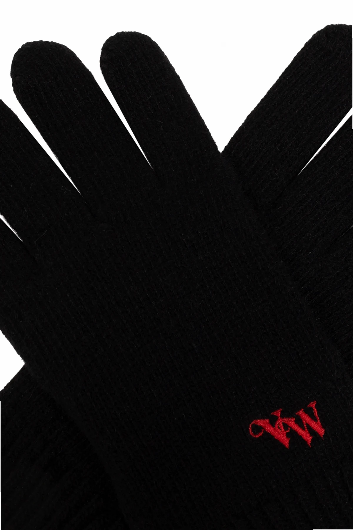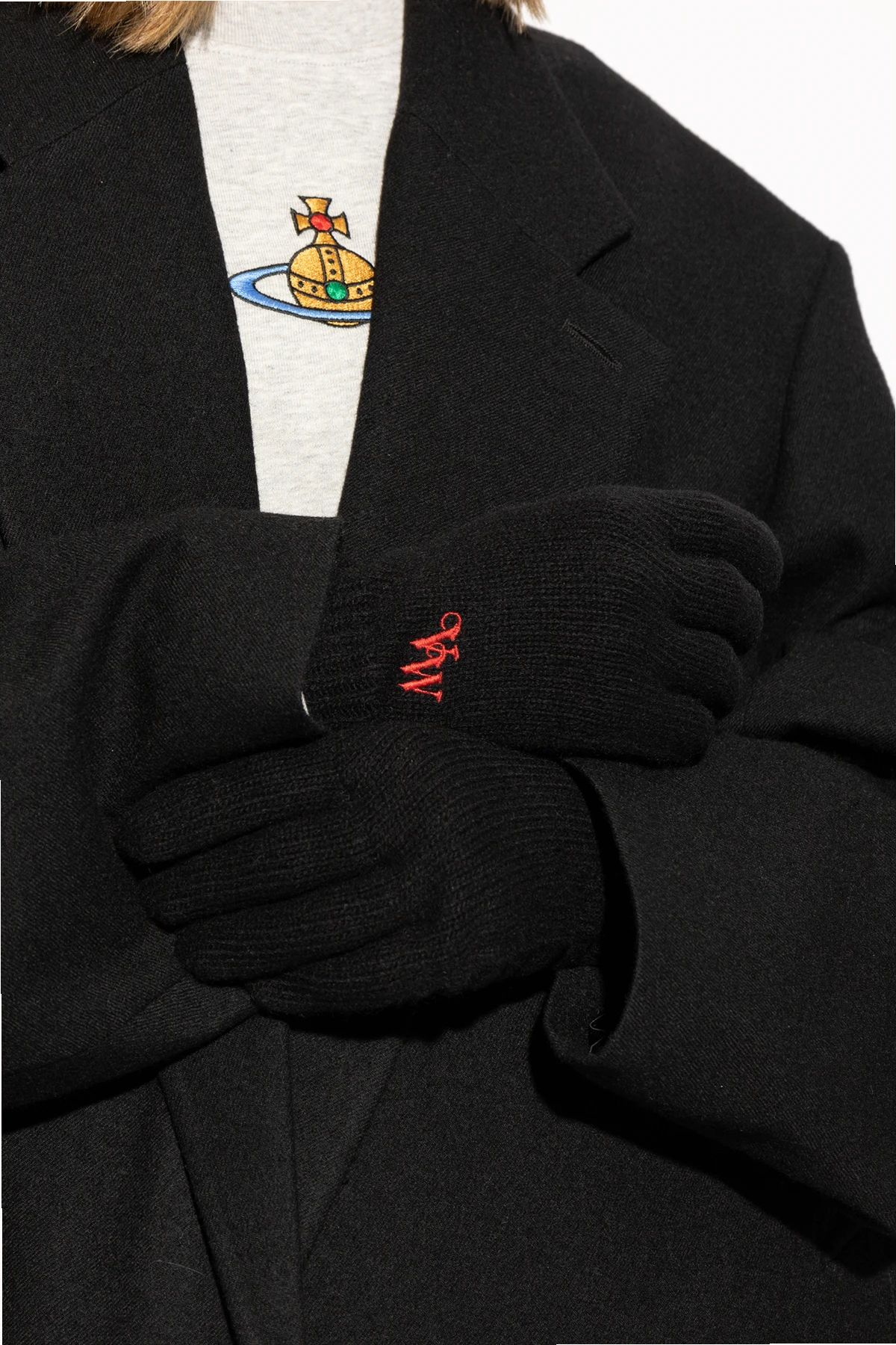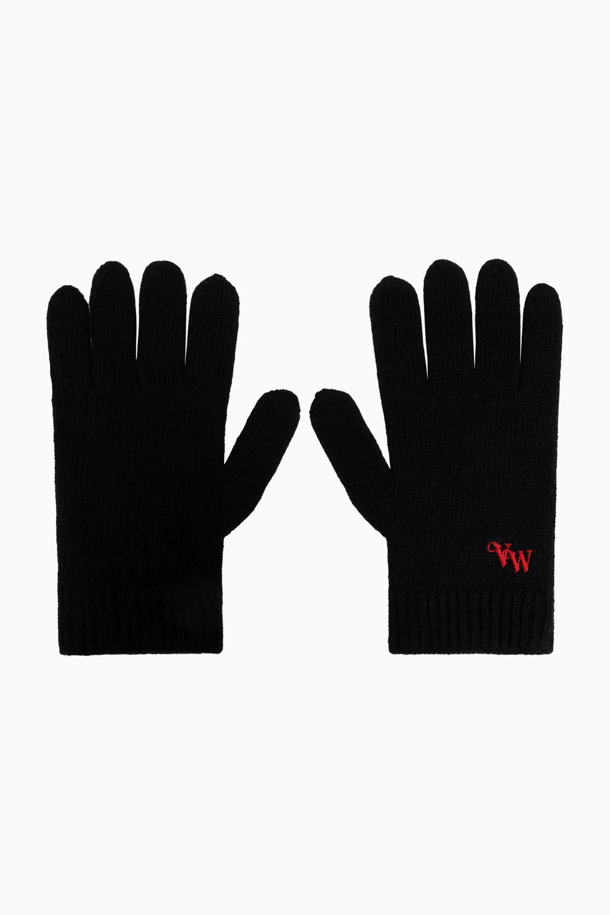 Introducing the Cashmere Gloves from the illustrious Vivienne Westwood collection, these black unisex gloves epitomize winter elegance. Crafted from the finest cashmere, they offer unparalleled softness and warmth, making them the perfect accessory for any winter ensemble. With a classic five-finger design, these gloves ensure both comfort and full functionality. The luxurious material envelops your hands in a cocoon of warmth, ideal for the coldest days. The dominant black hue offers versatile styling options, easily complementing any outfit. A distinctive feature is the red embroidery of the initials "VW" on the exterior of one glove, a subtle yet striking detail that signifies the exclusivity and high quality of the piece. The elastic cuffs provide a snug fit around the wrists, ensuring additional protection from the chill. Why Buy This Product? Exquisite craftsmanship from renowned designer Vivienne Westwood Made from 100% premium cashmere for ultimate softness and warmth Classic and versatile black color Elegant red embroidery of designer's initials Comfortable and functional five-finger design Elastic cuffs for a secure fit and added warmth