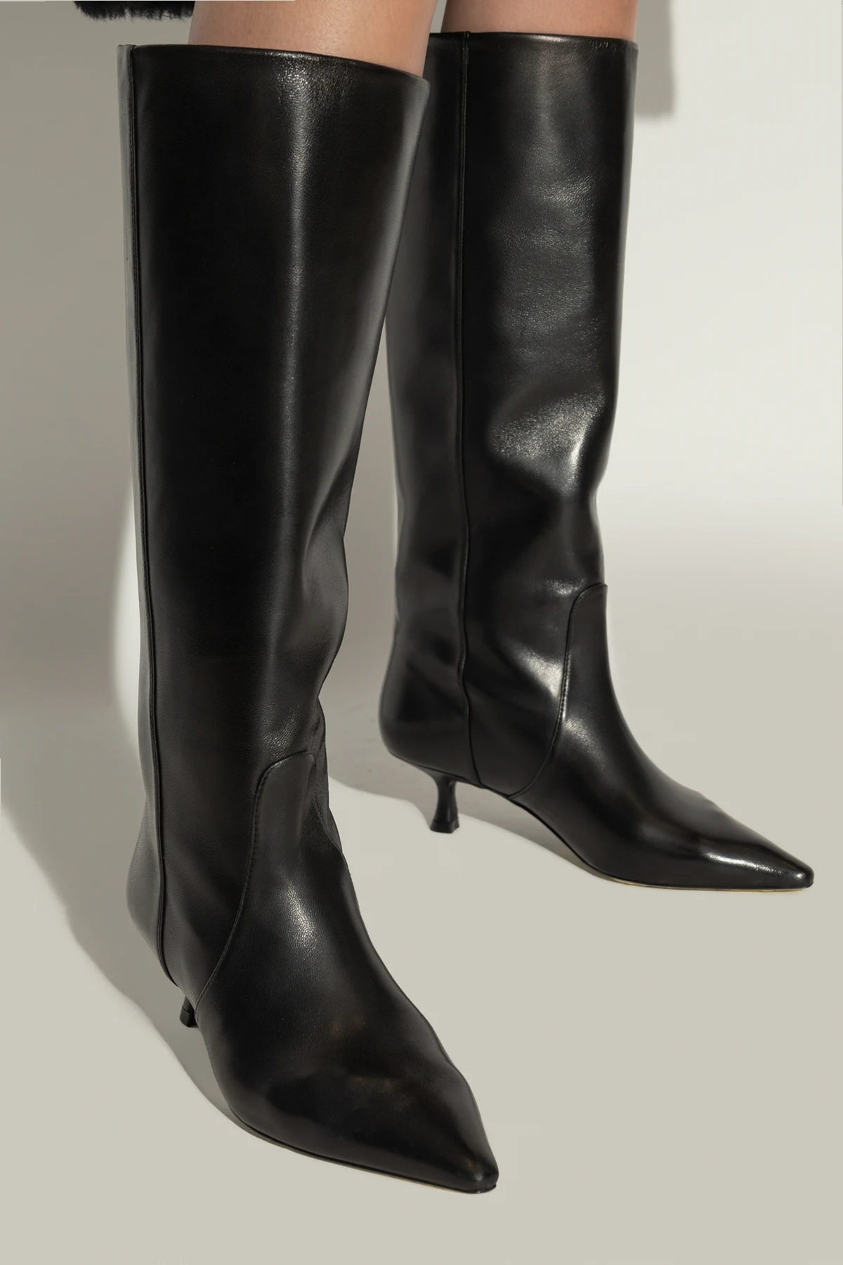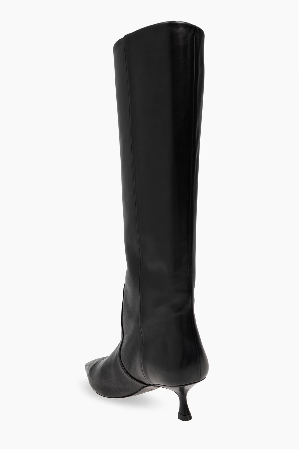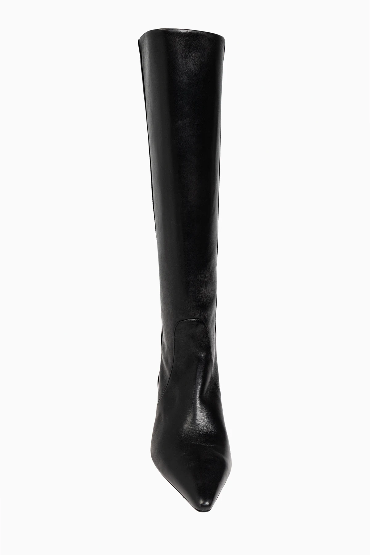 Introducing the exquisite leather boots ‘Naomi’, a testament to refined elegance and unparalleled craftsmanship by the illustrious designer Stuart Weitzman. These boots are meticulously crafted from premium leather, bestowing them with a luxurious and sophisticated allure. The ‘Naomi’ boots are characterized by their striking black color and a classic, high-knee silhouette that exudes timeless sophistication. The slender, well-fitted design perfectly contours to the leg, enhancing both style and comfort. Equipped with a medium-height kitten heel, these boots effortlessly blend elegance with comfort, making them ideal for various occasions. The pointed toes add a touch of modernity and chic, while the delicate stitching along the sides accentuates their elegant appearance. Why Choose These Boots? Crafted from high-quality leather for a luxurious feel. Classic black color that complements any outfit. High-knee design for a timeless and sophisticated look. Medium-height kitten heel for added elegance and comfort. Pointed toes for a modern, stylish appeal. Delicate side stitching enhances the overall elegance.
