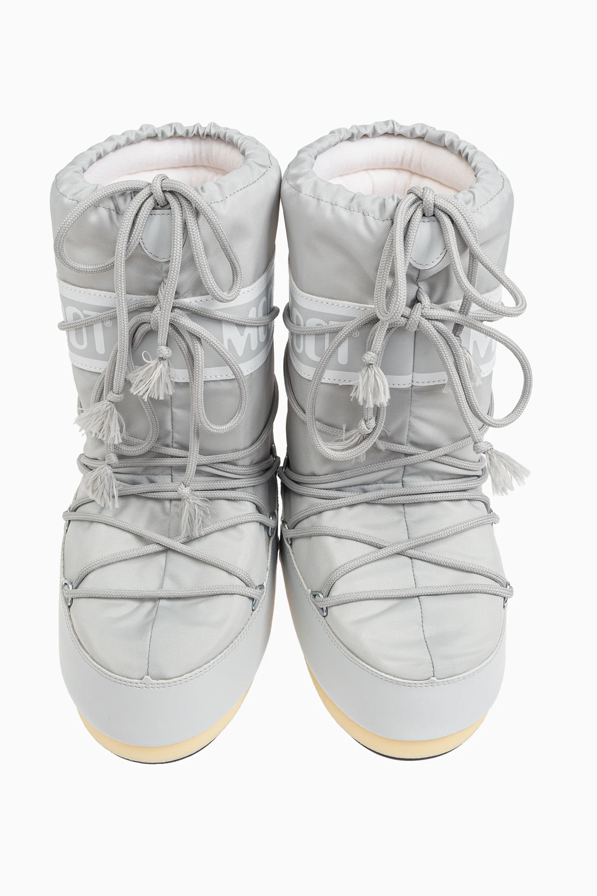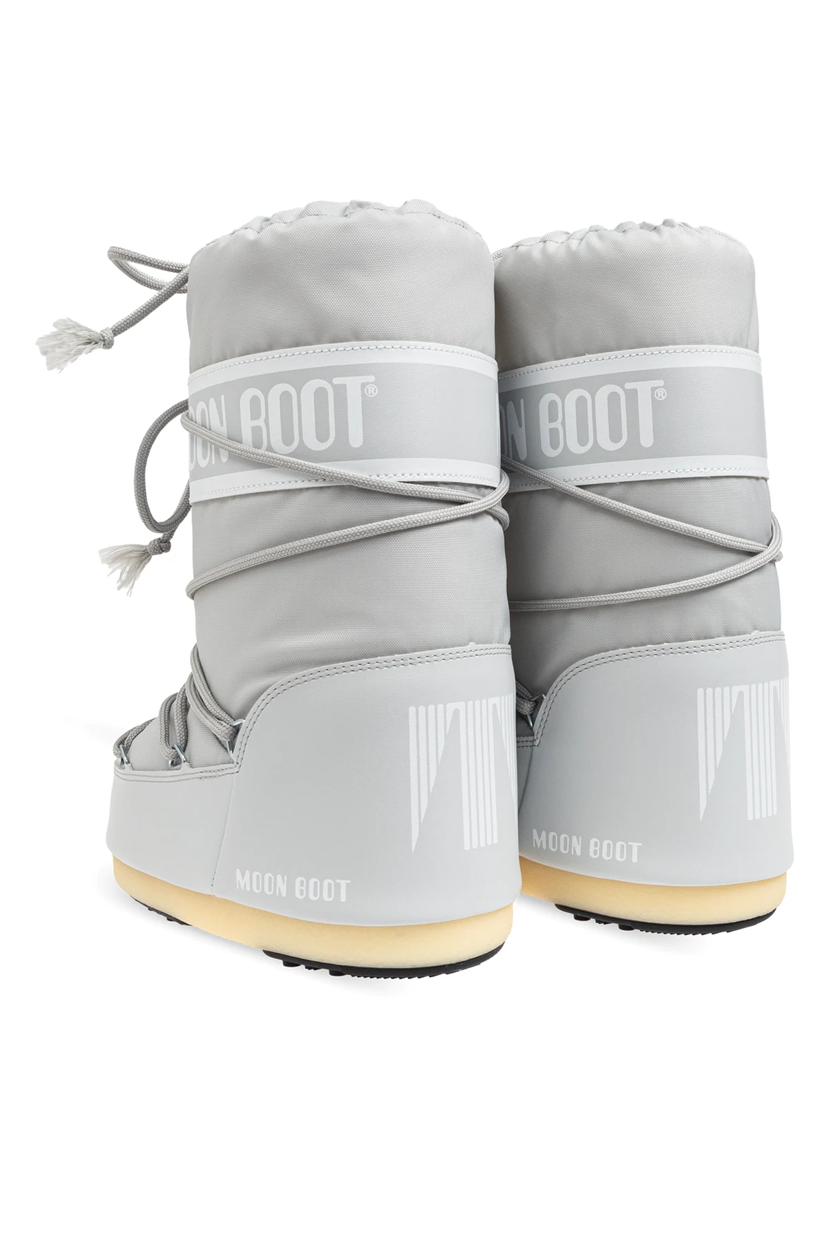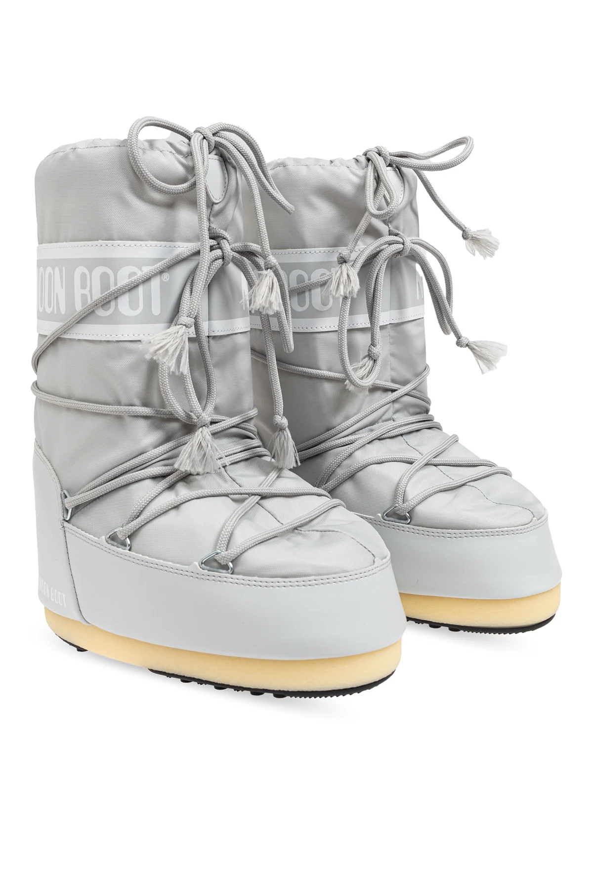 Introducing the Icon Nylon Snow Boots by Moon Boot, a distinguished addition to any child's winter wardrobe. These boots epitomize the perfect blend of functionality and refined aesthetics, designed to provide unparalleled comfort and style. Crafted from premium nylon, the exterior boasts exceptional water resistance and durability, ensuring your little one's feet stay dry and warm. The gum rubber sole offers superior grip on icy surfaces, making these boots a reliable companion during snowy adventures. The classic, wide shape of the boots, coupled with a high shaft extending above the ankle, provides robust protection against the cold. The iconic lacing system, complete with fringed ends, intricately wraps around the shaft, delivering both aesthetic appeal and a secure fit. The prominent "MOON BOOT" branding on the upper band and side soles accentuates the boots' distinctive design. Rendered in an elegant gray hue, these snow boots exude a neutral yet sophisticated charm, perfect for any winter ensemble. Tailored specifically for children, the Icon Nylon Snow Boots ensure a snug fit, catering to the unique comfort needs of young feet. Why Choose This Product? Waterproof Nylon Exterior – Keeps feet dry and comfortable. Superior Traction – Gum rubber sole ensures stability on slippery surfaces. Iconic Design – Recognizable "MOON BOOT" branding and stylish lacing system. Child-Specific Fit – Optimized for the perfect fit for children's feet.