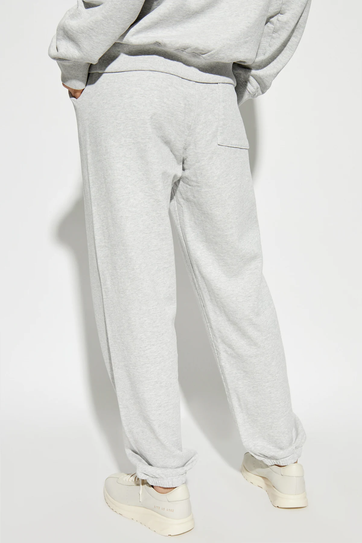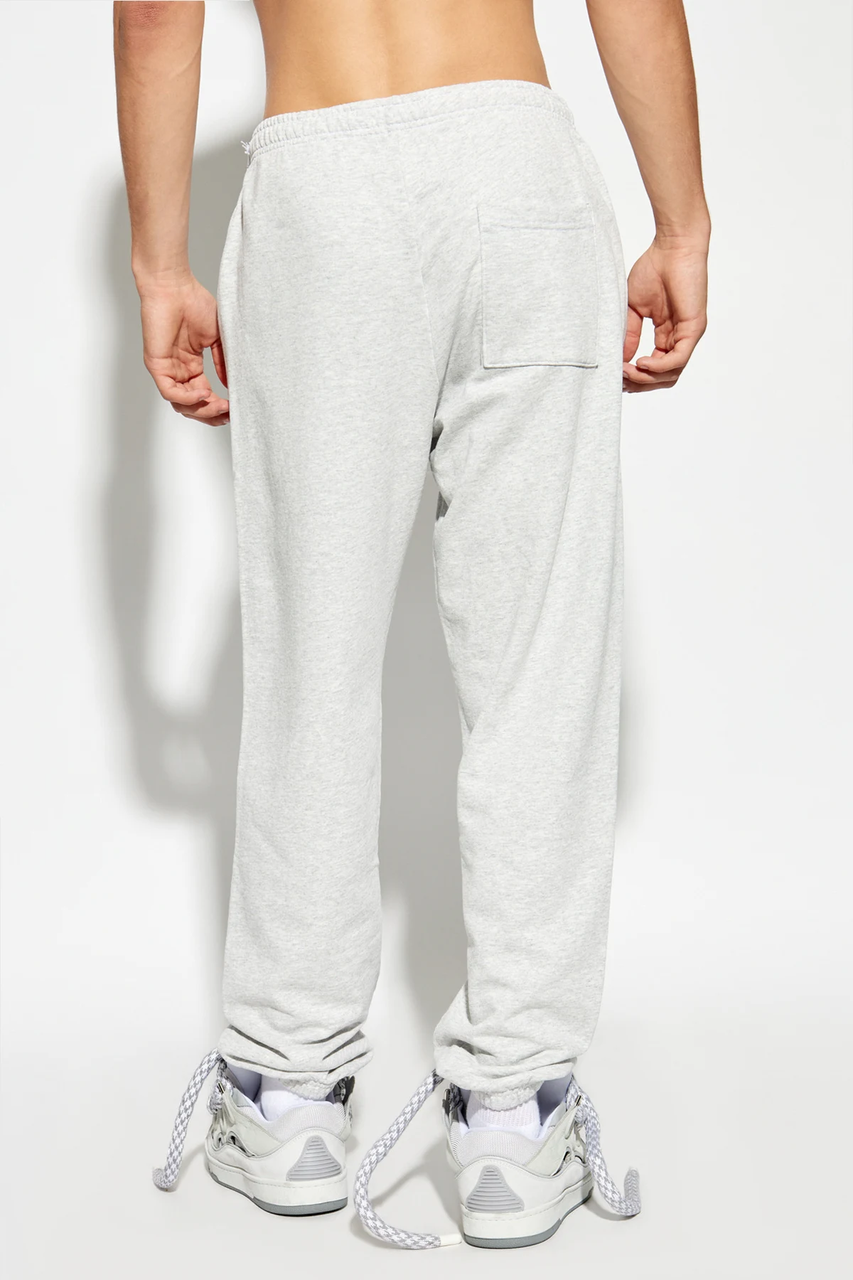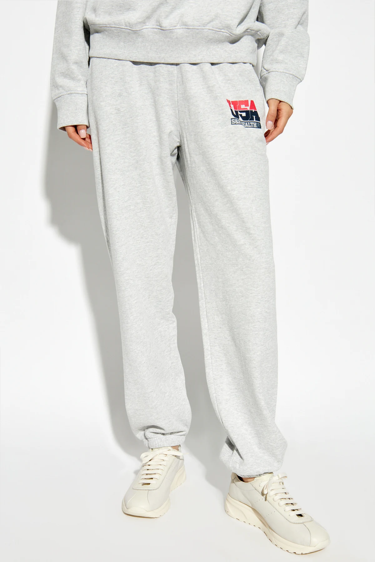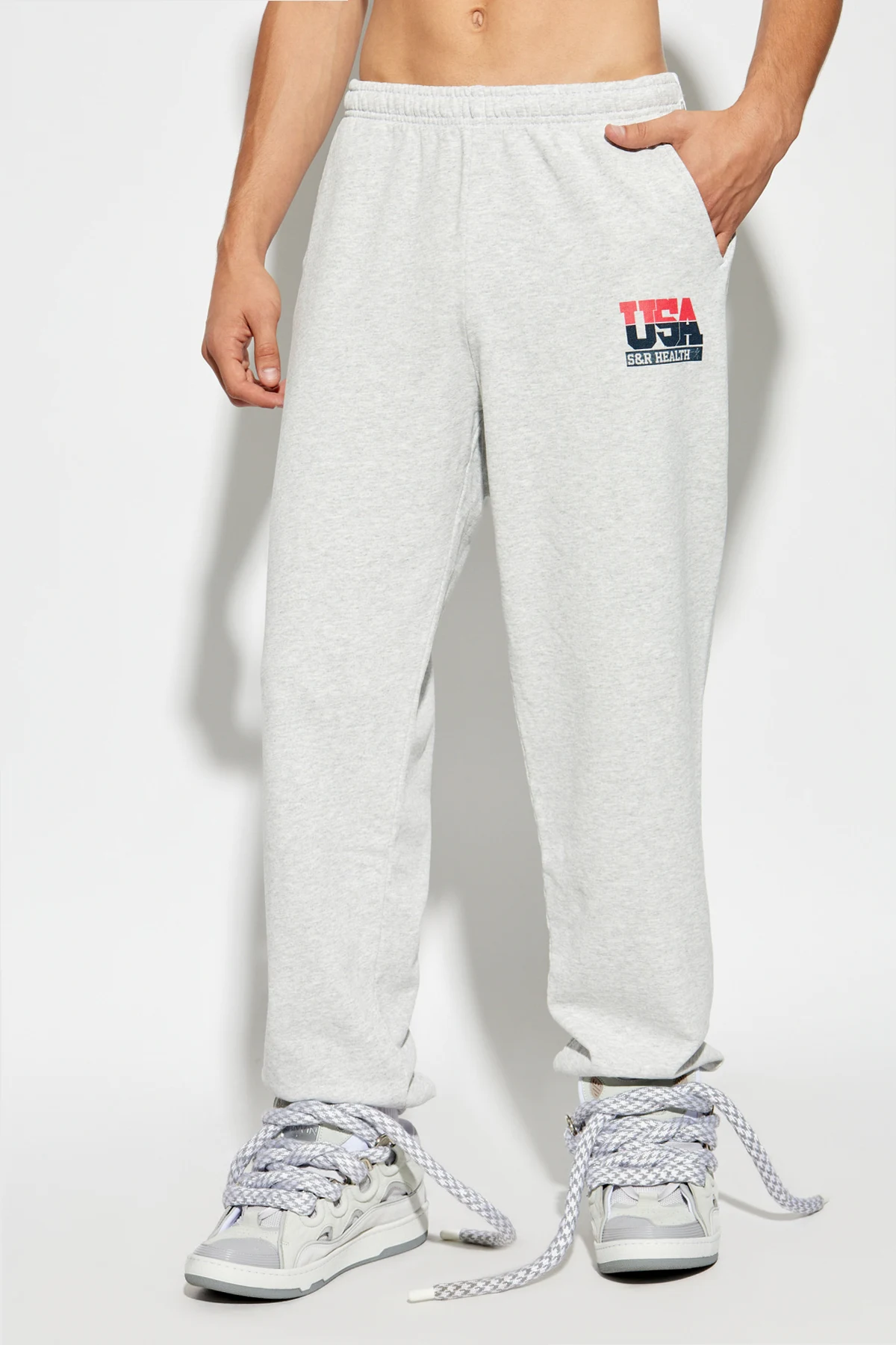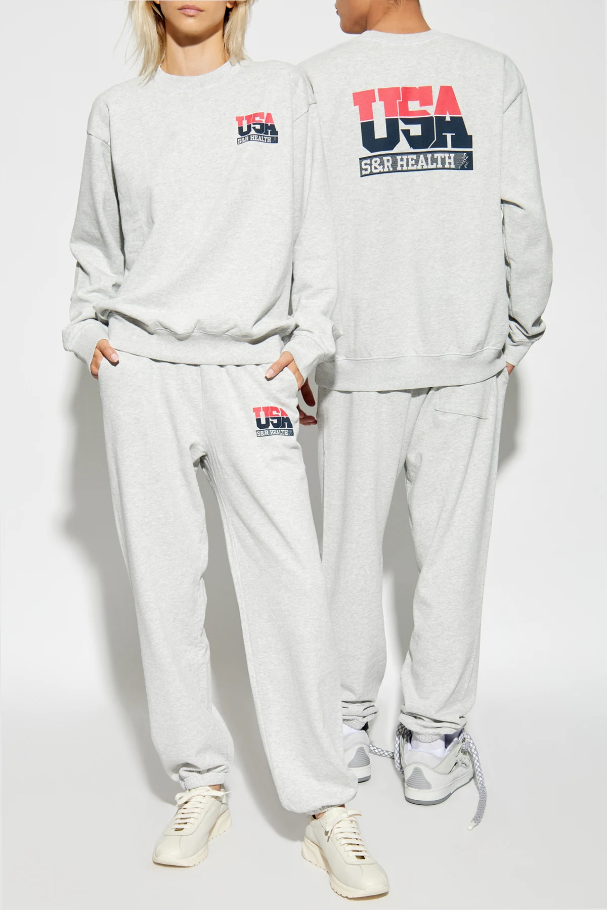 Indulge in the epitome of comfort and sartorial elegance with our exclusive Gray Sweatpants with Logo from the iconic Sporty & Rich collection. Crafted from a plush blend of cotton and polyester, these sweatpants harmonize luxury with everyday wearability. The sophisticated gray hue is complemented by a distinctive "USA S&R HEALTH" logo, meticulously printed in vibrant red and blue on the left thigh. This hallmark detail underscores the brand's commitment to timeless style and understated luxury. Designed with a classic, relaxed fit, these sweatpants feature an elastic waistband with adjustable drawstrings and elasticized cuffs, ensuring a perfect fit and unparalleled comfort. Practicality is not compromised, with two side pockets and a single back pocket offering ample storage for your essentials. Why Choose This Product? Exclusive Design: Features the iconic "USA S&R HEALTH" logo, adding a touch of elegance and distinction. Premium Material: Made from a soft and comfortable blend of cotton and polyester. Versatile Style: Ideal for casual outings, workouts, or relaxed days at home. Unisex Appeal: Suitable for all genders, ensuring broad appeal and utility. Practical Details: Includes three convenient pockets and an adjustable waistband for a custom fit.