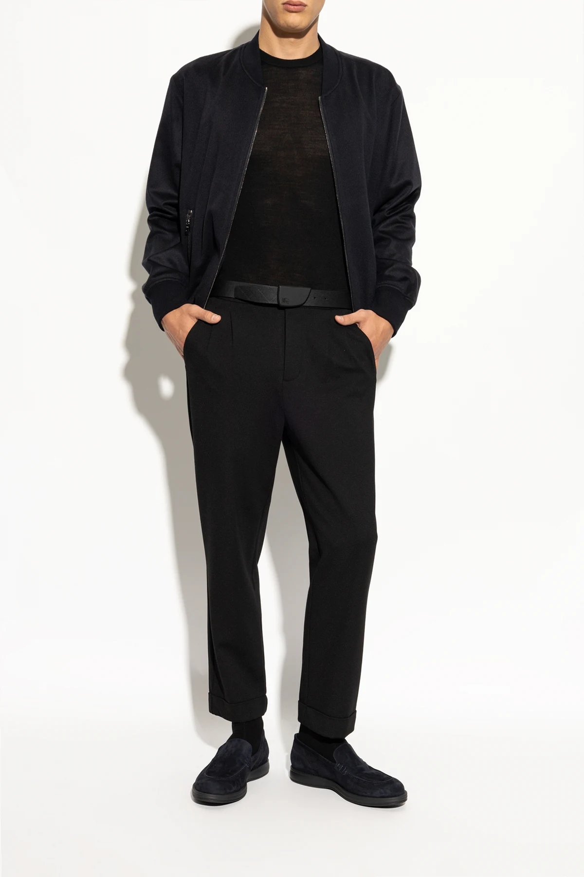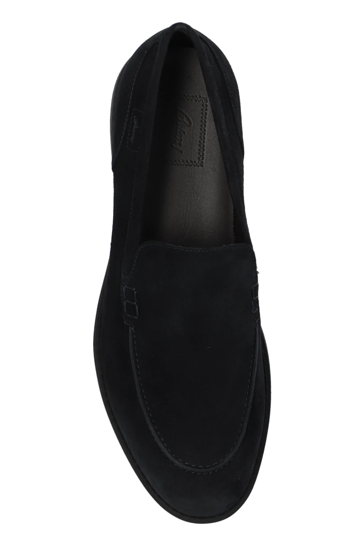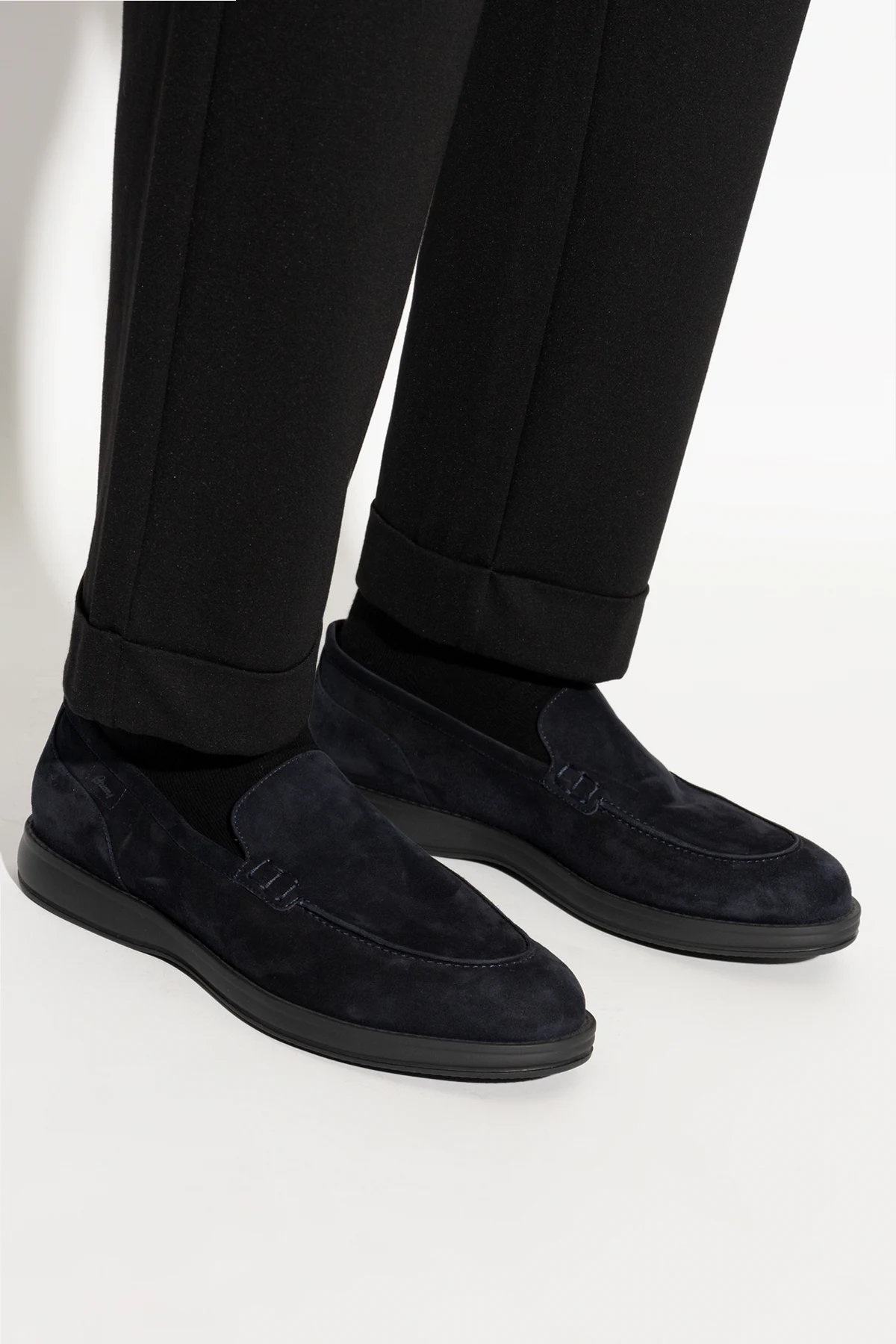 Introducing the epitome of sophistication and comfort: the Brioni Leather Loafers. These exquisite men's loafers, hailing from Brioni's exclusive collection, masterfully blend timeless elegance with contemporary casual aesthetics. Crafted from premium quality leather, these loafers exhibit an impeccable suede finish that bestows a soft, luxurious texture. The rich navy hue offers versatility, seamlessly complementing a myriad of ensembles, whether formal or semi-formal. The classic loafer silhouette, devoid of laces, ensures ease of wear. Delicate stitching and subtle side accents elevate the design, while the designer's logo on the insole underscores their exclusivity. The flat rubber sole promises unparalleled comfort and excellent traction, making these shoes a paragon of style and functionality. Why Choose This Product? Timeless Elegance: Classic loafers design with a modern twist. Premium Materials: High-quality suede leather exterior and leather interior. Versatile Color: Rich navy blue effortlessly matches various outfits. Comfort and Convenience: Slip-on design with a comfortable flat rubber sole. Exclusive Craftsmanship: Designed by Brioni, a hallmark of luxury and technical excellence.