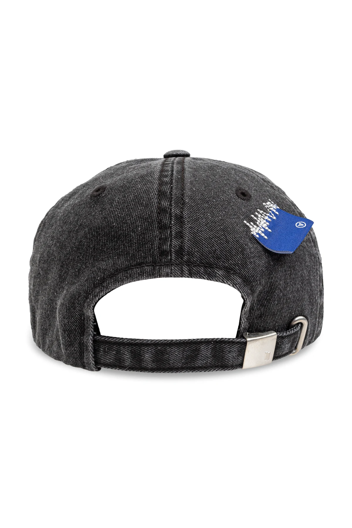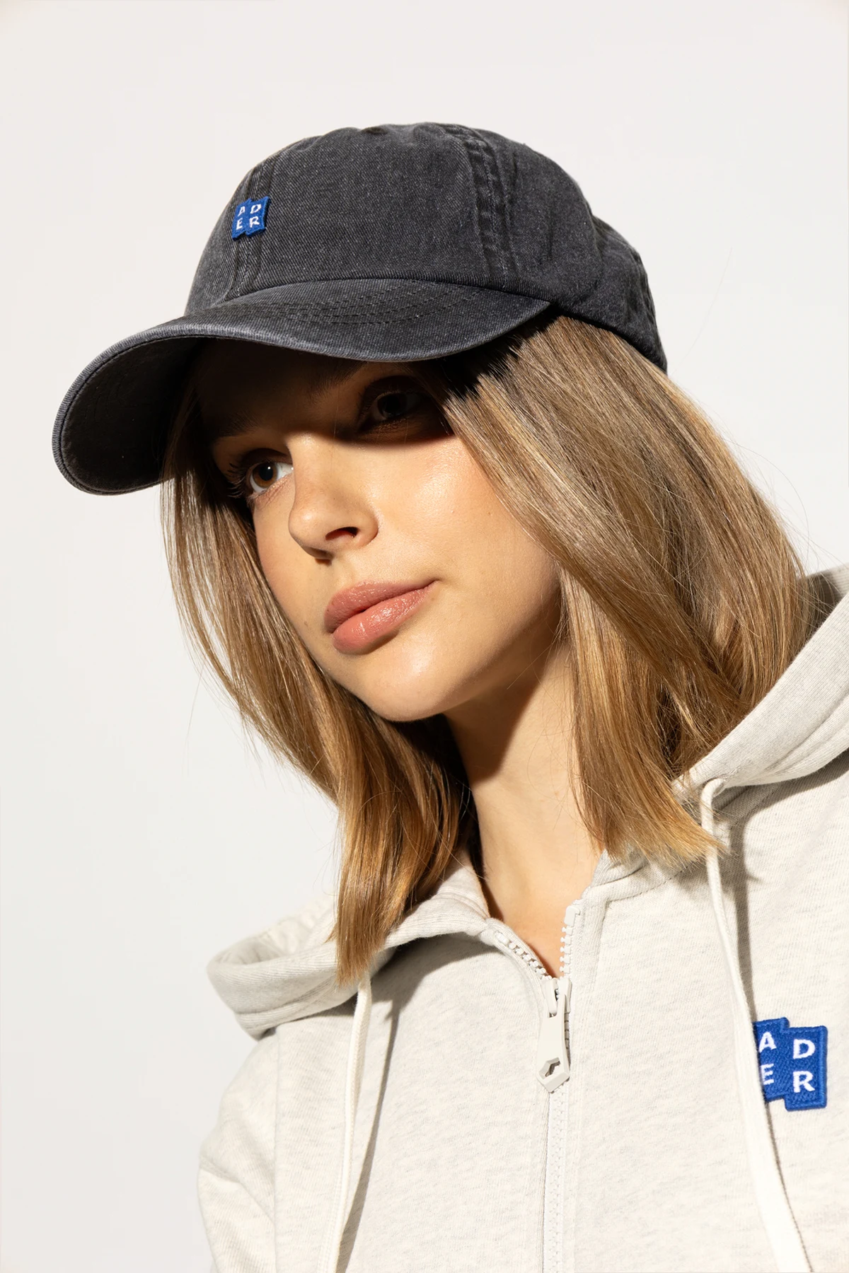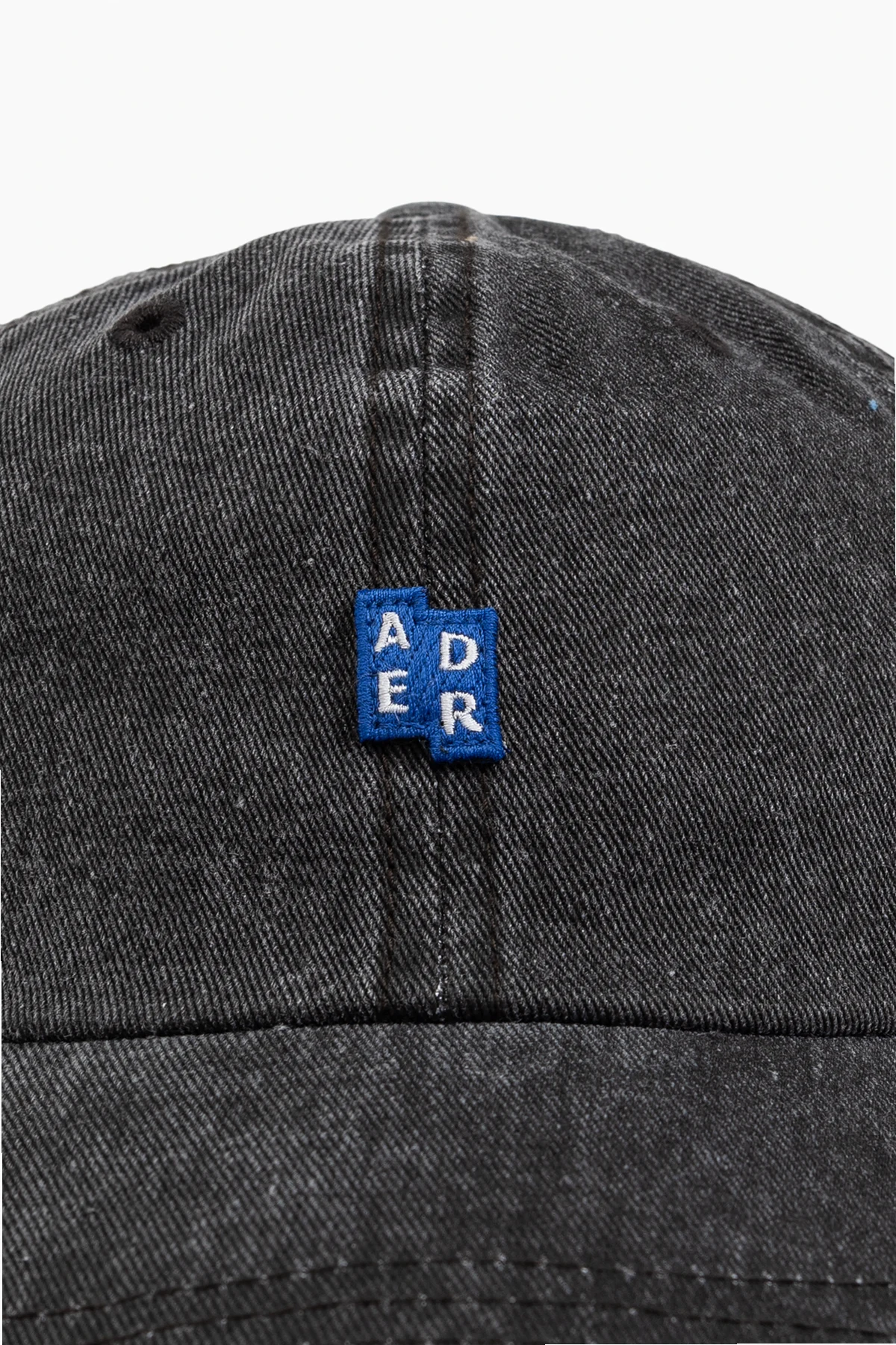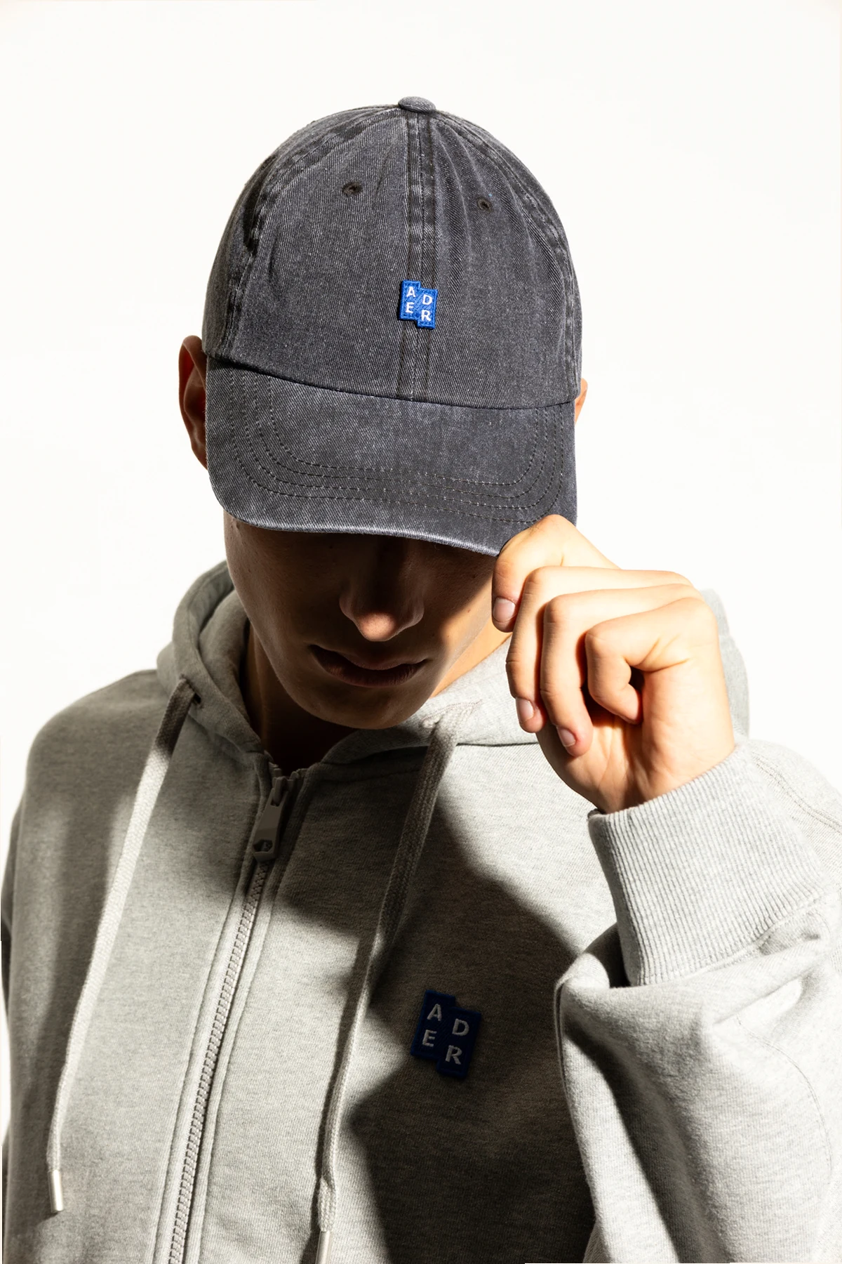 Introducing the exclusive Jeans Cap with Visor, a quintessential blend of casual elegance and modern design. This unisex cap, meticulously crafted by Ader Error, exudes sophistication with its dark gray, denim-like material that seamlessly complements any wardrobe. The cap features a classic, sporty shape with a rounded visor, effortlessly combining timeless style with contemporary appeal. Adorned with a small, blue rectangular logo with white "ADER" lettering on the front, it subtly showcases the brand's signature aesthetic. Further enhancing its allure, the cap is equipped with a metal clasp at the back, ensuring a perfect fit for any head size. A white embroidered logo beside the clasp adds a touch of elegance, underscoring the impeccable craftsmanship synonymous with Ader Error. Why Choose This Product? Unisex design suitable for both men and women Versatile style that complements various outfits High-quality denim-like material for a chic, casual look Adjustable metal clasp for a customized fit Distinctive branding with embroidered and printed logos