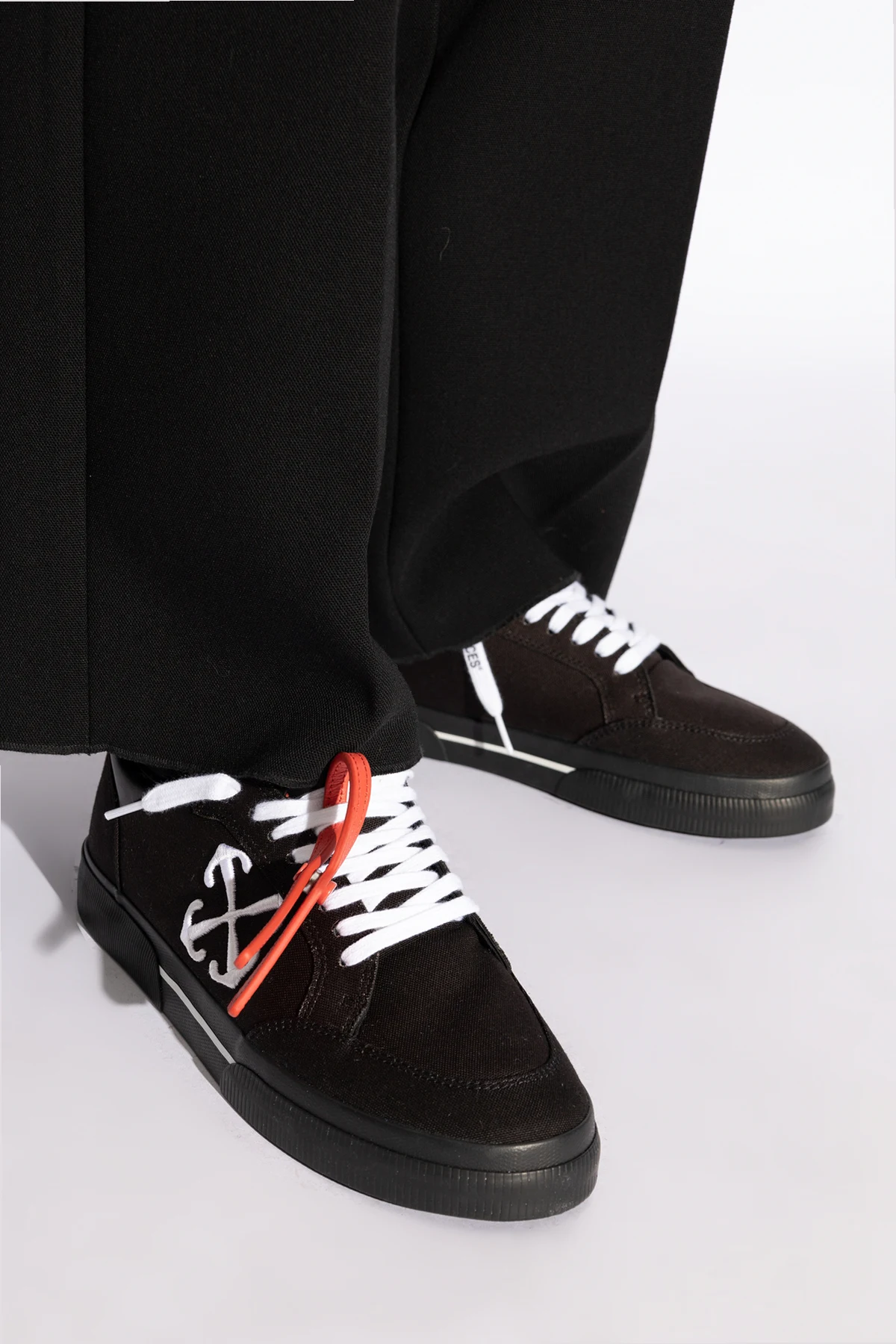 Indulge in sophistication and modernity with the exclusive New Vulcanized sneakers from the esteemed Off-White brand, conceived by the visionary designer Virgil Abloh. These low-top sneakers epitomize contemporary elegance and street-smart style. The sleek, low-profile design is accentuated by a flat rubber sole, ensuring remarkable grip and stability. Crafted from high-quality black fabric, the exterior is both durable and refined, complemented by white detailing on the sole for an added touch of finesse. Distinctive design elements include the iconic arrow logo in contrasting white on the side, and the signature red tag affixed to one of the shoes, unmistakably marking the Off-White aesthetic. The sneakers are adorned with the “Off-White™” inscription on the tongue and interior, further reinforcing the brand's identity. White laces provide a striking contrast against the dominant black color, enhancing the minimalist yet bold design. These sneakers are tailored for the modern man, blending athletic functionality with a polished look. Why Choose This Product? Exclusive Design: Features Off-White's distinctive arrow logo and red tag. Premium Materials: High-quality fabric upper, leather and fabric interior, and durable rubber sole. Modern Elegance: Combines minimalist style with contemporary flair. Superior Comfort: Low-top profile and flat rubber sole for optimal grip and support.