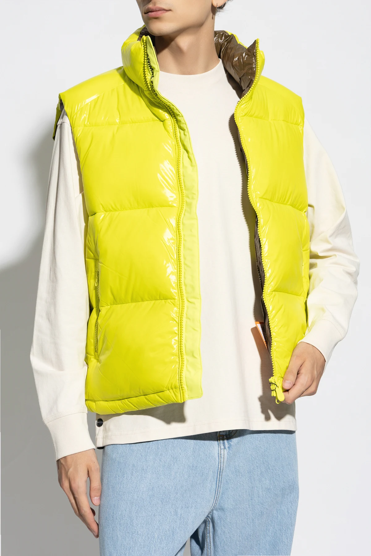 Introducing the exquisite ‘Ailantus’ insulated vest from the exclusive collection by Save The Duck. This vest captivates with its striking neon yellow hue, perfect for the discerning individual who values both style and functionality. Crafted from lustrous, quilted nylon, the ‘Ailantus’ vest is designed to withstand the elements, providing both durability and a touch of sophistication. The high collar ensures extra protection against the cold, while the sleek, sleeveless design offers a timeless silhouette. Equipped with a full-length dual zipper and two practical side pockets, each secured with zippers, this vest combines convenience with a refined aesthetic. The Save The Duck logo, a distinctive round black emblem featuring a duck, adorns the vest, underscoring its luxurious pedigree. The slightly tailored fit of the vest enhances comfort and thermal insulation, making it an indispensable addition to any winter wardrobe. The innovative PLUMTECH® insulation mimics the thermal properties of natural down while adhering to the brand's commitment to animal welfare. Why Choose This Product? Eye-catching neon yellow color for a modern look High collar and sleeveless design for classic style Durable, weather-resistant quilted nylon material Full-length dual zipper for easy wear Practical zippered side pockets Exclusive Save The Duck logo detail PLUMTECH® insulation for superior warmth