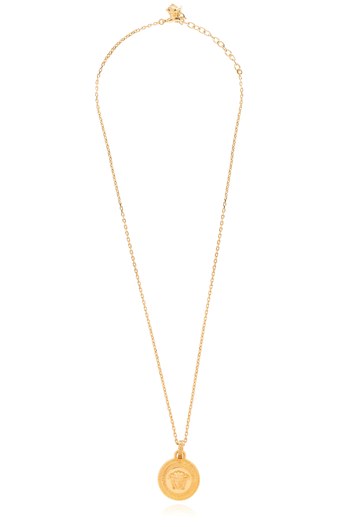 Gold-tone necklace with a Medusa head pendant and lobster clasp closure from Versace.