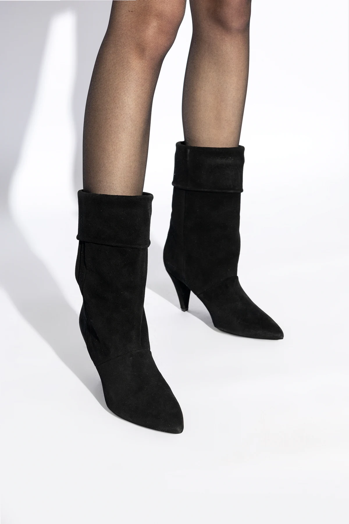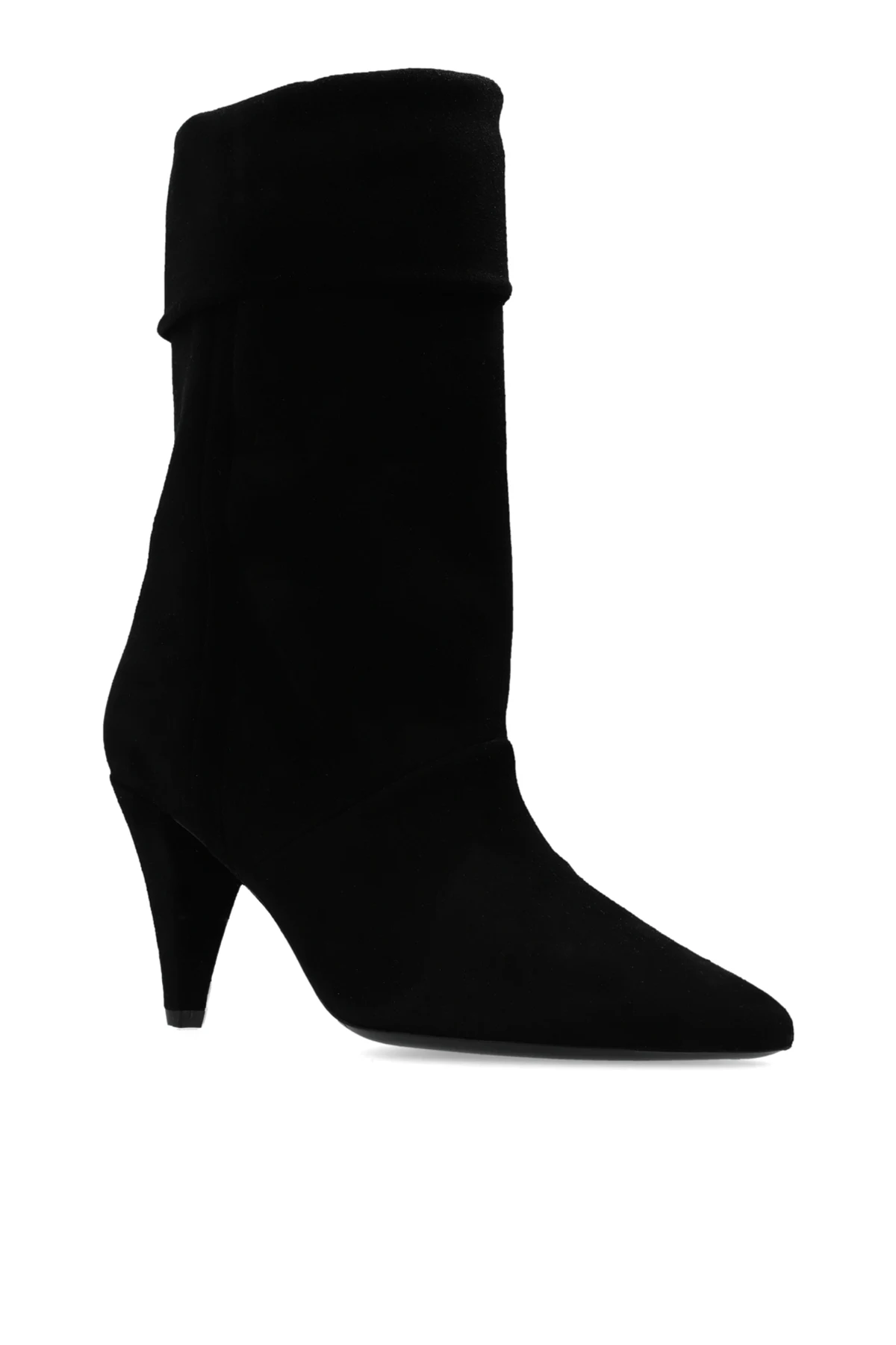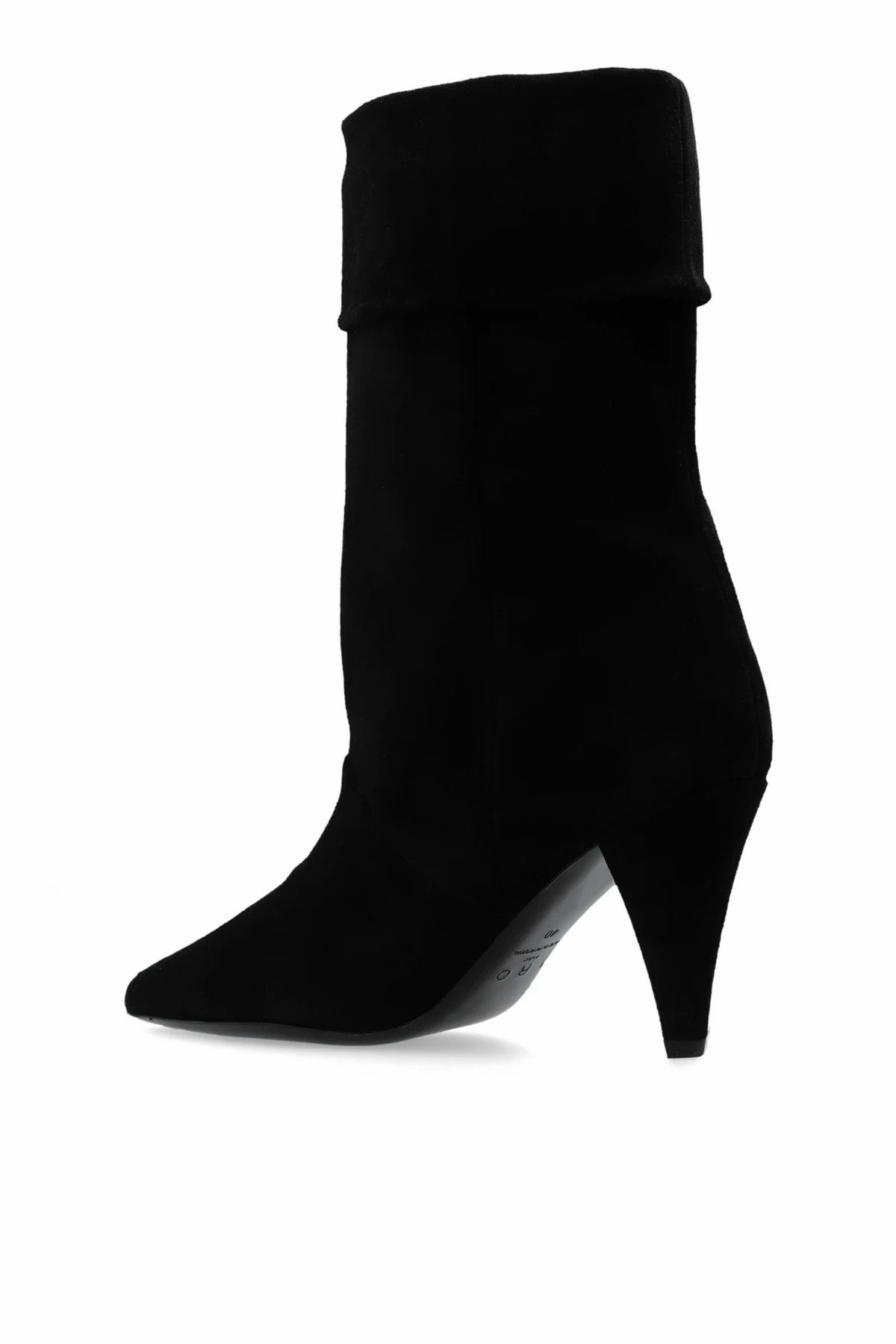 Introducing the "Lolo" High Heel Booties by the esteemed designer, Iro. Crafted with meticulous attention to detail, these booties exude sophistication and versatility. The dominant matte black finish, achieved through the use of high-quality suede-like leather, evokes a sense of understated elegance. The silhouette, characterized by a pointed toe and a sleek, slender heel, encapsulates the essence of modern chic. The medium-height shaft, which gracefully ascends above the ankle yet remains below the calf, features a subtle asymmetry that adds a touch of originality to the design. Free from garish embellishments, the minimalist aesthetic underscores the booties' universal appeal, rendering them a perfect complement to both elegant ensembles and casual attire. Notably, the high and thin heel not only enhances the sophistication of the booties but also suggests their suitability for special occasions, without compromising on the versatility that allows for seamless integration into a myriad of styles. The precision in craftsmanship and the uniformity of the material testify to the exceptional quality of the product. Why Purchase These Booties? Elegant matte black suede-like finish for a sophisticated look. Pointed toe and slender heel silhouette for a modern chic appearance. Subtle asymmetry in the shaft design adds uniqueness. Minimalist design, free from overt branding, allowing for versatile styling. High-quality craftsmanship from renowned designer Iro.