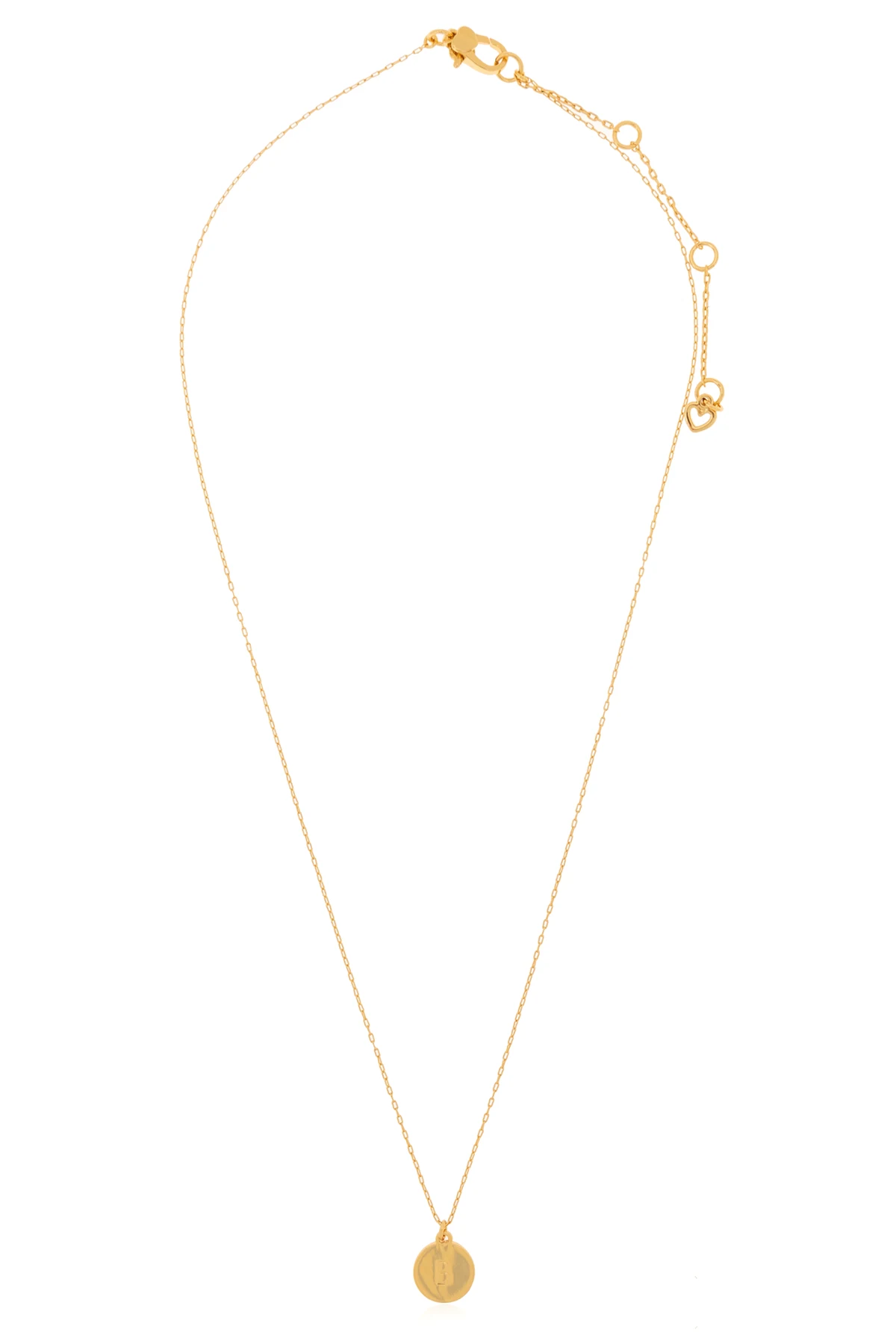 Introducing the Kate Spade 'B' Pendant Necklace, a quintessence of grace and personalized elegance. Crafted with an eye for timeless beauty, this exquisite piece features a delicate, fine chain in a radiant gold hue, culminating in a round plaque pendant. The pendant, bearing the engraved initial 'B', is filled with the same lustrous gold color, creating a harmonious and sophisticated aesthetic. The necklace's design includes a versatile length-adjustment feature, allowing for a tailored fit that complements any neckline. Secured with a traditional lobster clasp in a matching gold finish, this piece ensures both comfort and style. Whether showcased against the backdrop of a white canvas or gracing the décolletage, the Kate Spade 'B' Pendant Necklace softly illuminates, adding a touch of elegance and subtlety to the wearer's presence. Constructed with a composition of 99% metal and a hint of cubic zirconia, this necklace promises high-quality finish and durability, hallmarks of the exclusive Kate Spade brand. Its golden color not only exudes luxury but also offers versatile styling options, making it a perfect accessory for both everyday wear and special occasions. Why Purchase This Product? Personalized elegance with the initial 'B' pendant. Adjustable length for a perfect fit. High-quality craftsmanship typical of Kate Spade. Universal appeal for daily and event wear. A touch of luxury with its radiant gold finish.