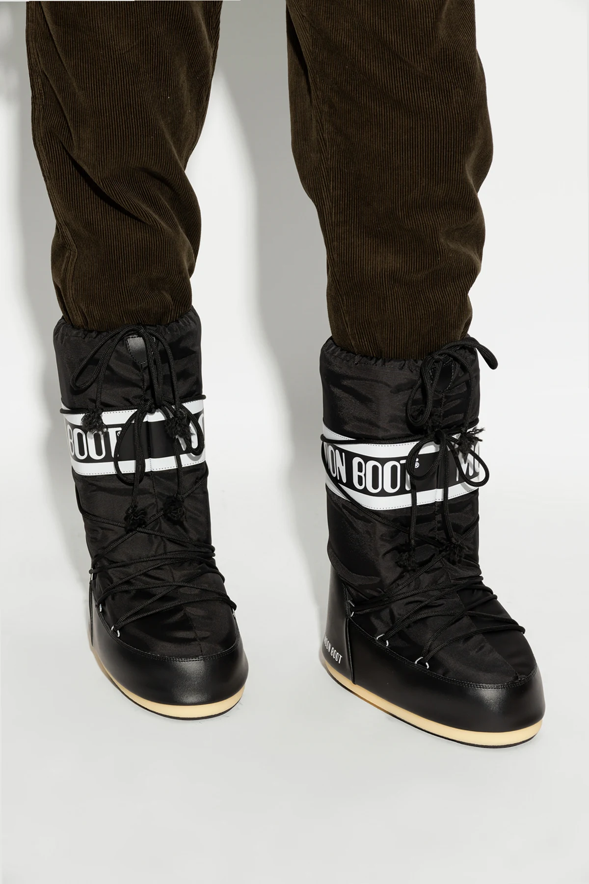 Introducing the Icon Nylon Snow Boots by Moon Boot, a harmonious blend of modernity and functionality meticulously designed for men. These exclusive boots are a paragon of style, ideal for braving the winter elements. Crafted from resilient nylon, these snow boots feature a distinctive high-profile shape that extends above the ankle. The sleek black exterior is adorned with bold white "MOON BOOT" lettering on the side panels and a logo on the back, creating a striking contrast. The full-length lacing system ensures optimal stability and comfort, accentuated by decorative tassels at the ends of the laces. The synthetic sole offers exceptional traction on snow and ice, making these boots indispensable for winter adventures. The combination of durable materials and thoughtful design elements underscores the ingenuity of Giancarlo Zanatta, whose vision from the 1970s continues to captivate the fashion-forward individuals of the 21st century. Why Choose This Product? Exclusive design from the Icon Nylon collection. High-profile shape providing superior ankle support. Durable nylon construction, resistant to harsh weather conditions. Bold, easily recognizable Moon Boot branding. Exceptional traction with a synthetic sole designed for snow and ice. Comfort and stability with a full-length lacing system.