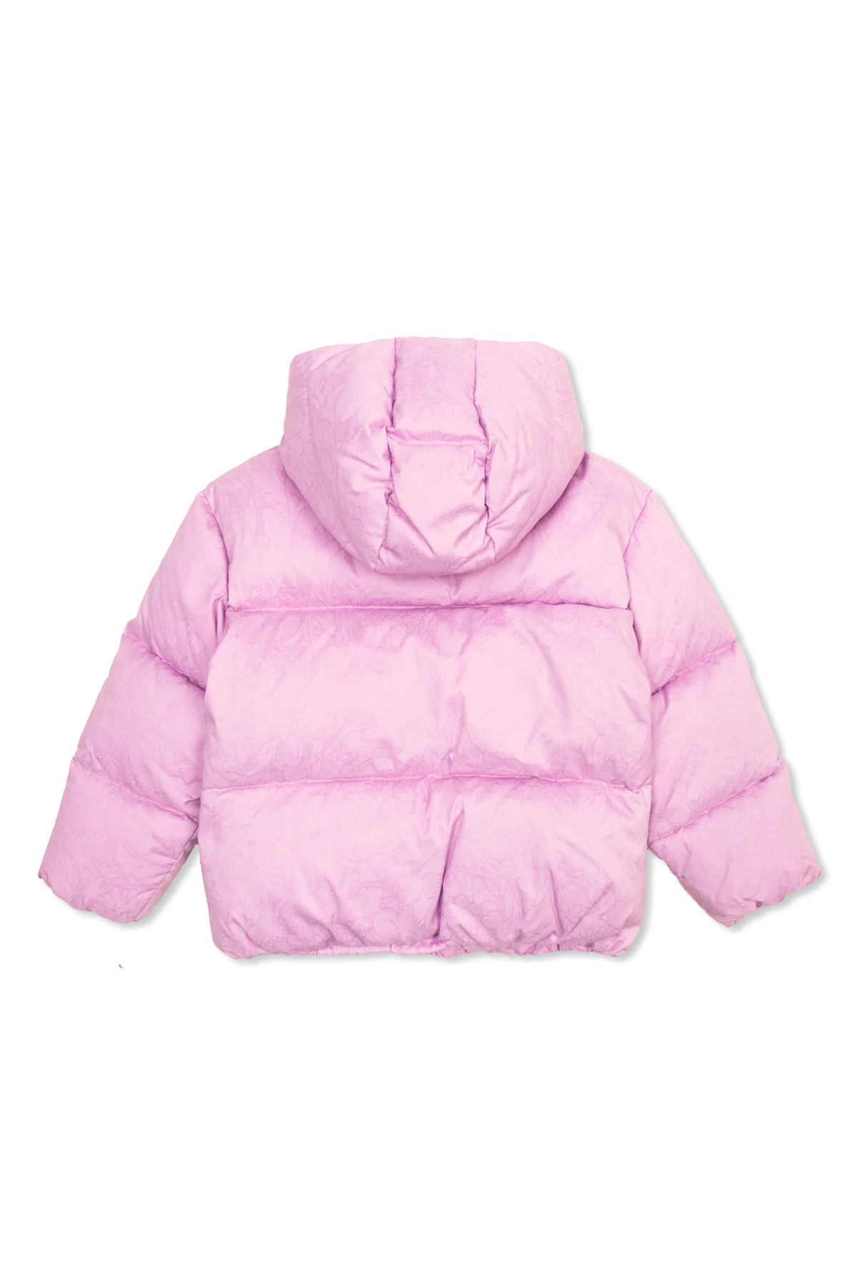 Experience the epitome of luxury with the Versace Kids Hooded Jacket. This exclusive piece, draped in an enchanting pink hue, is a timeless addition to any refined wardrobe. Meticulously crafted from high-quality synthetic materials, this jacket offers both aesthetic beauty and functional warmth for cooler days. The jacket boasts a classic, straight silhouette with long sleeves and an integral hood, ensuring both style and comfort. A subtle, floral pattern embellishes the fabric, adding a touch of elegance to its overall design. The jacket is accentuated with golden buttons engraved with a lion's head motif, exuding opulence and sophistication. Functionality meets fashion with two side pockets, each secured with snaps, providing practical storage without compromising on style. The attention to detail is evident in the expertly crafted seams, reflecting the high standards synonymous with Versace Kids. Why Choose This Product? Timeless and elegant design High-quality, synthetic materials for durability and warmth Luxurious golden buttons with designer motifs Practical side pockets with secure snaps Impeccable craftsmanship with detailed seams Versatile for various occasions