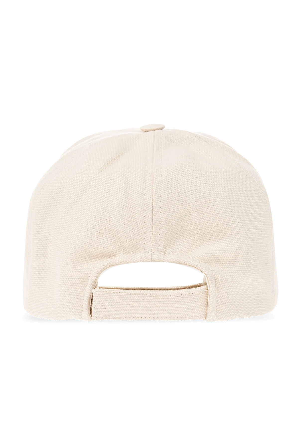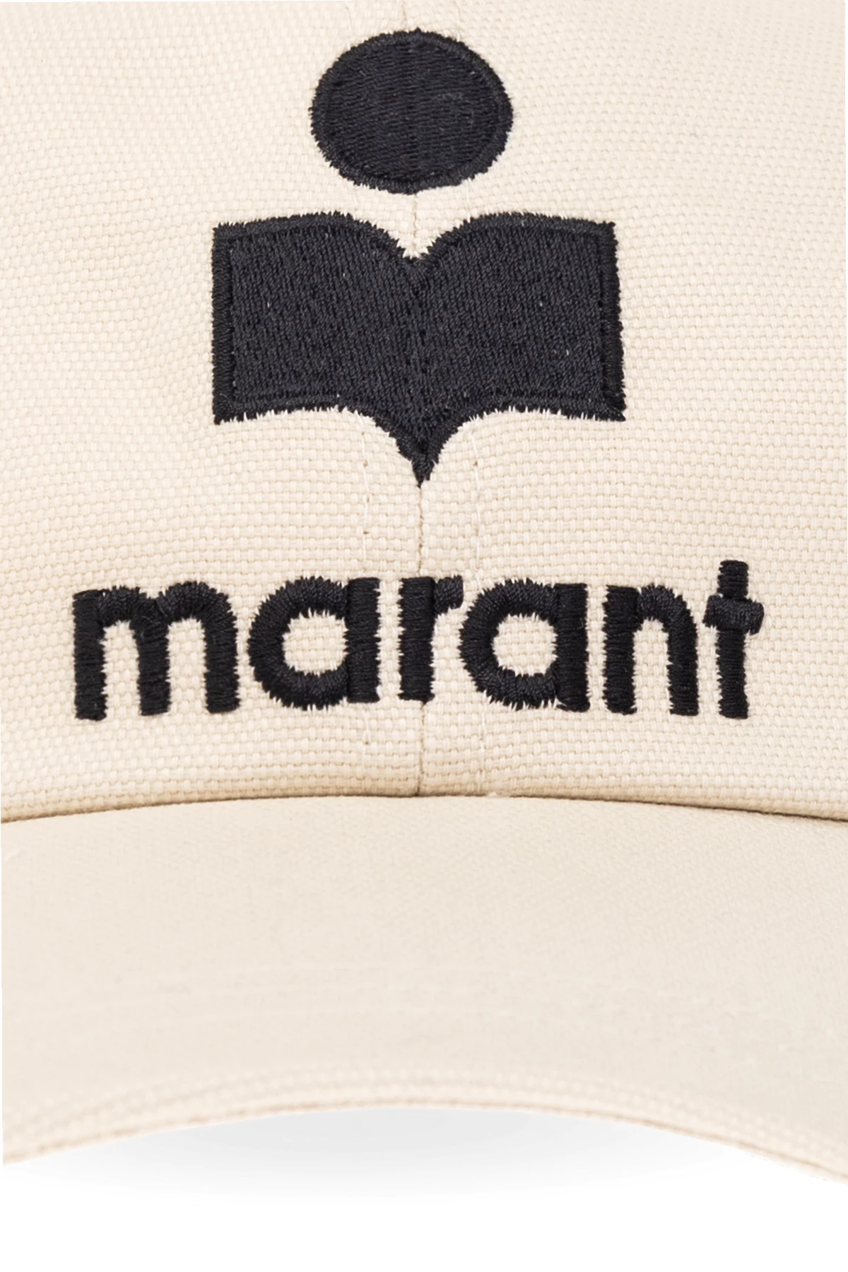 Beige baseball cap from Isabel Marant. Made of cotton, this item fastens with a back velcro closure and showcases black logo embroidery.