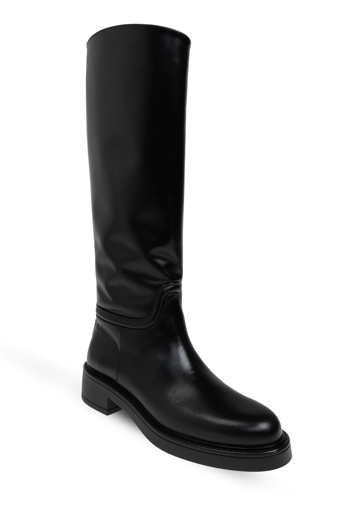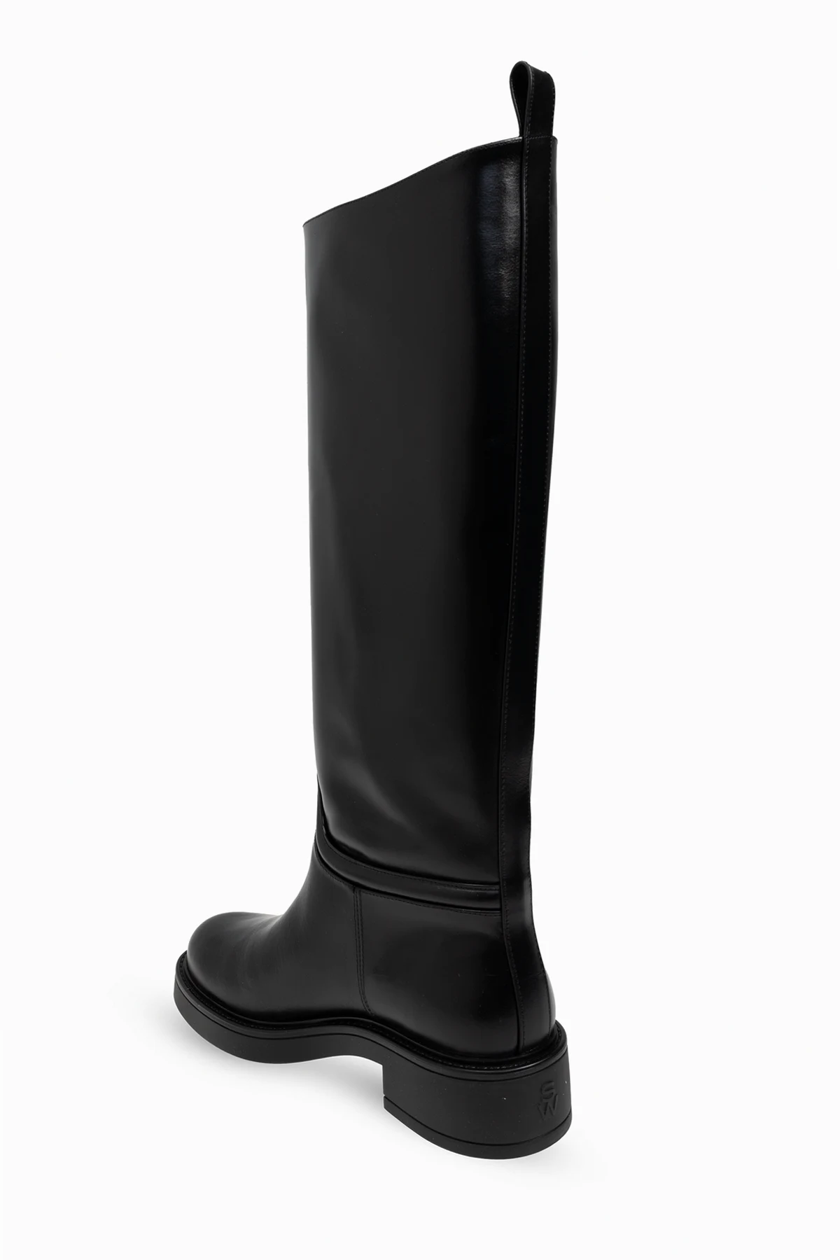 Introducing the Leather Boots 'Celia', a distinguished piece from the exclusive collection of Stuart Weitzman. Crafted from the finest black leather, these boots exude elegance and timeless sophistication. Boasting a classic knee-length design, the 'Celia' boots feature a thick, flat sole that offers unparalleled comfort and stability. The rear pull loop ensures easy wear, while the delicate stitching accentuates the boot's refined construction. An understated ruched detail at the lower shaft adds a touch of character and charm. The smooth, glossy finish amplifies the luxurious appeal of these boots. Subtly branded, the 'Celia' boots maintain a minimalist aesthetic, emblematic of high-end fashion. Why You Should Buy This Product High-quality black leather offers durability and a sophisticated look. Classic knee-length design suitable for various occasions. Comfortable, flat sole ensures all-day wearability. Elegant details like rear pull loop and delicate stitching. Sleek, glossy finish underscores the boots' exclusivity.