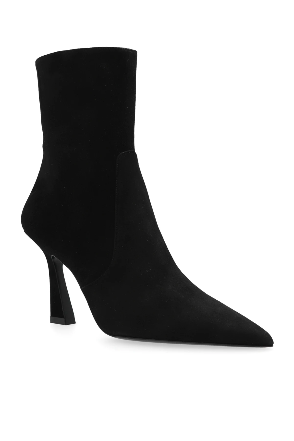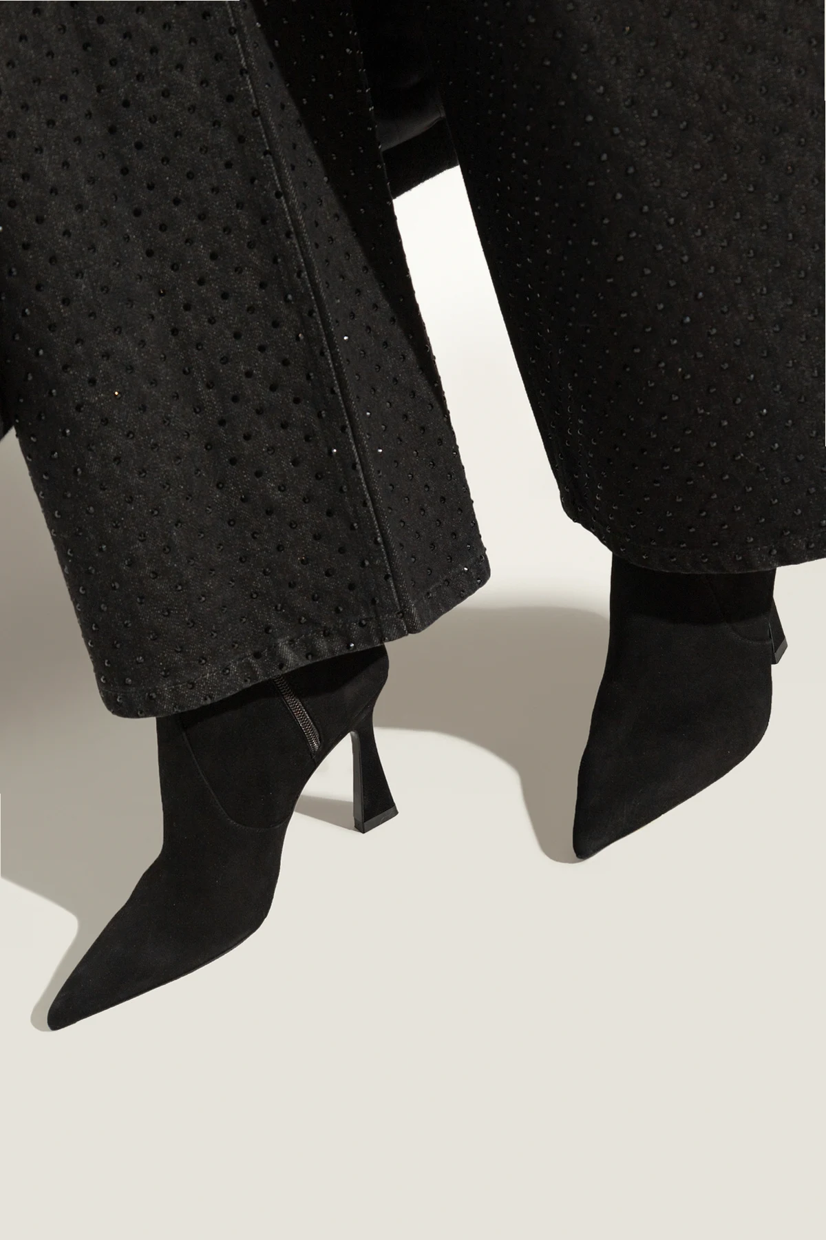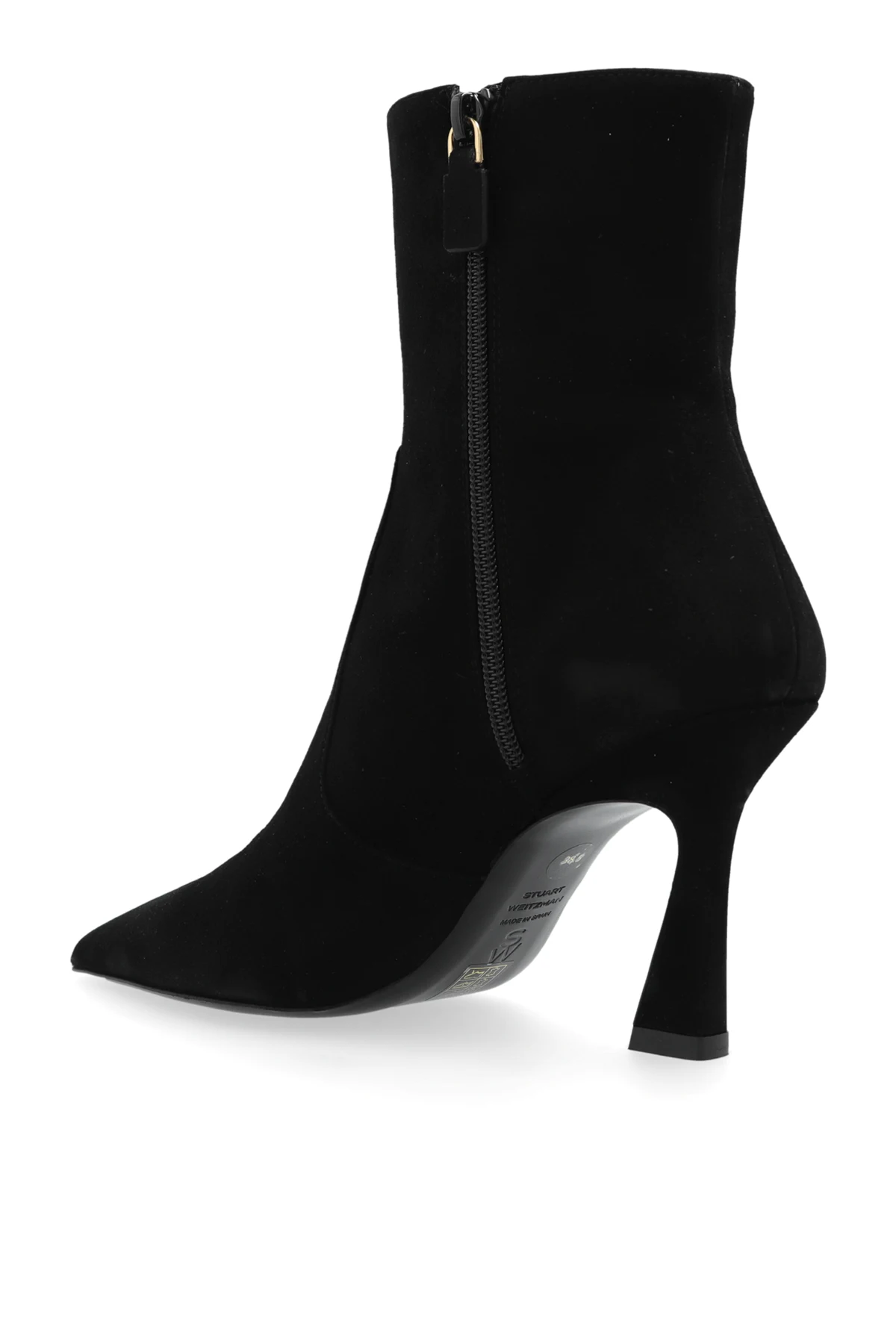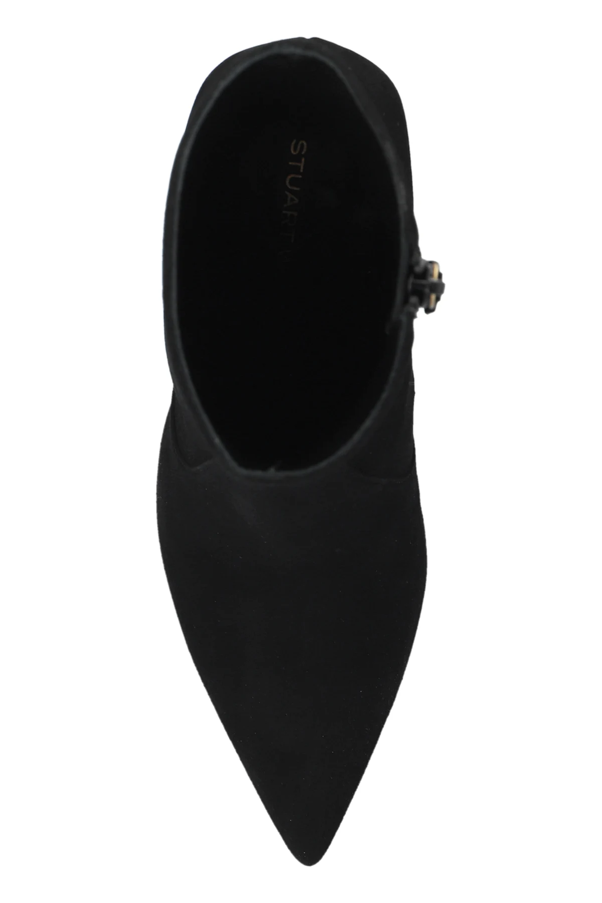 Introducing the exquisite Vinnie Heeled Ankle Boots from the esteemed designer Stuart Weitzman. These ankle boots are a perfect amalgamation of elegance and comfort, meticulously crafted to elevate your style quotient. The boots boast a sleek, refined silhouette with a pointed toe, reaching just above the ankle for a sophisticated look. The minimalist design, devoid of any patterns, enhances its understated elegance. Crafted from premium-quality leather, both inside and out, these boots promise durability and a luxurious feel. The high, slender stiletto heel with a slightly flared base ensures stability and an elegant stance. A zipper on the inner side of the shaft facilitates easy wear, while the inner lining and sole, made from high-grade materials, guarantee unparalleled comfort. The designer's logo subtly embossed on the sole verifies the authenticity of this masterpiece. In a timeless, sophisticated black hue, these boots are versatile and easy to pair with various outfits, making them an essential addition to any wardrobe. Why choose the Vinnie Heeled Ankle Boots? Designed by the renowned Stuart Weitzman Elegant, minimalist design with a pointed toe Premium leather construction for durability and luxury High stiletto heel with a stable base Convenient side zipper for easy wear Comfortable inner lining and sole Versatile black color