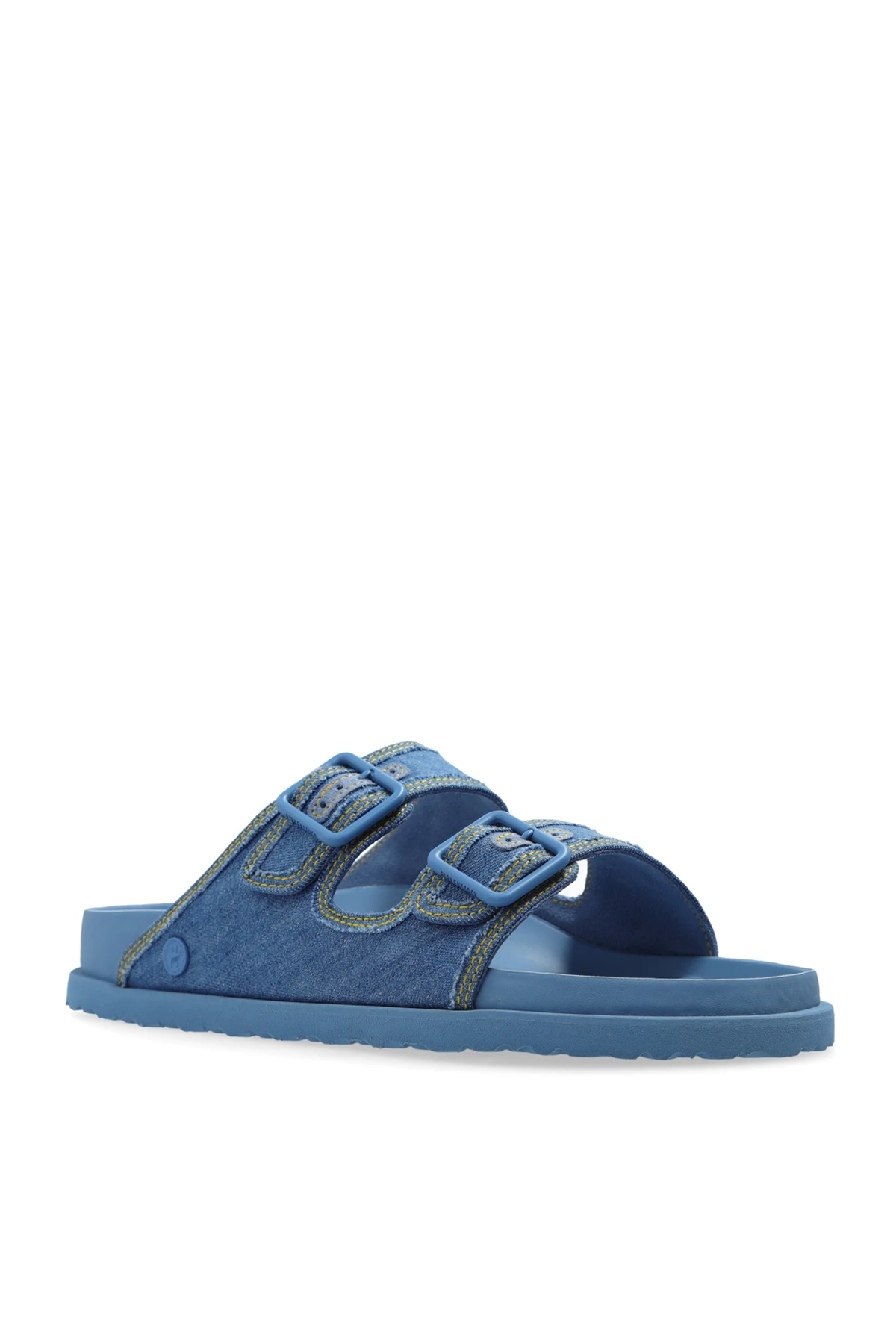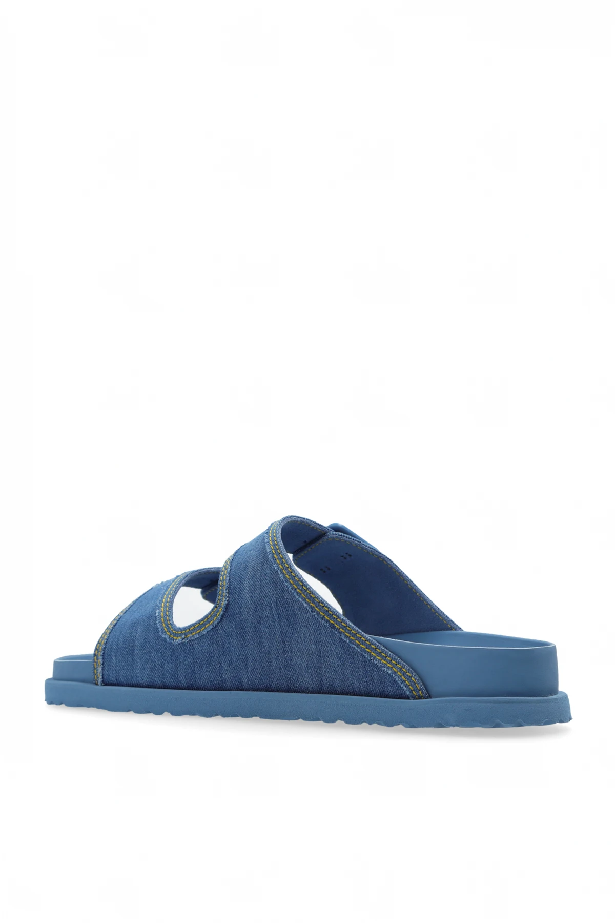 Introducing the Arizona Stone Washed flip-flops by Birkenstock 1774, a paragon of understated elegance and casual sophistication. Designed with the iconic shape of the Arizona model, these flip-flops feature two broad straps across the instep for a timeless look. Crafted from a denim-like material, these flip-flops exude a relaxed, stone-washed aesthetic, reminiscent of vintage jeans. The predominant blue hue harmonizes across the straps, buckles, and synthetic sole, ensuring a cohesive and stylish appearance. Notable details include adjustable blue buckles on each strap and contrasting light blue stitching, which add a touch of refinement. Inside, the insole proudly displays the BIRKENSTOCK name along with size and country of manufacture, underscoring the brand's commitment to quality. Comfort is paramount with these flip-flops, featuring wide straps and an anatomically contoured insole, designed for all-day wear. The synthetic sole provides durability and consistency in color, making these flip-flops a reliable and stylish choice for any casual outing. Why Choose This Product? Classic and timeless design with the iconic Arizona shape. High-quality denim-like material with a stone-washed finish for a casual, vintage look. Adjustable blue buckles and light blue stitching for added elegance. Comfort-focused design with wide straps and anatomically contoured insole. Durable synthetic sole in matching blue for a cohesive aesthetic.