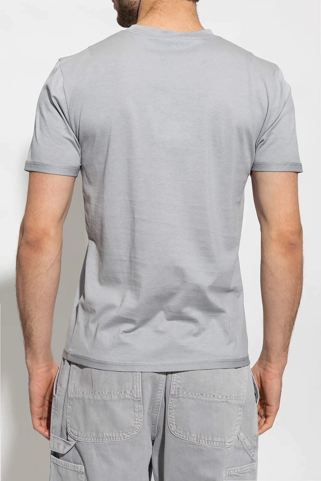 Grey ‘Okobo’ T-shirt from Iro. Crafted from a cotton and silk blend, this short sleeve design has a logo embroidered at the back.
