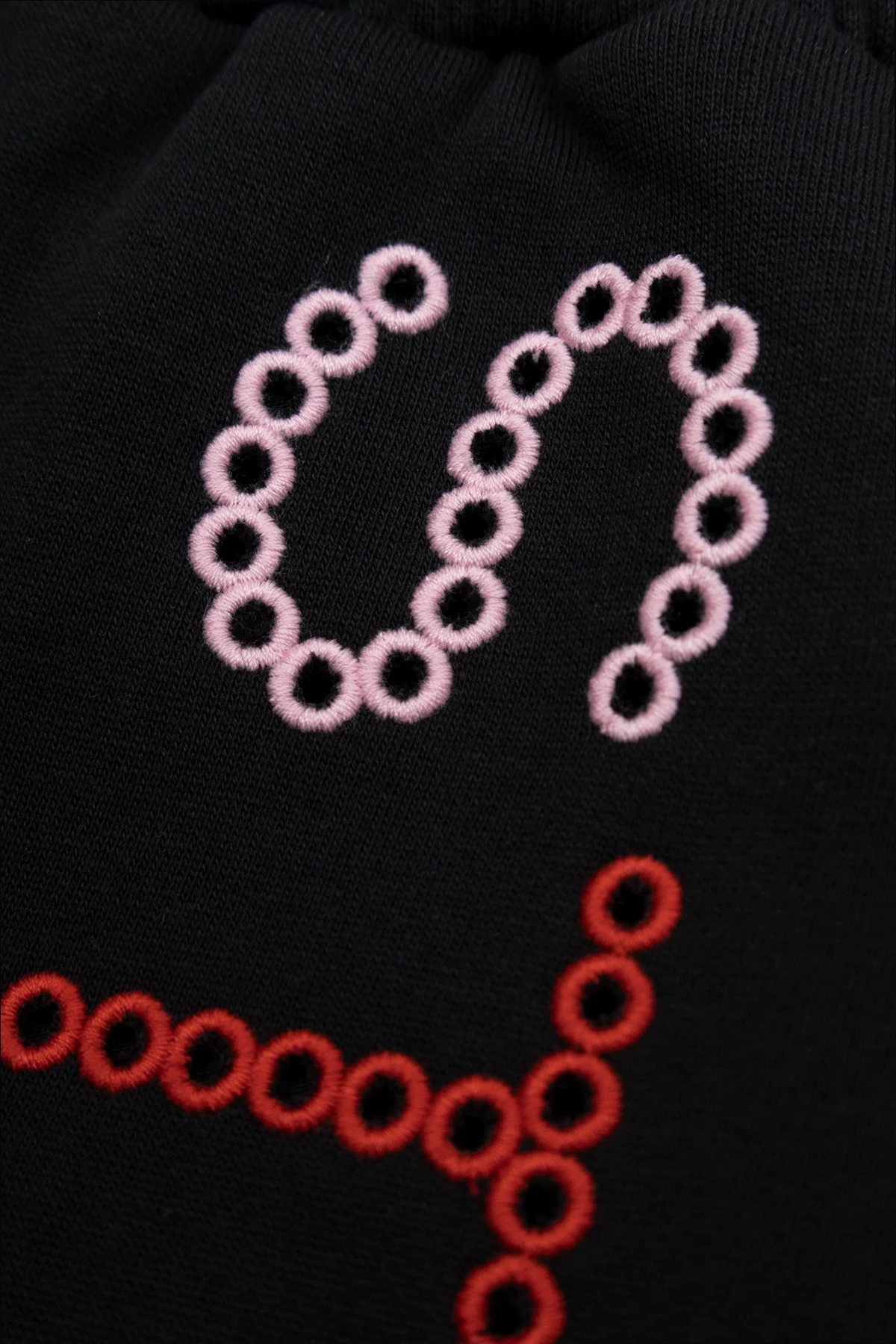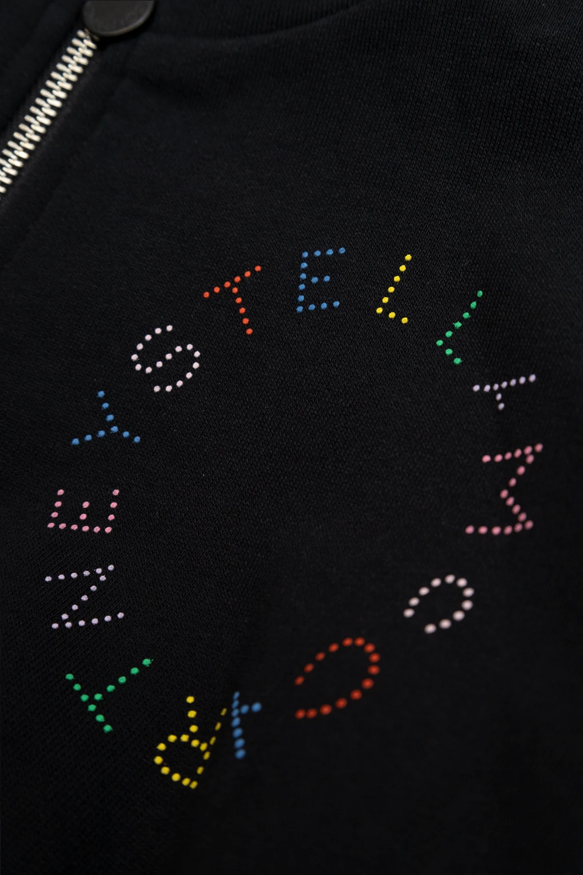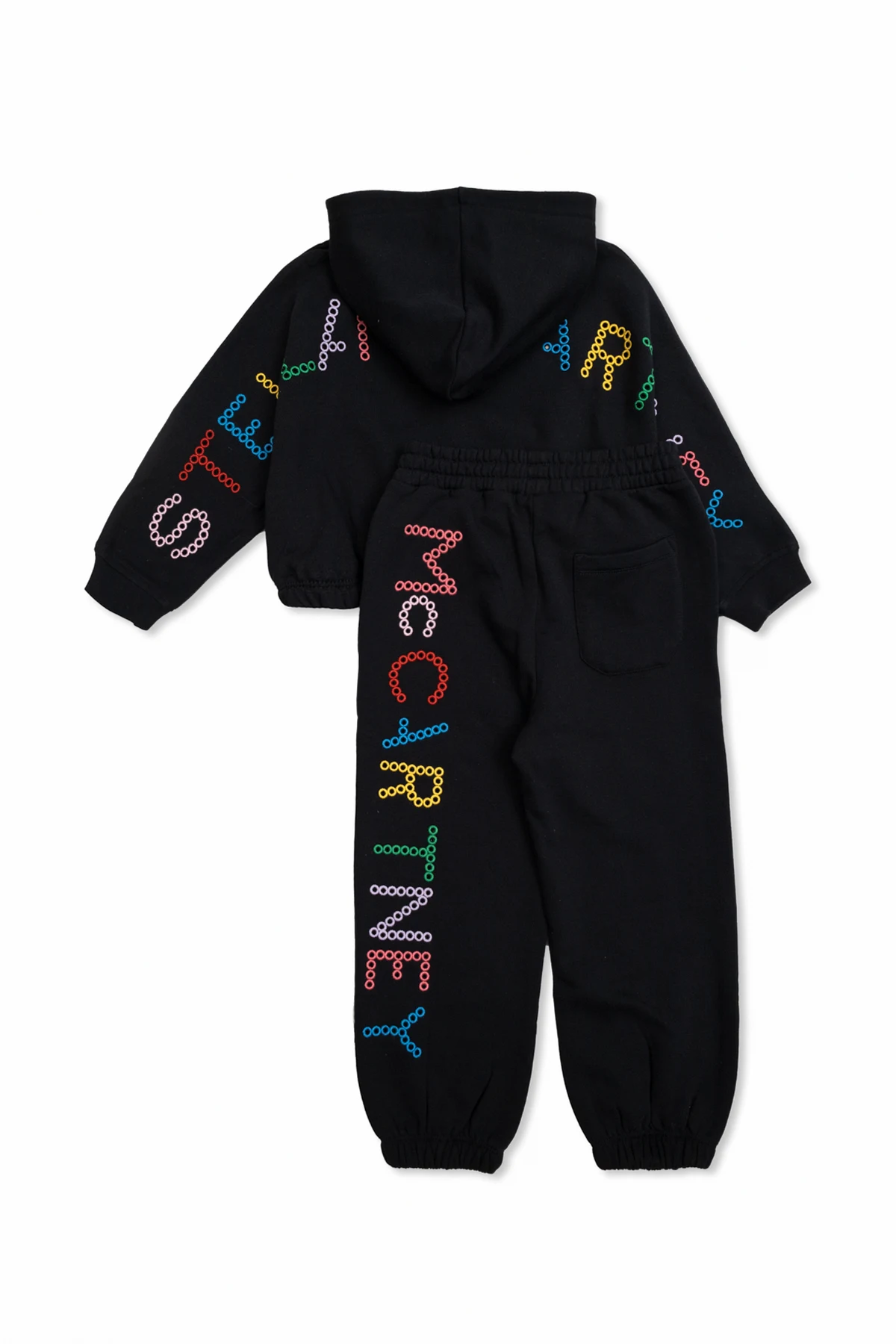 Presenting an exquisite ensemble from the renowned Stella McCartney Kids, this tracksuit set for boys epitomizes elegance and comfort. Crafted from premium soft cotton, this black set is designed to provide the utmost ease and style for your young ones. The hooded sweatshirt features a central zipper and is adorned with the brand's name, "STELLA McCARTNEY," stylishly arranged in a circular pattern on the left chest. The colorful letters, formed from tiny dots, add a playful yet sophisticated touch. The classic hood completes this timeless piece. The sweatpants are equipped with an elastic waistband and ribbed cuffs, ensuring a snug and comfortable fit. A large, vibrant "STELLA" decorates the left leg, while "McCARTNEY" graces the back of the right leg, both constructed from the same charming dotted letters, making this set truly unique. Why Choose This Product? Exclusive design from Stella McCartney Kids. Soft and comfortable cotton material. Colorful, meticulously crafted brand name prints. Timeless black color that pairs well with any outfit. Perfect for children aged 4-14 years who appreciate style and comfort.