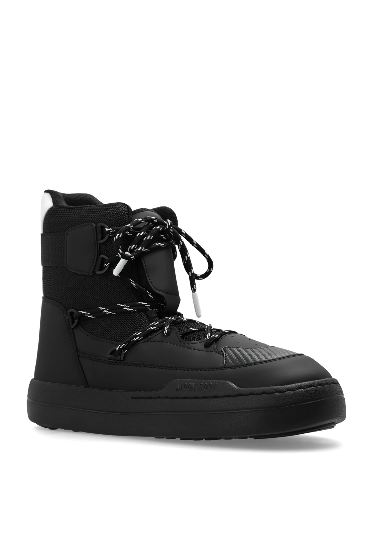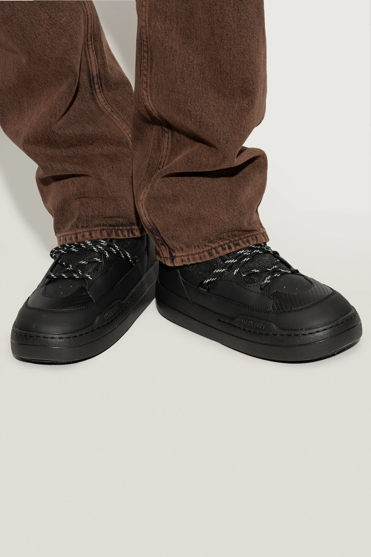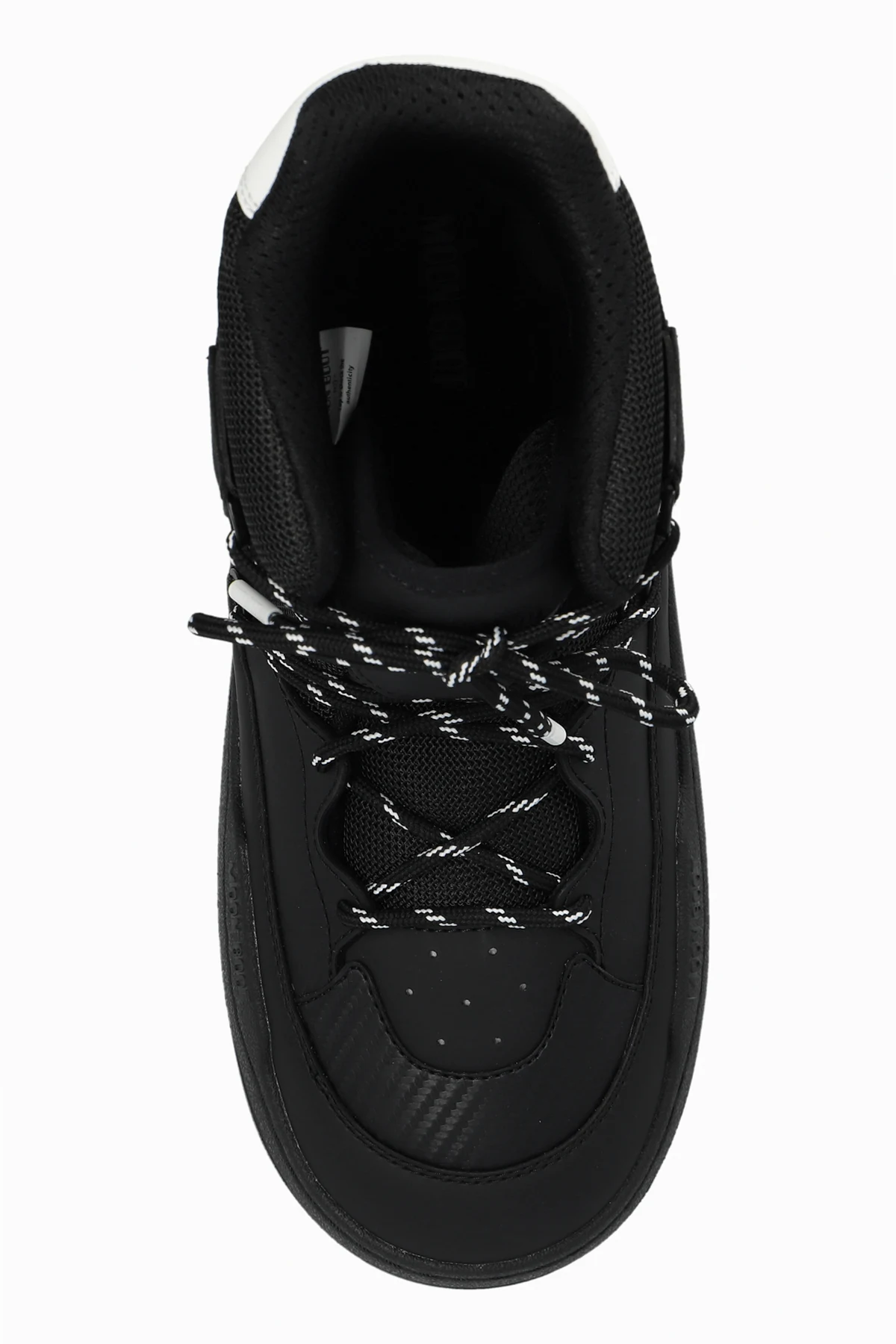 Introducing the exclusive men's Park Sneaker Boot, a paragon of winter elegance and functionality. These sophisticated snow boots rise above the ankle, offering superb insulation against the cold while ensuring unparalleled stability and comfort with their high heel counter and broad outsole. Crafted from premium dark black materials, combining synthetic and textile elements, the interior is lined with a plush material to provide exceptional comfort and thermal insulation. The striking black-and-white laces add a touch of style, allowing for a customized fit. The iconic "Moncler" branding on the side further accentuates their luxury. The robust rubber sole with a pronounced tread ensures superior grip on slippery surfaces, while the white accents on the heel may serve a decorative or reflective purpose. Additional reinforcements on the tongue and sides offer extra protection against wear and harsh weather conditions. Why Choose This Product? Exclusive design with Moncler branding High-quality materials for durability and comfort Excellent thermal insulation with plush interior lining Superior grip with solid rubber outsole Stylish black-and-white laces for a custom fit