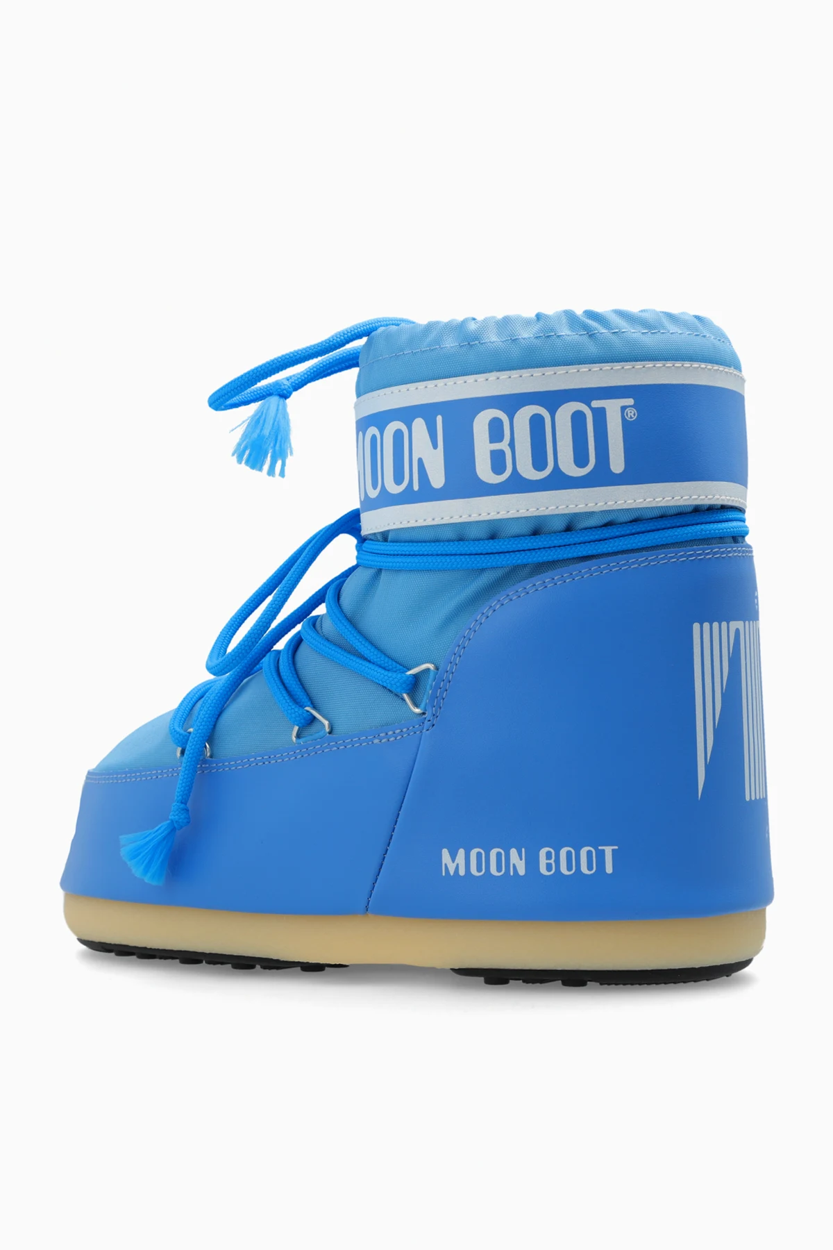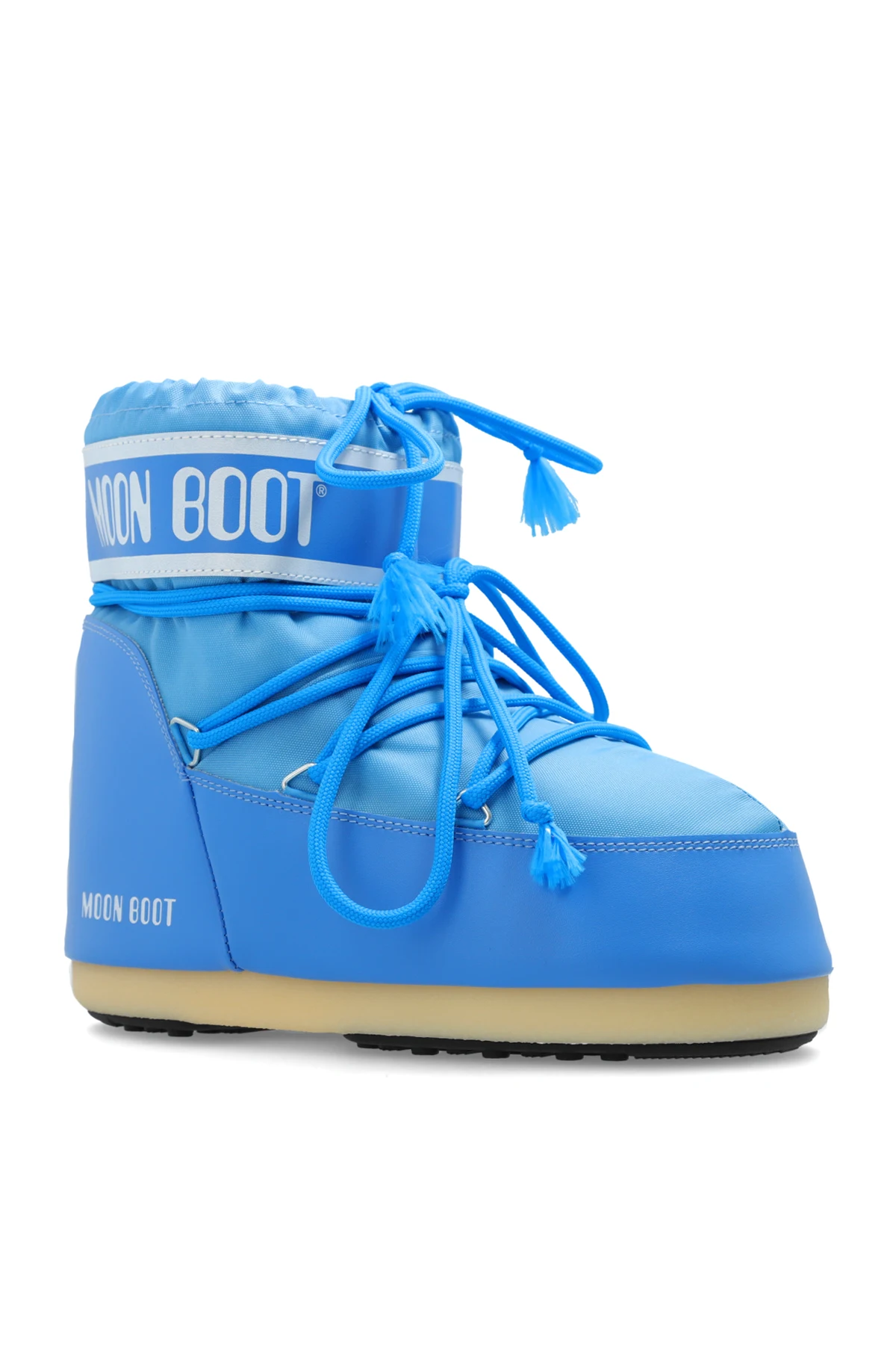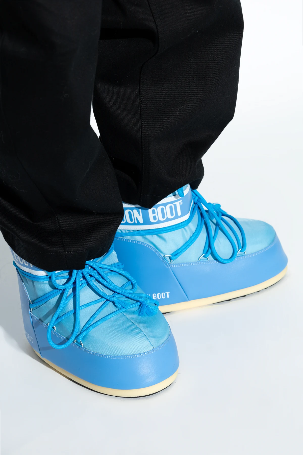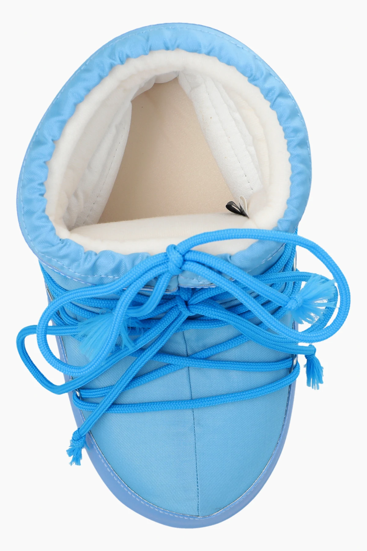 Indulge in the epitome of winter elegance with the exclusive Icon Low Nylon snow boots from the renowned brand Moon Boot. Designed to provide unmatched comfort and style in the most extreme winter conditions, these boots are a quintessential addition to your luxury wardrobe. Color: A captivating blue, perfect for making a bold statement against the winter whites. Material: Exquisitely crafted from high-quality nylon, ensuring durability and resilience. These boots boast a distinctive, bulbous shape with a soft upper, offering both unique aesthetics and practical functionality. The high-profile design, featuring a wide collar, provides enhanced insulation and protection against the cold. The front lace-up system allows for a customizable fit, while the elastic drawstring at the top ensures warmth is retained within the boot. The prominent white "MOON BOOT" inscriptions on the upper and lower parts of the boot, along with the iconic vertical line logo, add an unmistakable touch of brand prestige. Sole: The rubber sole delivers superior grip on snow and ice, making these boots as practical as they are fashionable. Interior: The inside of the boot is lined with soft, synthetic fur, providing additional comfort and thermal insulation. Why Choose This Product? Unmatched comfort and warmth in extreme winter conditions. Iconic design from the esteemed Moon Boot brand. High-quality materials ensure durability and longevity. Superior grip and traction on snowy and icy surfaces. Customizable fit with front lacing and elastic drawstring.