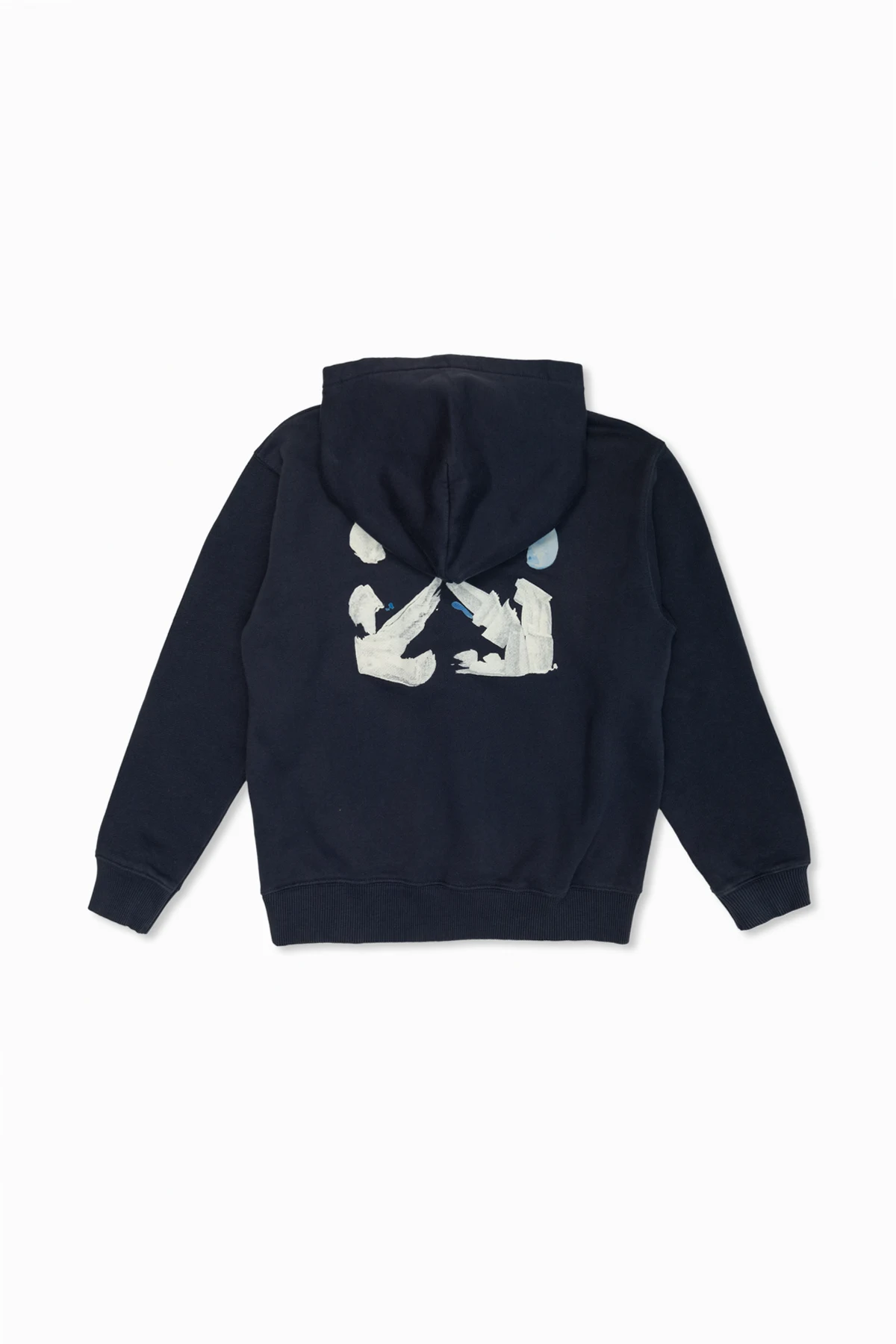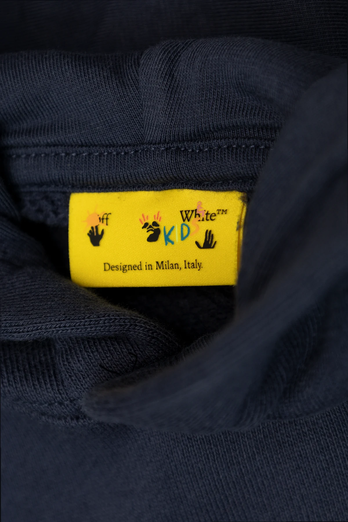 Introducing the Off-White™ Kids Hoodie, an epitome of sophisticated style and remarkable craftsmanship. Designed for boys aged 4 to 14, this navy blue hoodie seamlessly blends comfort with contemporary fashion. The classic design features long sleeves, a kangaroo pocket, and a hood, offering both practicality and a timeless silhouette. Crafted from high-quality cotton, it ensures unparalleled comfort and durability. Adorned with distinctive light blue arrow prints and the iconic "Off-White™" logo on the front and back, this hoodie exemplifies the brand's unique aesthetic. Additional details such as the yellow "Off-White™ KD" label and small hand drawings on the inner tag highlight the garment's exclusive nature. Why purchase this product? High-quality, comfortable cotton material Iconic design by renowned brand Off-White™ Exclusive, limited edition piece Practical features including a kangaroo pocket and hood Stylish and contemporary prints