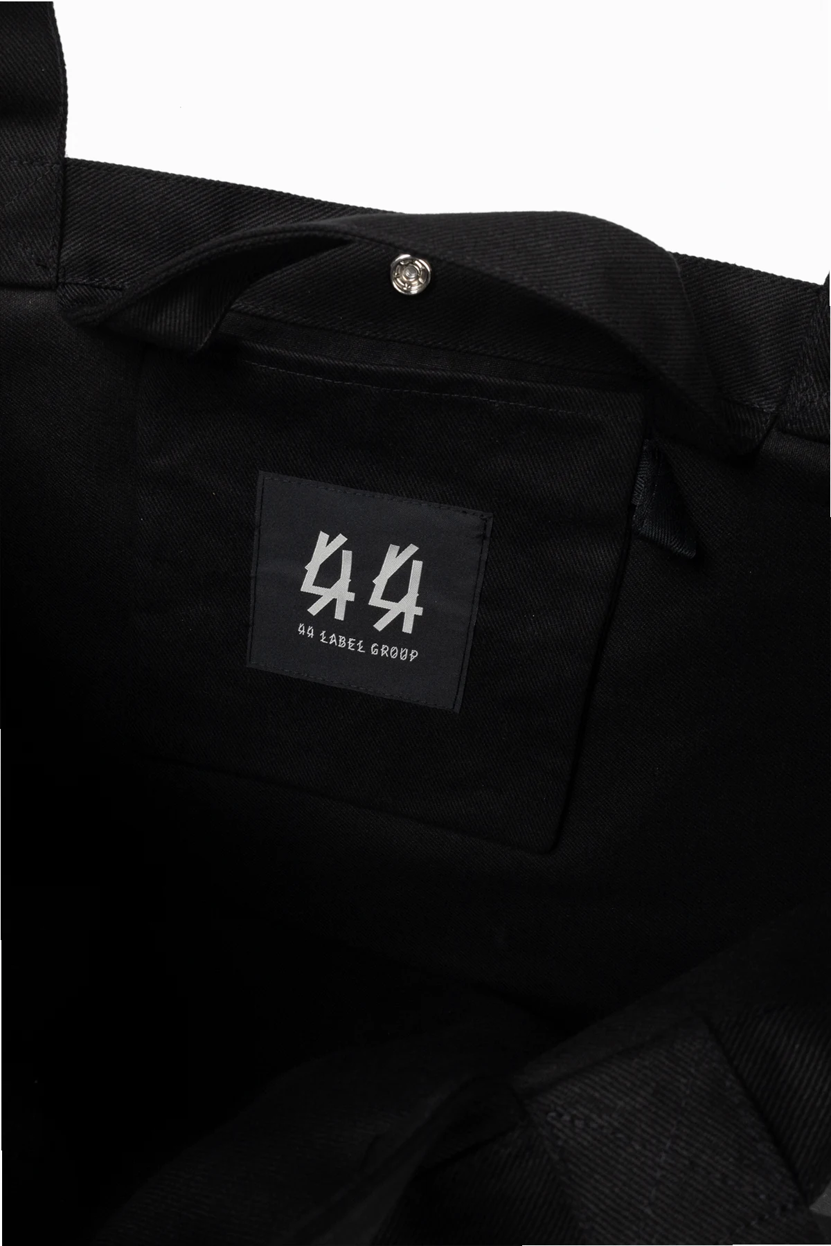 Introducing the quintessence of modern minimalism and durable design: the 44 Label Group Shopper Bag. Crafted from premium 100% cotton, this shopper boasts a robust and tactile appeal, ensuring longevity and resistance to daily wear and tear. Its enigmatic black hue, complemented by the distinctive "44" graphic in a spray-paint illusion, and "DYING SUN" inscription, serves not just as a carryall but as a statement piece. The bag's classic rectangular silhouette, unencumbered by closures, ensures seamless access to your essentials. Featuring a capacious main compartment and an additional slip pocket within, it is designed to cater to both convenience and organization. Whether carried by hand or draped over the shoulder, this shopper promises versatility and comfort, making it an indispensable accessory for the discerning urbanite. The striking graphic "44" and "44 LABEL GROUP" emblazoned on the front and the tag inside, affirm its exclusive identity, marrying the art of high fashion with functional design. This piece is not merely an item of utility but a bold expression of contemporary aesthetic and brand allegiance. Why Purchase This Product? Exclusively designed by the renowned 44 Label Group, guaranteeing authenticity and unique style. Constructed from high-quality, durable cotton for lasting use. Features a bold, graphic design for a stand-out appearance. Offers ample storage space with an easy-access open top and an interior slip pocket. Versatile carrying options with dual handles for hand or shoulder carry.