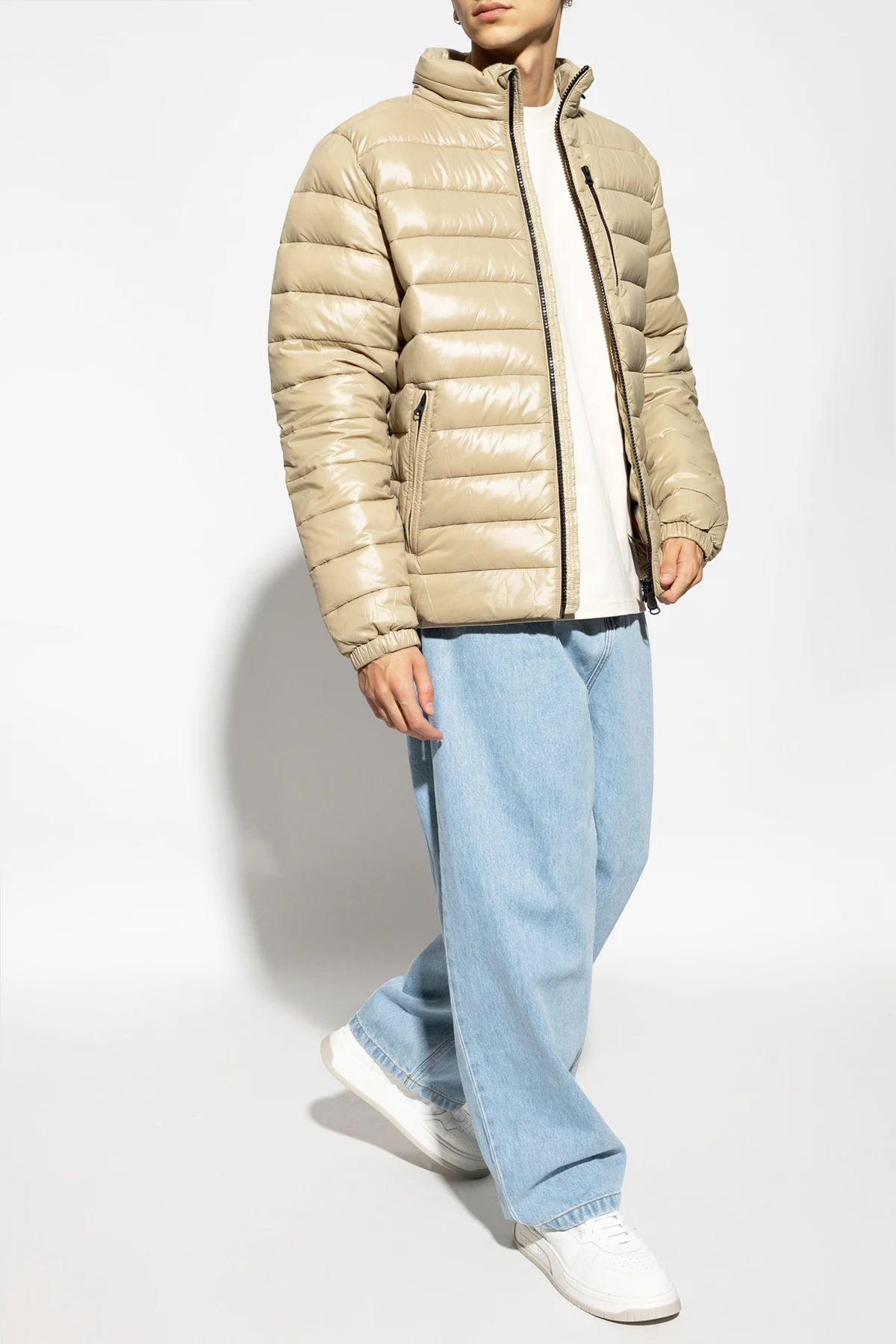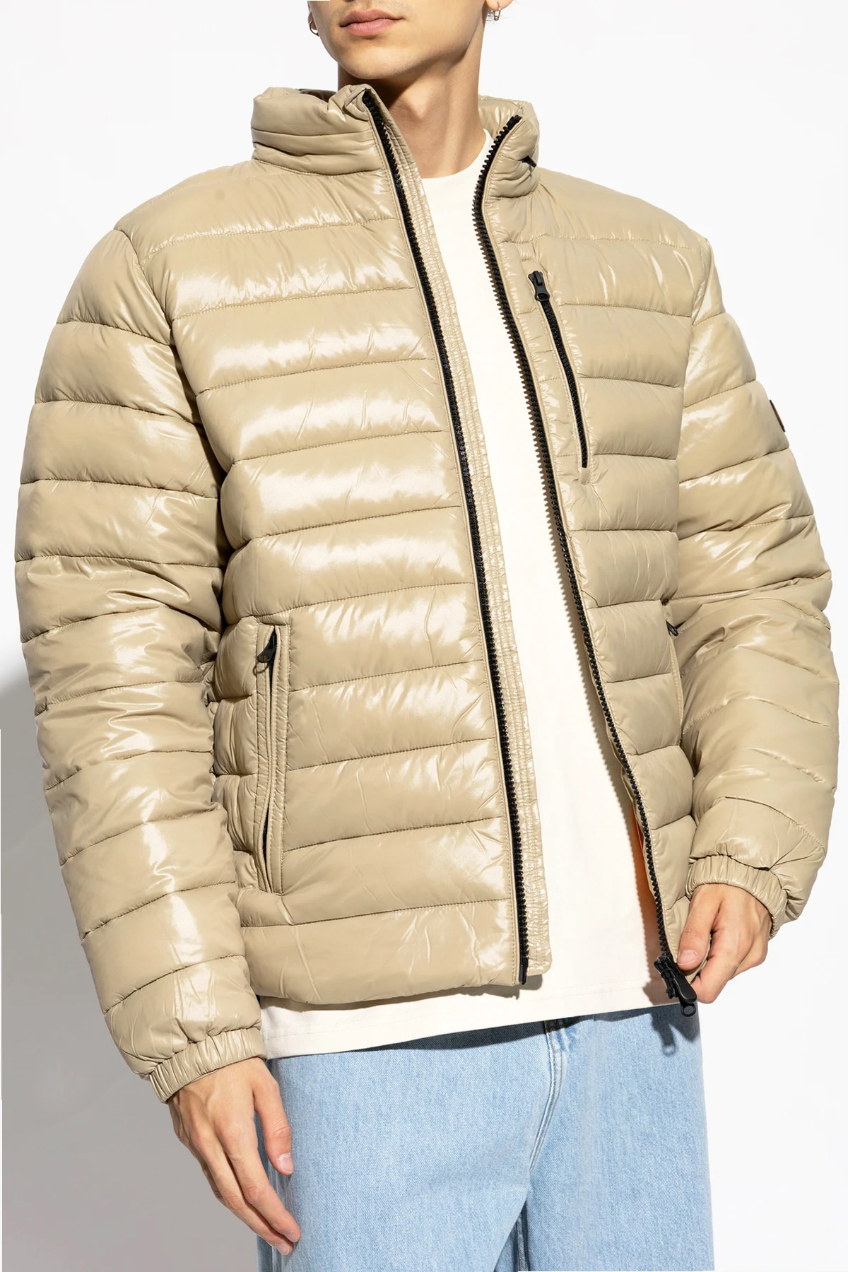 Introducing the Holden Insulated Jacket from the exclusive collection by Save The Duck. Crafted in a luminous beige hue, this jacket is a testament to refined elegance and unparalleled functionality. Constructed with a classic, straight cut and a subtly tailored fit, the Holden jacket features a high collar that offers extra protection against the chill. Its quilted design adds volume and warmth, while the glossy fabric imparts an air of sophistication. Noteworthy details include a full-length dual-zip closure, elastic cuffs for a snug fit, and three strategically placed zippered pockets – two on the front and one on the left chest. The left sleeve is adorned with an exclusive designer logo patch, showcasing a sleek animal silhouette and script. Designed for ultimate thermal comfort, the inner lining is crafted from premium nylon and polyester, insulated with the innovative PLUMTECH® technology, which mimics the thermal properties of natural down without compromising on ethical values. Why You Should Buy This Product Elegant Design: The glossy finish and classic cut make it a versatile addition to any wardrobe. Functional Features: High collar, elastic cuffs, and multiple secure pockets for convenience. Ethical Insulation: PLUMTECH® technology provides superior warmth while respecting animal welfare. Designer Appeal: Signature logo patch on the sleeve highlights its exclusive nature. Durability: Made with high-quality nylon and polyester for lasting wear.