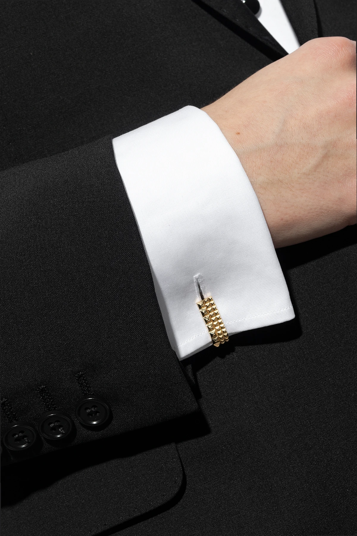 Gold-tone cufflinks with a stud motif from Lanvin. Made of brass and platinum.