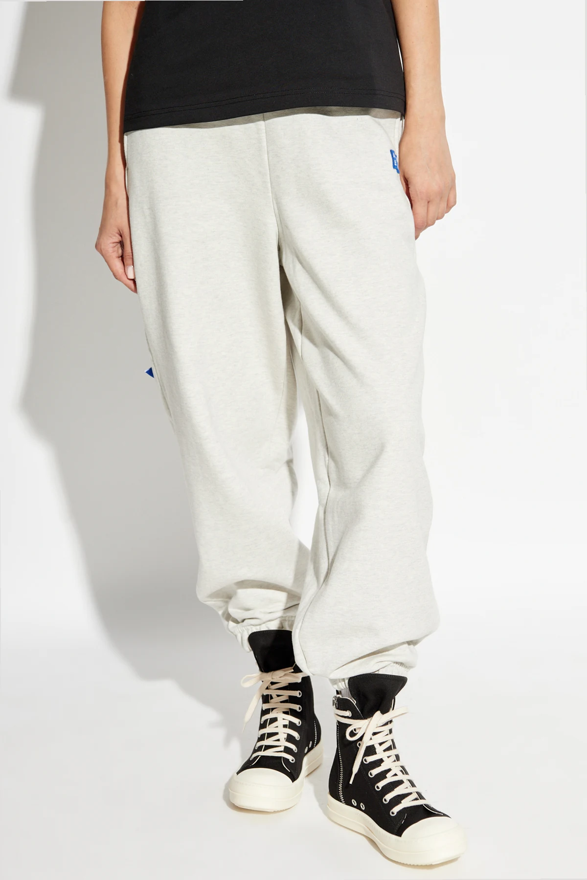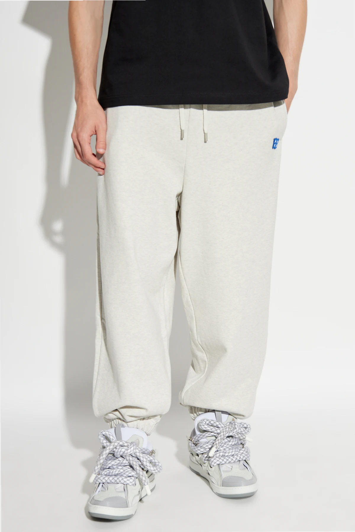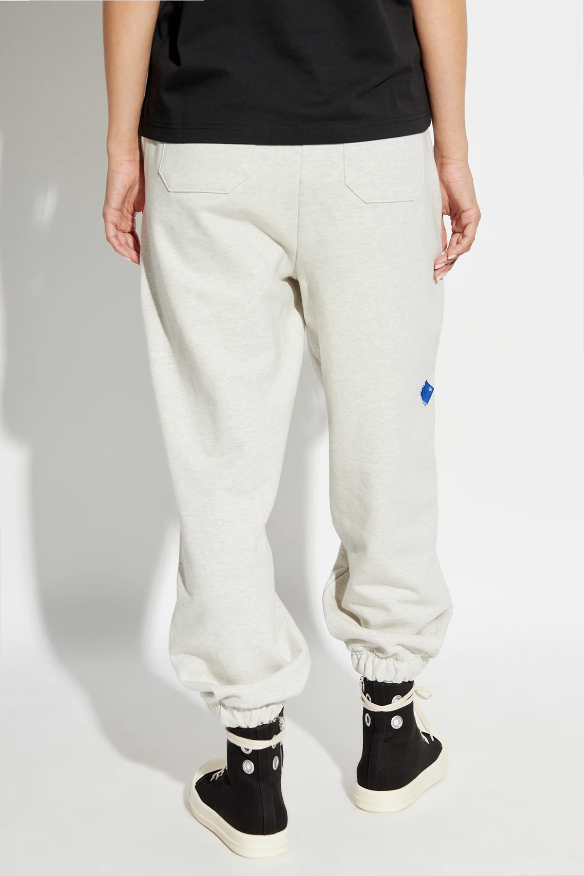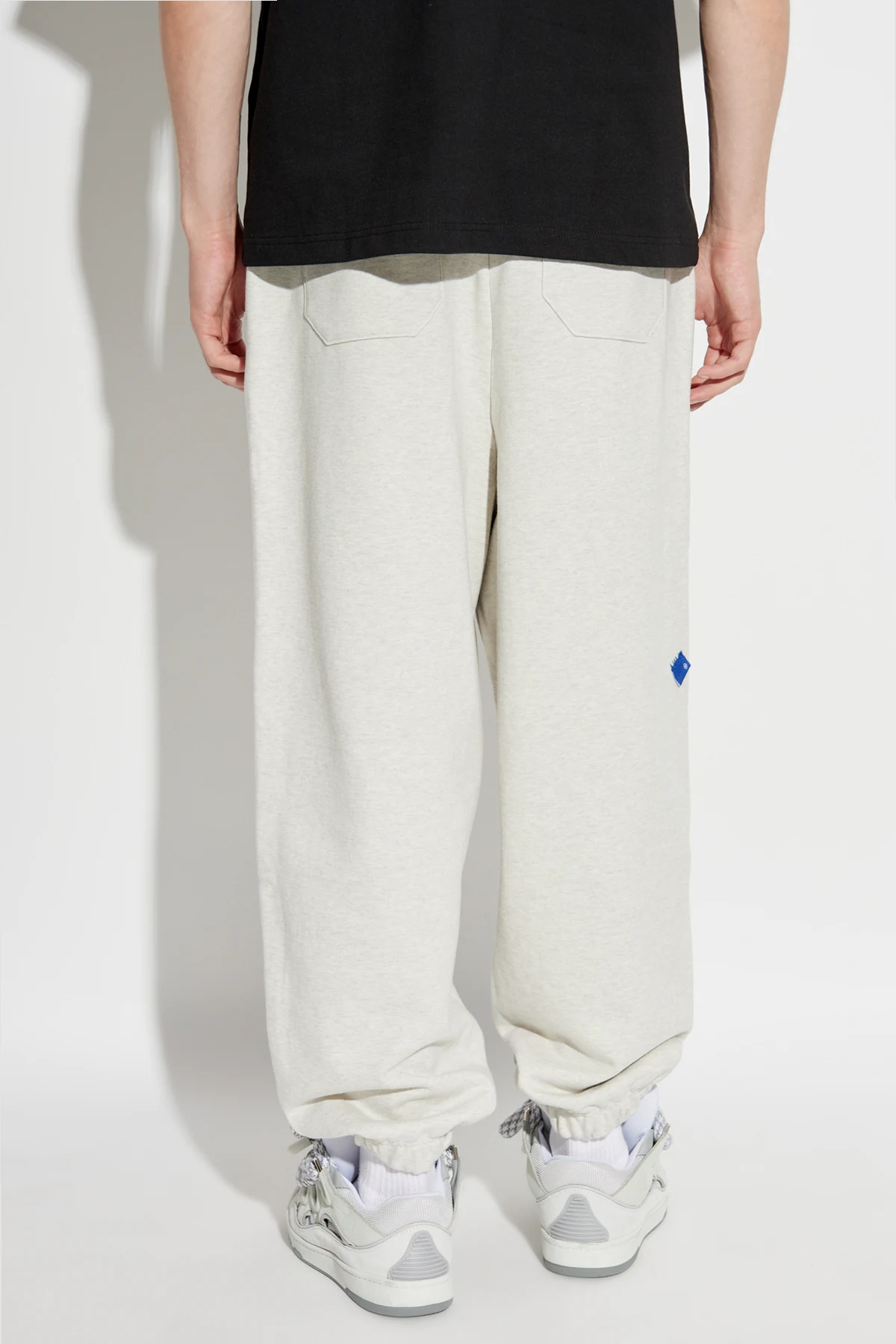 Introducing the exclusive sweatpants from the renowned Ader Error collection. These sophisticated pants, in an elegant cream hue, are crafted from a premium blend of cotton and elastic fibers, ensuring unparalleled comfort and wearability. The design boasts a relaxed, casual fit, with wide legs tapering towards the bottom, culminating in a chic cuffed hem, embodying the "baggy" effect. An elastic waistband, complemented by an adjustable drawstring, provides a tailored fit for all body types. Functionality is not compromised with at least two side pockets and two back pockets, offering practical storage solutions. The distinctive touch of the small, blue logo with the “ADER” inscription on the front left pocket adds a subtle yet refined detail, enhancing the pants' unique charm. Designed as a unisex piece, these sweatpants are perfect for daily wear, effortlessly blending into any casual wardrobe. Ader Error, founded in 2014 in Seoul by an innovative group of creatives, continues to revolutionize fashion by transforming everyday simplicity into art. Why Buy This Product? Exquisite cream color for a sophisticated look. High-quality cotton material for maximum comfort. Versatile unisex design suitable for any style. Practical pockets for convenient storage. Distinctive Ader Error branding for a touch of elegance.