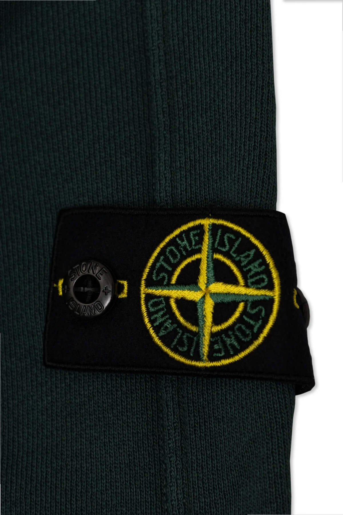 Introducing the Stone Island Kids' Zip-Up Hoodie, an exquisite blend of style and comfort tailored for boys aged 4 to 14. This dark green hoodie exemplifies the sophisticated design ethos of Stone Island, renowned for its cutting-edge innovations in fabric technology and design. Crafted from 100% high-quality cotton, this hoodie offers unparalleled softness and comfort. The classic straight cut, complemented by long sleeves and elastic cuffs, ensures a perfect fit and ease of movement. The central zipper closure adds a touch of practicality, making it easy to put on and take off. The hoodie features two front pockets, angled for convenience and designed in a rectangular shape, perfect for keeping hands warm or storing small essentials. A distinctive feature is the iconic Stone Island logo patch on the left sleeve. The circular patch, adorned with a compass in yellow and green on a black background, is affixed with buttons—a hallmark of the brand's unmistakable identity. Why Choose This Product? Classic and versatile design suitable for various outfits. High-quality, soft cotton material for maximum comfort. Elastic cuffs and hem ensure a snug fit. Practical zipper closure and front pockets. Exclusive Stone Island logo for a touch of luxury and recognition.