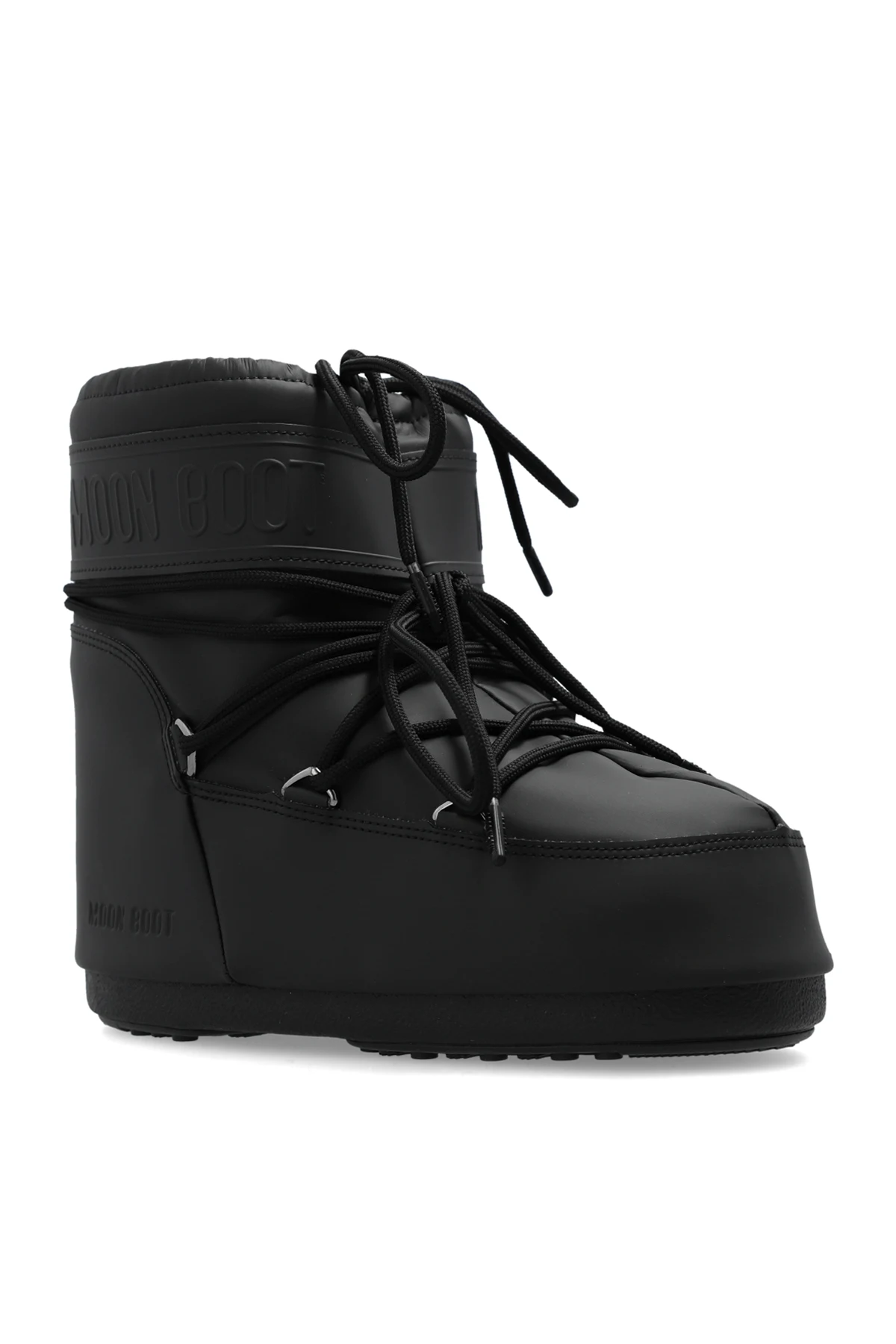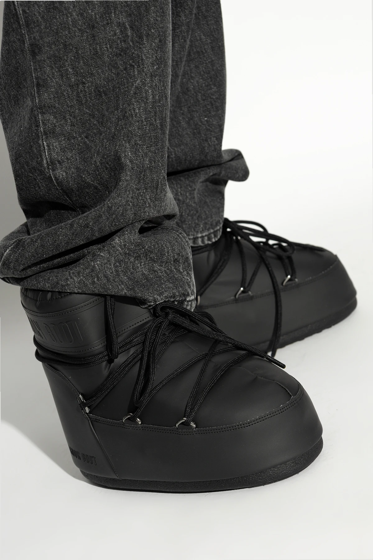 The Icon Low Rubber snow boots are an exclusive winter footwear creation designed with the modern man in mind. Crafted from premium materials, these boots boast distinctive features that set them apart in the realm of winter wear. Shape and Pattern: The boots feature a voluminous, plush design that ensures maximum thermal insulation, making them perfect for harsh winter conditions. Material: Constructed with a rubber finish, these boots offer enhanced protection against moisture and cold, ensuring your feet remain dry and warm. Engraved Logo: The upper part of the boot is adorned with the engraved "MOON BOOT" logo, a hallmark of its unique design. Lacing System: Equipped with a lacing system, these boots provide a customizable fit for optimal comfort and stability. Sole: The thick, robust sole offers superior traction on slippery surfaces, making these boots a reliable choice for winter adventures. Color: The dominant black color gives the boots an elegant and versatile appearance. Additional Details: The interior is well-padded, offering extra comfort and protection against the cold. Why Choose This Product? Designed for extreme winter conditions High-quality rubber material ensures durability Engraved "MOON BOOT" logo for a distinctive look Customizable fit with a reliable lacing system Thick sole for excellent grip on icy surfaces Elegant black color for a timeless style Comfortable and well-insulated interior