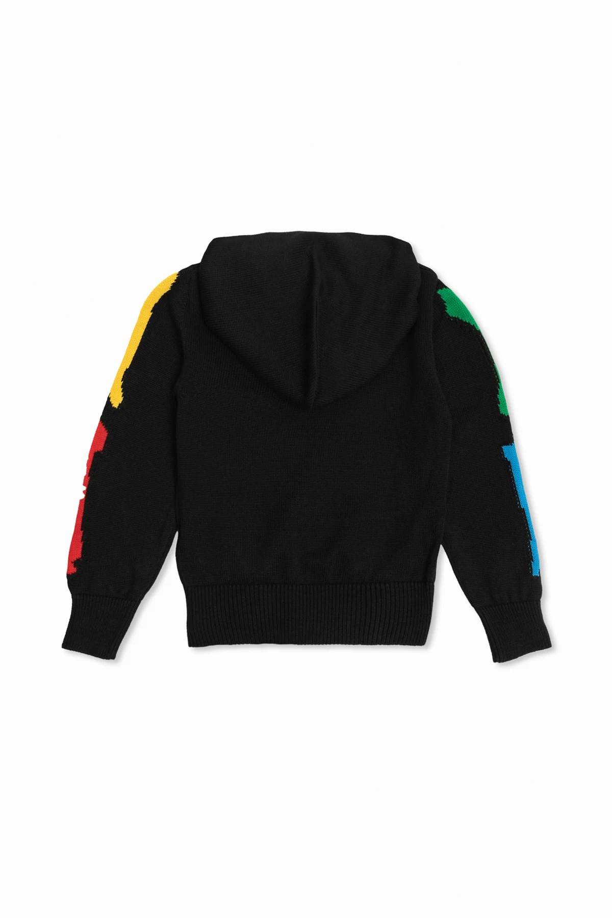 Discover the refined allure of the Amiri Kids Knitted Hoodie, a splendid embodiment of youthful elegance and rebellious spirit. This black knitted hoodie from the exclusive collection captivates with its vivid multicolored details on the sleeves, featuring blurred stripes in hues of red, yellow, green, and blue—a testament to its distinctive character. The hoodie boasts a subtle white embroidered "Amiri" logo on the chest, exuding understated luxury. With a practical kangaroo pocket and ribbed trims, it harmoniously blends sporty appeal with comfort. Crafted from sumptuous cotton, it is the epitome of coziness, perfect for cooler days. Why Choose This Product? Exclusive design with unique multicolored sleeve details. Crafted from premium cotton for ultimate comfort. Features a practical kangaroo pocket and ribbed trims. Subtle elegance with an embroidered "Amiri" logo.