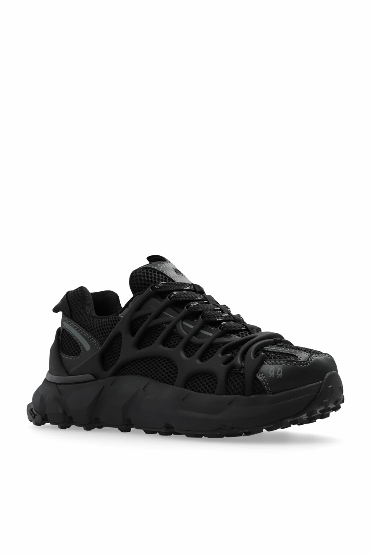 Introducing the "Symbiont 2" high-heel sport shoes, a distinctive creation that marries athletic functionality with a dash of elegance. Crafted by the avant-garde 44 Label Group, these shoes are a testament to the symbiosis between sporty vigor and refined aesthetic. Constructed with a robust blend of leather and fabric, the exterior promises durability while ensuring comfort. The mesh inserts are ingeniously designed for enhanced ventilation, coupled with reinforced areas that provide additional support, marking an epitome of thoughtful design. The substantial sole features pronounced indentations for superior grip, while the unique integration of a high heel into the shoe’s architecture lends an unexpected elegance, challenging conventional sportswear designs. The absence of overt branding or logos signifies the brand's penchant for subtlety, aligning with the preferences of those who value understated luxury. Colored in classic black, the "Symbiont 2" shoes stand as a versatile addition to any wardrobe, effortlessly transitioning from athletic endeavors to sophisticated gatherings. Why Purchase This Product? Exclusive design combining sportiness with elegance High-quality materials for durability and comfort Unique high-heel feature for a distinctive style statement Subtle branding for an air of exclusivity Exceptional grip and support, suitable for diverse activities