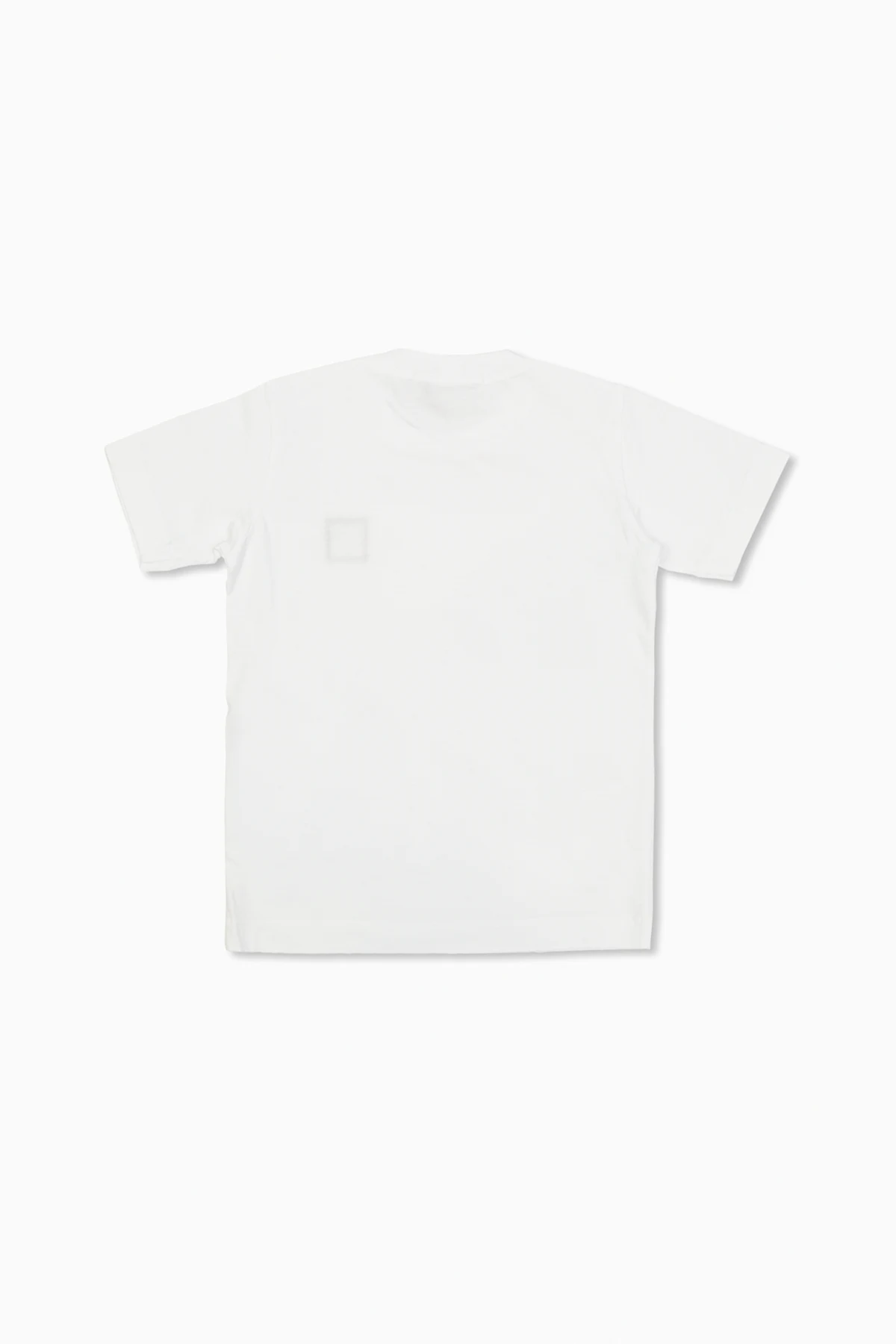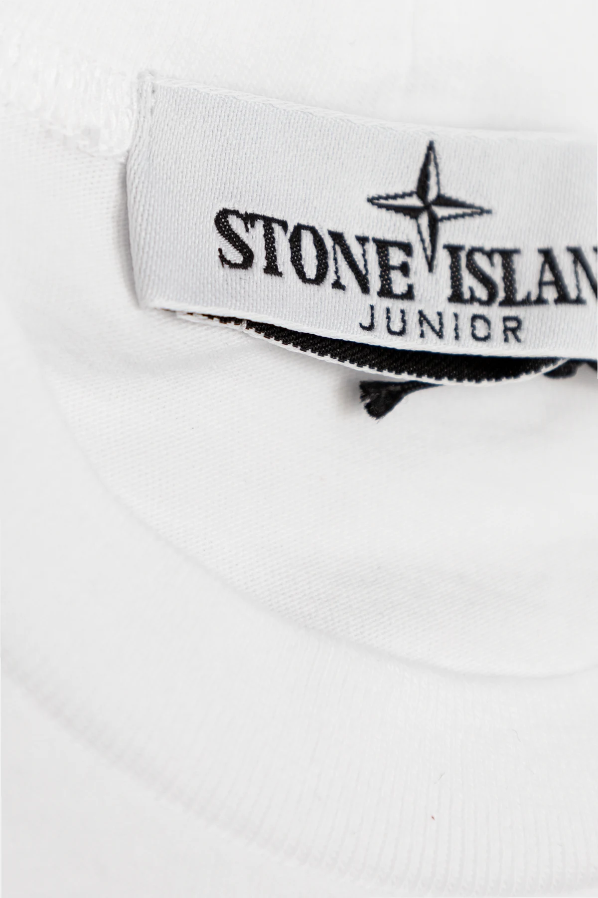 Introducing the epitome of refined casual wear - the Stone Island Kids White T-shirt with Logo Patch. Crafted from the finest 100% cotton, this T-shirt promises not only supreme comfort but a sleek, uniform texture that appeals to the touch. The pristine white hue serves as a canvas for the distinctive logo patch, prominently placed on the left chest. Set against a black background, the logo's white lettering and emblematic graphic emerge with clarity, signifying the brand's renowned identity. Further accentuating its exclusivity, the T-shirt features a label at the collar showcasing the Stone Island Kids name, a testament to its authentic design and premium quality. The round neckline adds a classic touch, ensuring this piece is versatile enough to complement any ensemble. Why Purchase This Product? Exquisite material: Made from 100% pure cotton for unmatched comfort and durability. Iconic branding: Features a distinctive logo patch that signifies luxury and status. Authenticity guaranteed: The Stone Island Kids label at the collar assures genuine quality. Versatile design: Its classic white color and round neckline make it a timeless addition to any wardrobe.