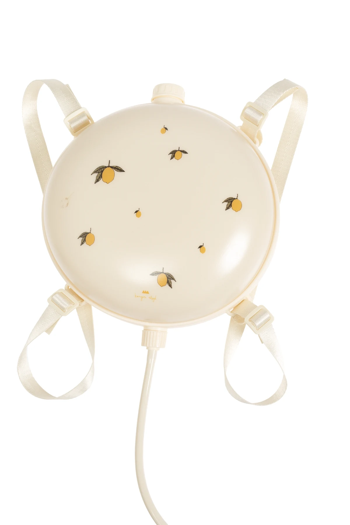 Introducing the Konges Sløjd Water Gun, an epitome of refined playtime elegance. This exclusive water gun, resplendent in a creamy hue, seamlessly blends functionality with aesthetic allure, making it an indispensable accessory for children's outdoor adventures. The water gun features a round disk-shaped water tank adorned with delicate lemon patterns, exemplifying sophisticated design. Crafted from durable and child-safe plastic, this product ensures lasting enjoyment and peace of mind for parents. Embellished with a golden designer logo and inscription, the water tank is equipped with adjustable cream-colored straps, allowing it to be comfortably worn like a backpack. The water gun, connected to the tank by a long hose, boasts an ornamental star element, enhancing its visual appeal. Perfect for summer days, this water gun offers children endless outdoor fun. Filling the tank with clean water and operating the pump handle is simple, ensuring children can easily engage in playful water battles. Why Choose This Product? Exquisite Design: Creamy color with lemon patterns and golden accents. Durable and Safe: Made from high-quality plastic, safe for children. Comfortable to Wear: Adjustable straps for easy carrying. Easy to Use: Simple water filling and pumping mechanism. Unmatched Style: Designed by the renowned Danish brand Konges Sløjd.